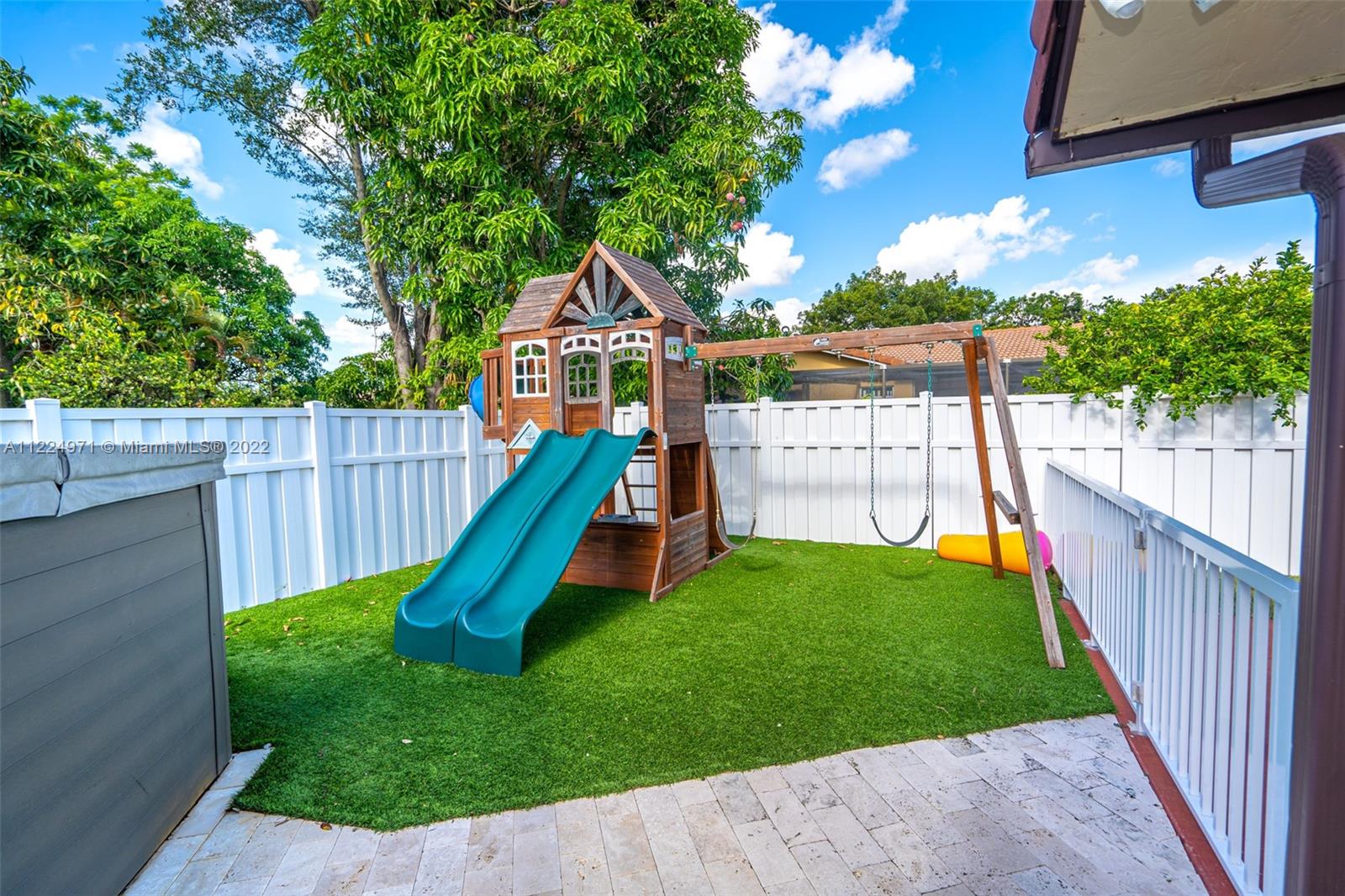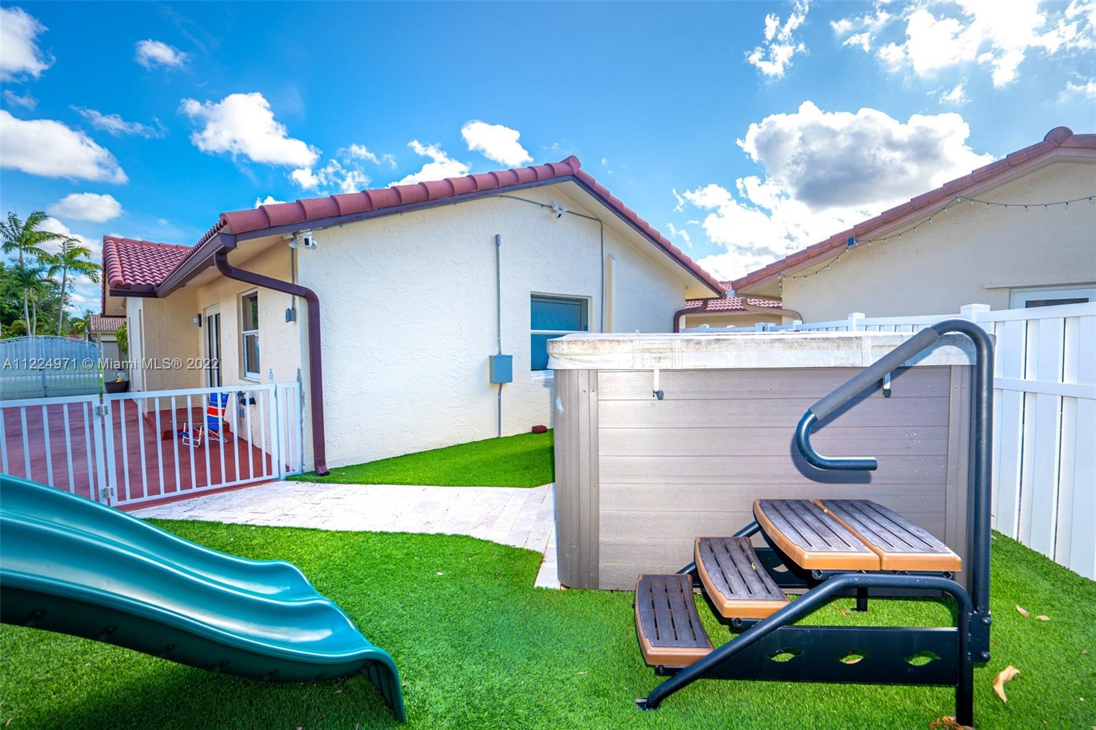 A beautiful ready to move in home in the desirable community of Ramblewood South. This corner home offers 3 bedrooms, 2 baths and many upgrades like impact windows and doors, tile floors throughout, upgraded kitchen, bathrooms, custom closets built-in, with plenty of storage, french doors opening to the outdoor area, patio has been upgraded with artificial turf grass, swimming spa by Jacuzzi put in in the last 2 years, kids playground, completely fenced, just the perfect area to entertain. Sprinkler system connected to a well. This home also comes with EV charger for your electric car, tropical fruit trees & so much more. Close to Coral Springs mall, Bj’s, shopping centers, walking distance to Ramblewood Elementary. NO HOA.