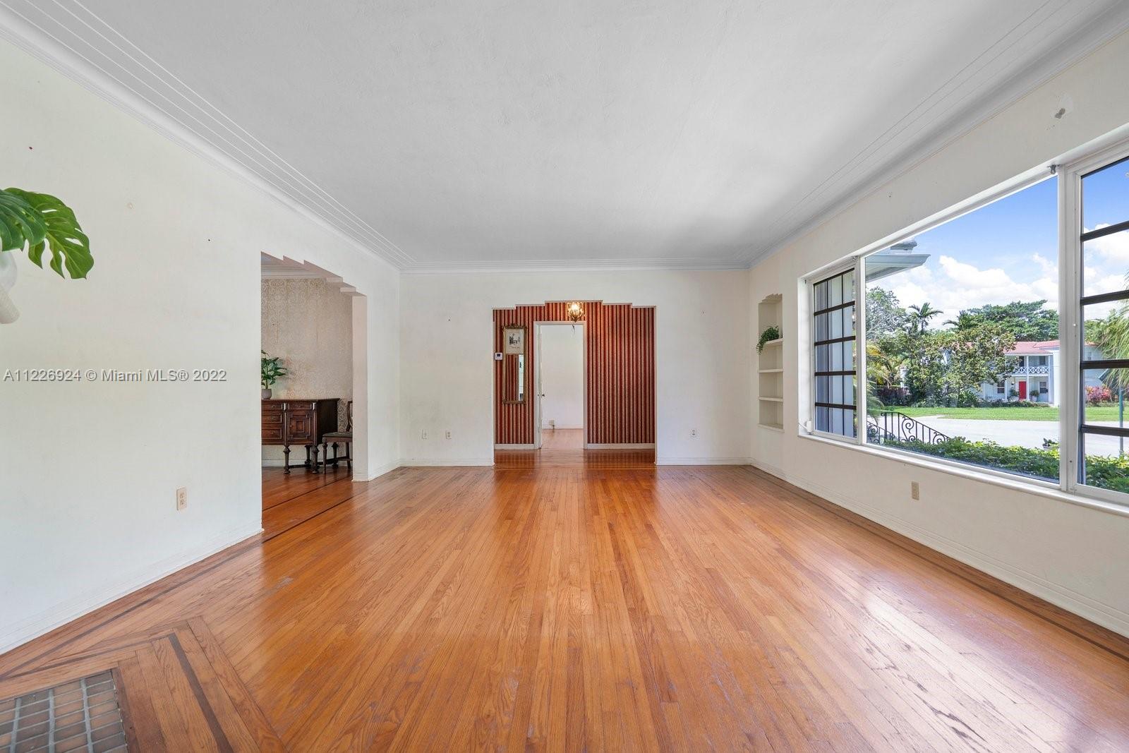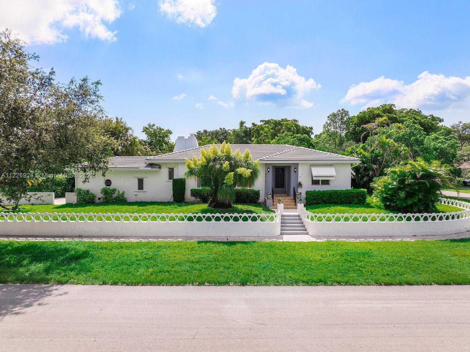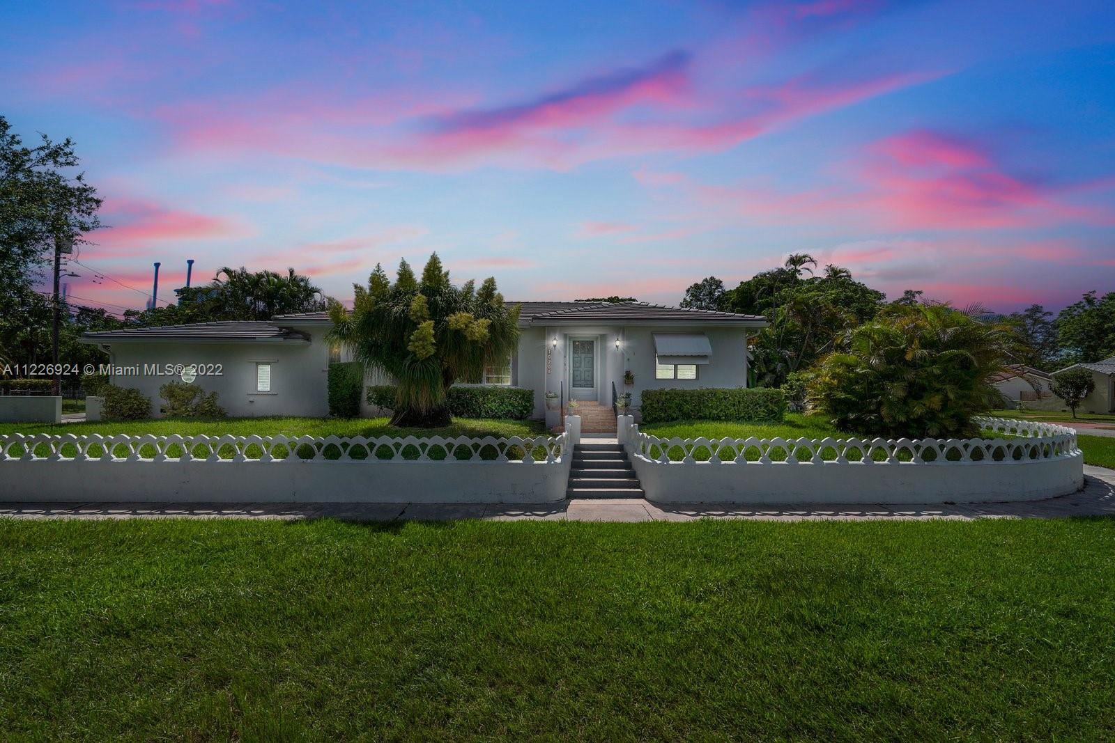 Character sets the stage for this one of a kind Central Miami Shores home! Enjoy the elegance of 1930s architecture as you enter through a gracious foyer and are greeted by a spacious living room, formal dining and Florida rooms with large windows. Architectural details like 8.5' ceilings, a working corner fireplace, original oak floors with inlaid wood details, custom crown/door molding and porthole windows will delight. 2 lrg bed + 1.5 baths. Not in a flood zone and elevated above street level, this home has an oversized one car garage containing an additional 1/2 bath. The corner lot is beautifully landscaped and bordered by a charming wall railing. Enjoy living within the popular Central Shores area and walking distance to local schools as well as shops and restaurants in MIMO/2nd Ave.