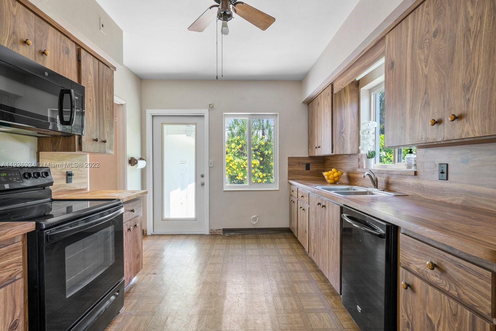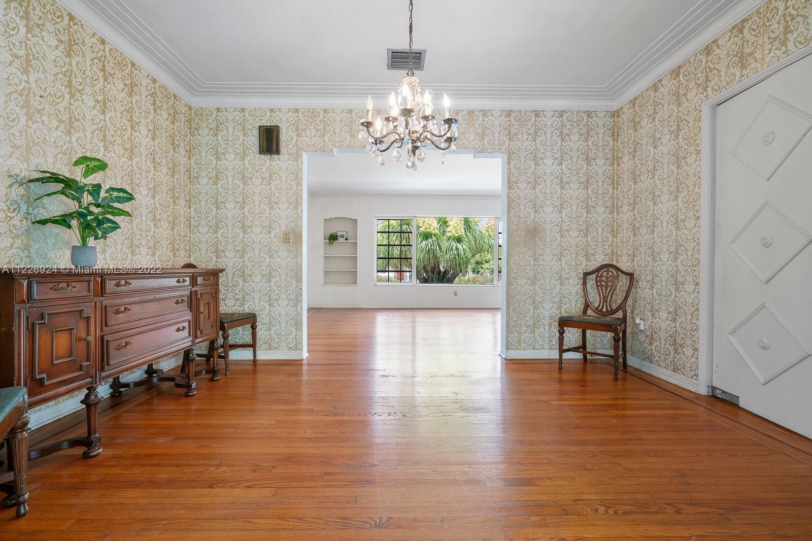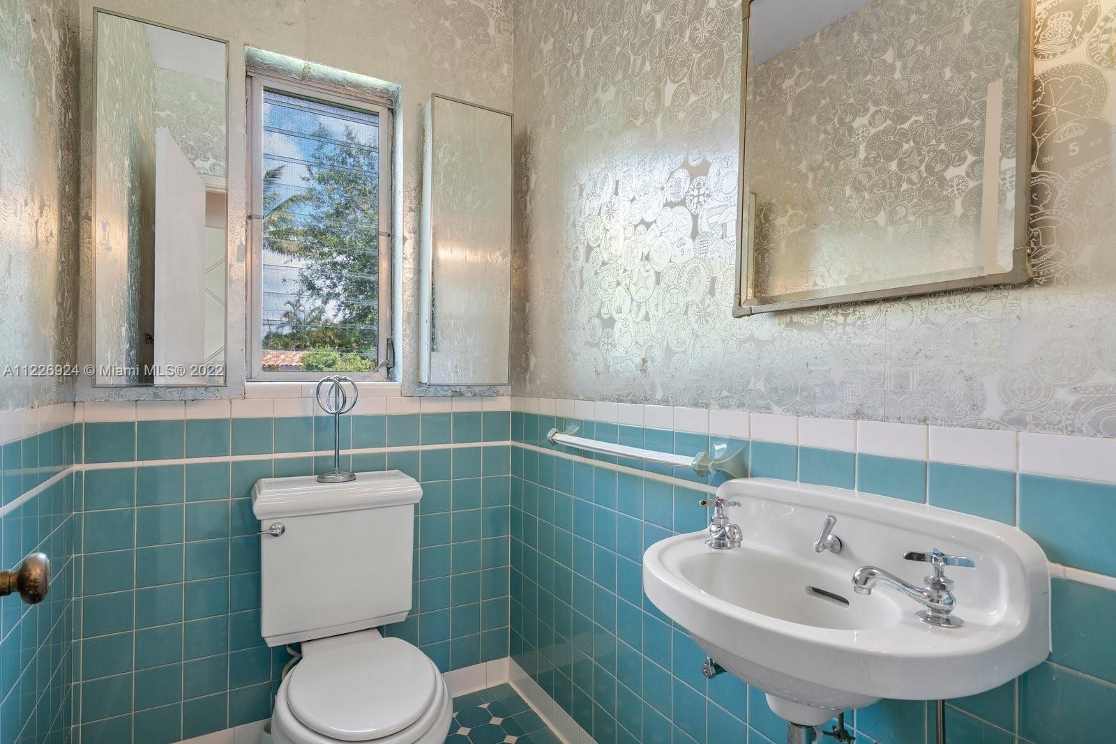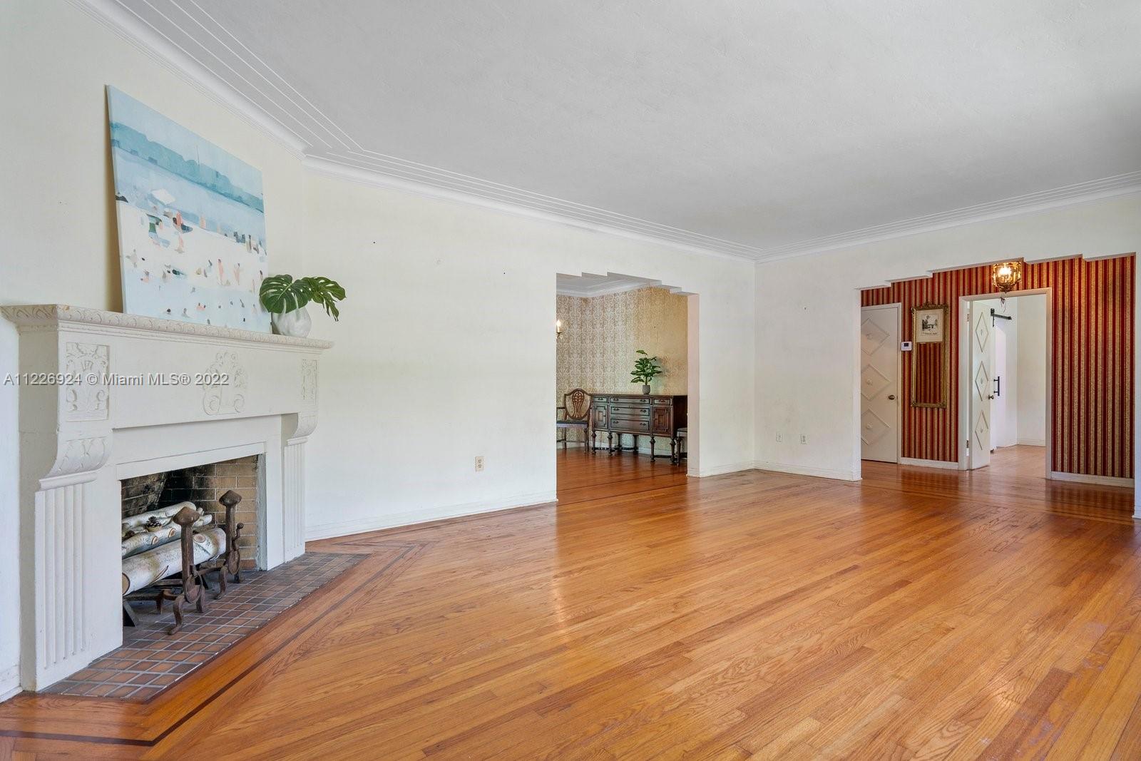 Character sets the stage for this one of a kind Central Miami Shores home! Enjoy the elegance of 1930s architecture as you enter through a gracious foyer and are greeted by a spacious living room, formal dining and Florida rooms with large windows. Architectural details like 8.5' ceilings, a working corner fireplace, original oak floors with inlaid wood details, custom crown/door molding and porthole windows will delight. 2 lrg bed + 1.5 baths. Not in a flood zone and elevated above street level, this home has an oversized one car garage containing an additional 1/2 bath. The corner lot is beautifully landscaped and bordered by a charming wall railing. Enjoy living within the popular Central Shores area and walking distance to local schools as well as shops and restaurants in MIMO/2nd Ave.