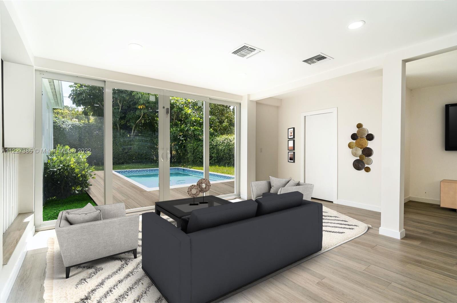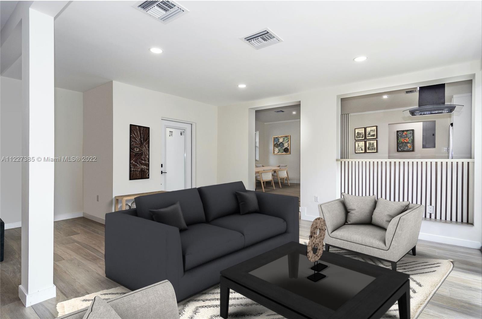 Beautifully fully renovated house with 3 bedrooms and 4 bathrooms in an exclusive residential zone. Living Area: 1732 Sf It includes a family room, living room. The kitchen is renovated and it is fully equipped with samsung appliances. The 3 bedrooms have an on suite bathroom and the 4th full bathroom can be accessed from the living room and swimming pool. All floors and bathroom walls are made of porcelain tile. The house has a new A/C system and air ducts. There is new plumbing, electricity and a new roof. The new pool comes with a wood deck. There is a new circular driveway, impact windows and fence. Everything has been renovated with city permits.