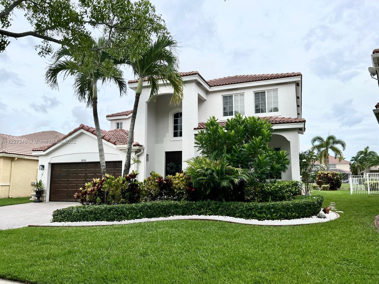 EXTREMELY DESIRABLE GLADIOLA MODEL WITH WATERFRONT LOT 9,965 SQFT. FEATURES FIVE SPACIOUS BEDROOMS, FOUR FULL BATHS, A BREAKFAST NOOK, AND A FAMILY ROOM. HIGH IMPACT DOORS AND WINDOWS. NEW NEUTRAL PORCELAIN TILE FLOORS DOWNSTAIRS AND NEW ENGINEERED WOOD FLOORS UPSTAIRS. REMODELED WHITE EUROPEAN KITCHEN WITH QUARTZ COUNTERTOP. CONVENIENT ONE BEDROOM AND FULL BATH DOWNSTAIRS. NEW HIGH-EFFICIENCY AIR CONDITIONING SYSTEM. SEPARATE AC FOR THE GARAGE. ELECTRIC VEHICLE CHARGING STATION. WATERFRONT BACKYARD FEATURES A LARGE PAVED DECK WITH ENOUGH ROOM FOR A POOL. THIS MAGNIFICENT HOME IS LOCATED IN THE GATED COMMUNITY OF SAVANNA, WESTON. TOP-RATED SCHOOLS. SAVANNA COMMUNITY FEATURES RESORT FEEL POOLS, CLUBHOUSE, PLAYGROUND, BASKETBALL COURTS, SOCCER FIELDS, AND A MINI GOLF COURSE