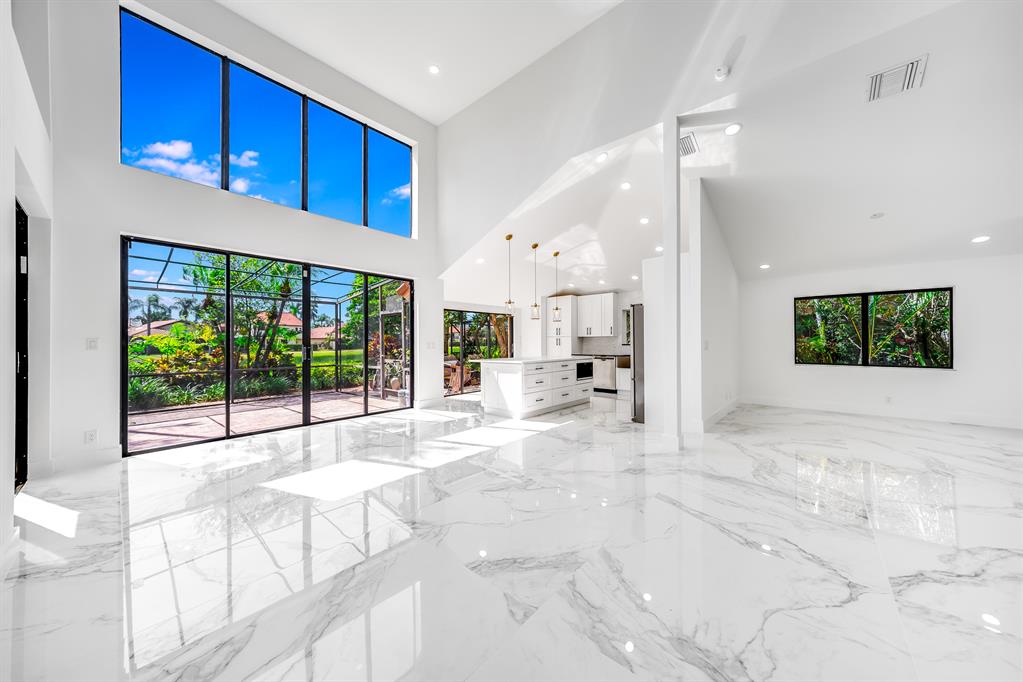 Completely remodeled 4 bed, 3 bath home in Boca Pointe with new 2021 roof, stunning waterfront views and luxury finishes. The open-concept first floor features large living and dining areas and a spacious kitchen with custom cabinets, an oversized island and brand new appliances. The large first floor master has direct access to the back yard and a luxurious bathroom with custom his and her vanities, a soaker tub and shower. Rounding out the first floor is another bedroom, additional full bathroom and indoor laundry room. Upstairs 2 more bedrooms and a brand new bathroom provide plenty of space for living, working and hosting. With new plumbing and a transferable 12 year roof warranty. Plenty of room for a pool and situated directly next to the community pool.