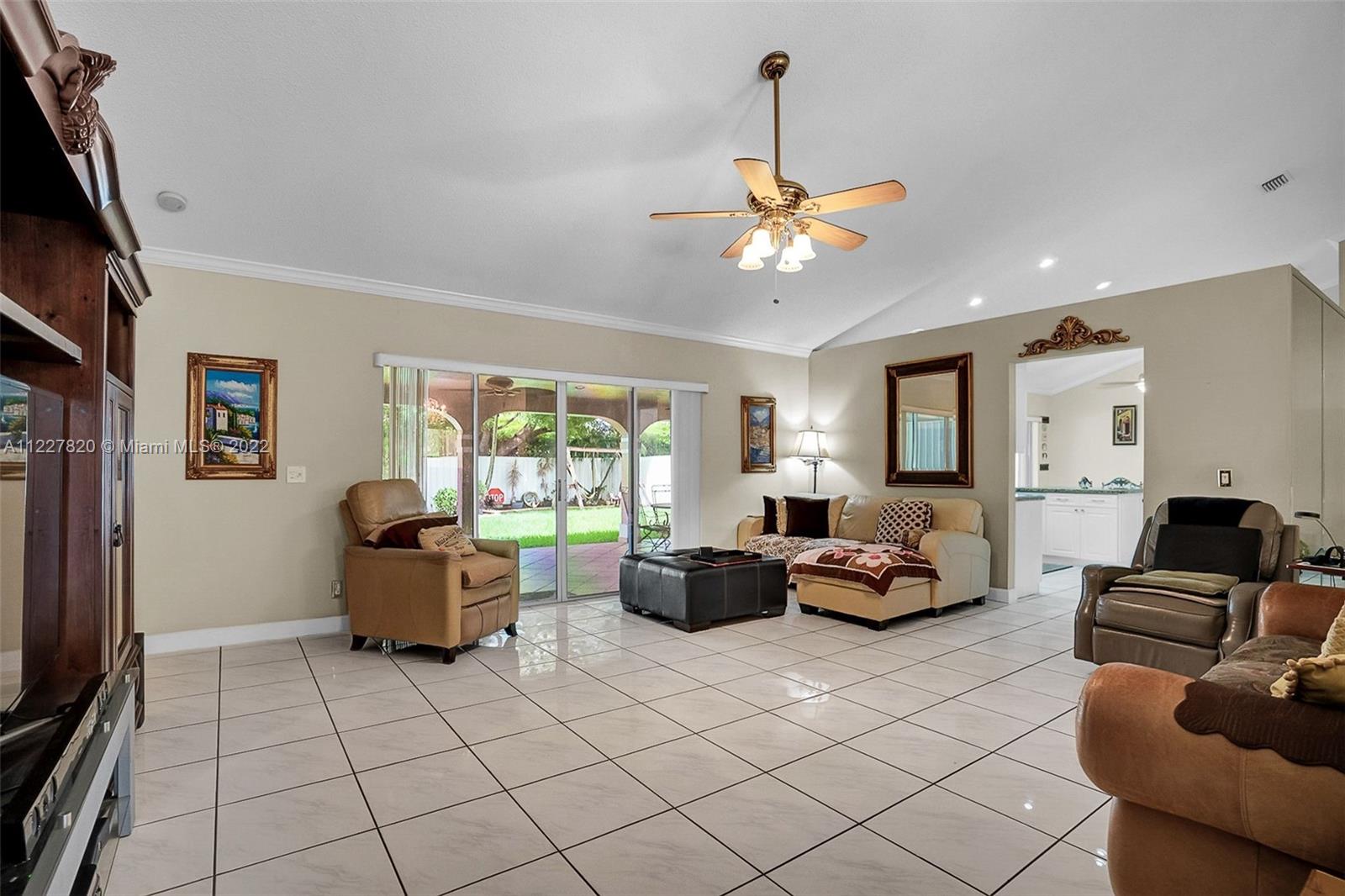 Amazing opportunity in much desired Spring Valley, this is a great floor plan (Ruby model) tile throughout the main living areas, remodeled kitchen and master cabana bath, huge covered open patio great for entertaining, plenty of room for a pool in this fenced in yard, beautiful curb appeal travertine covered walkway and front patio, accordion shutters, SS appliances, granite countertops, corner lot with side access to the backyard, the list goes on, this home is a must see, best value around.