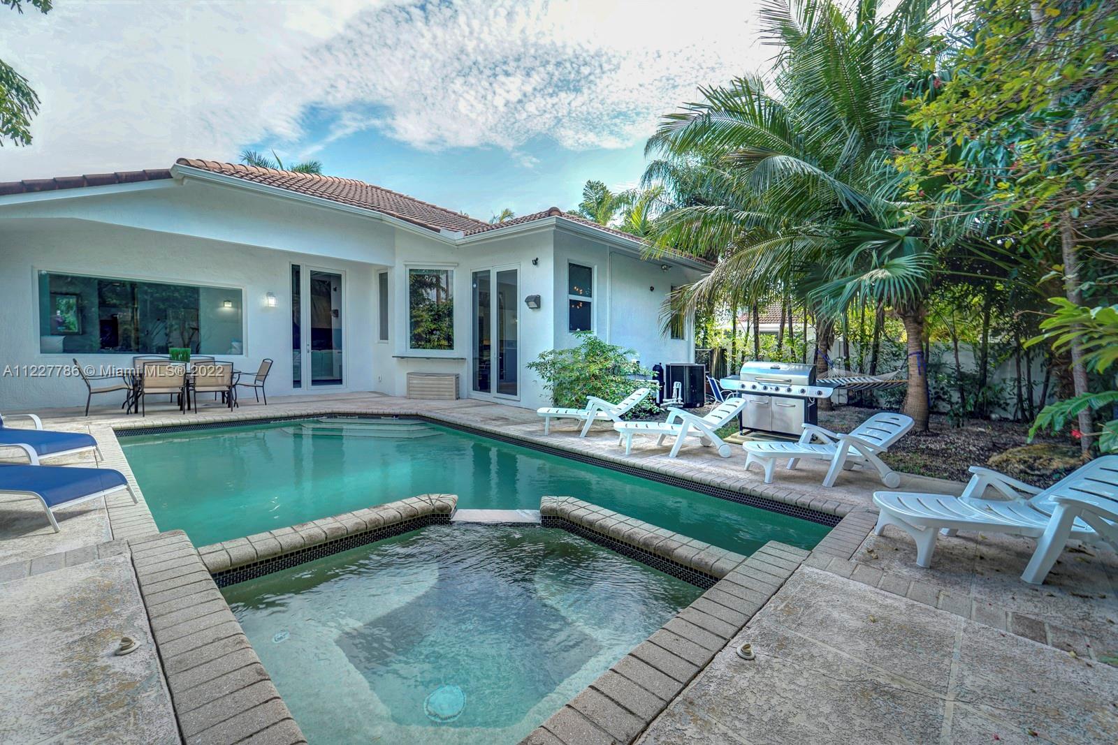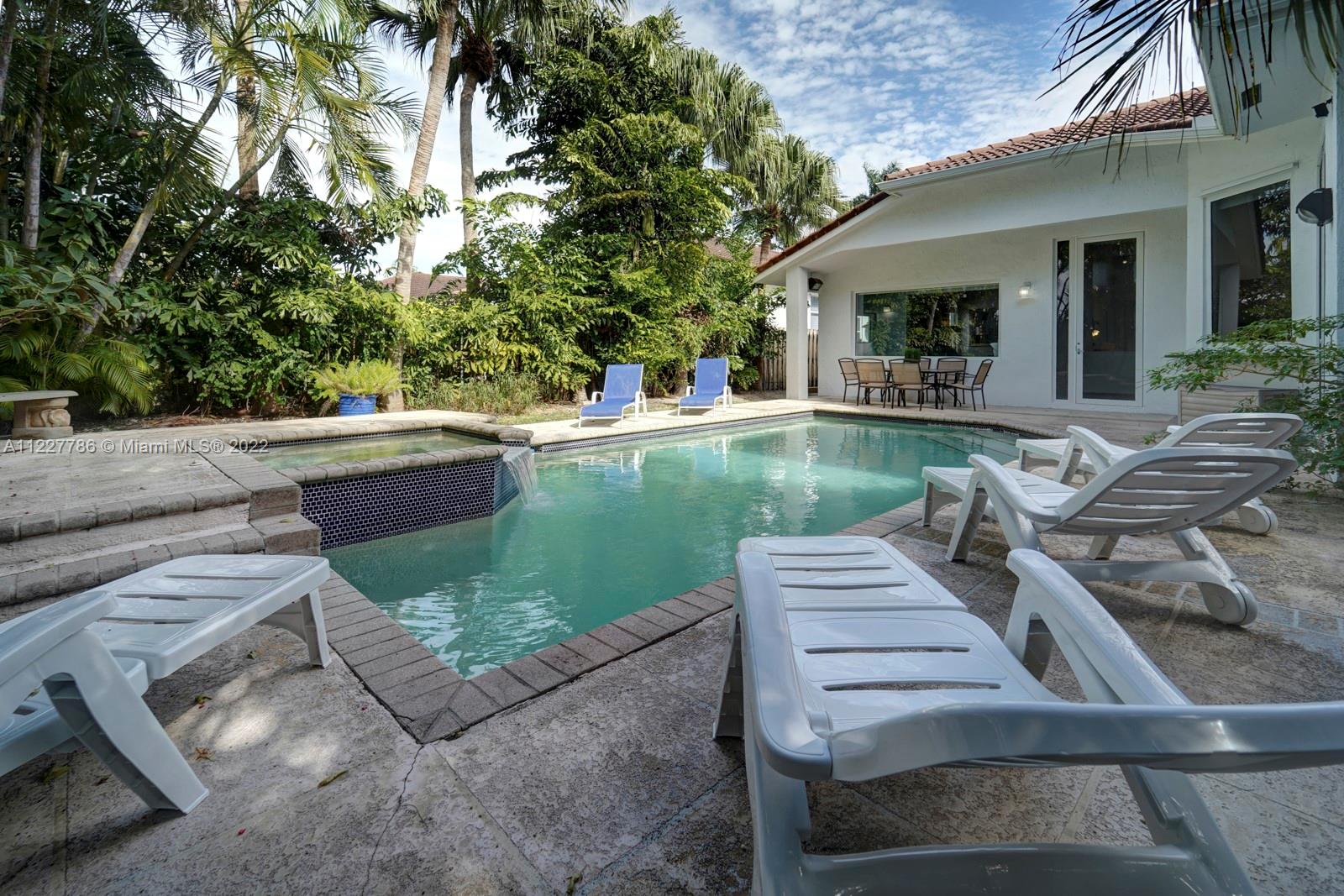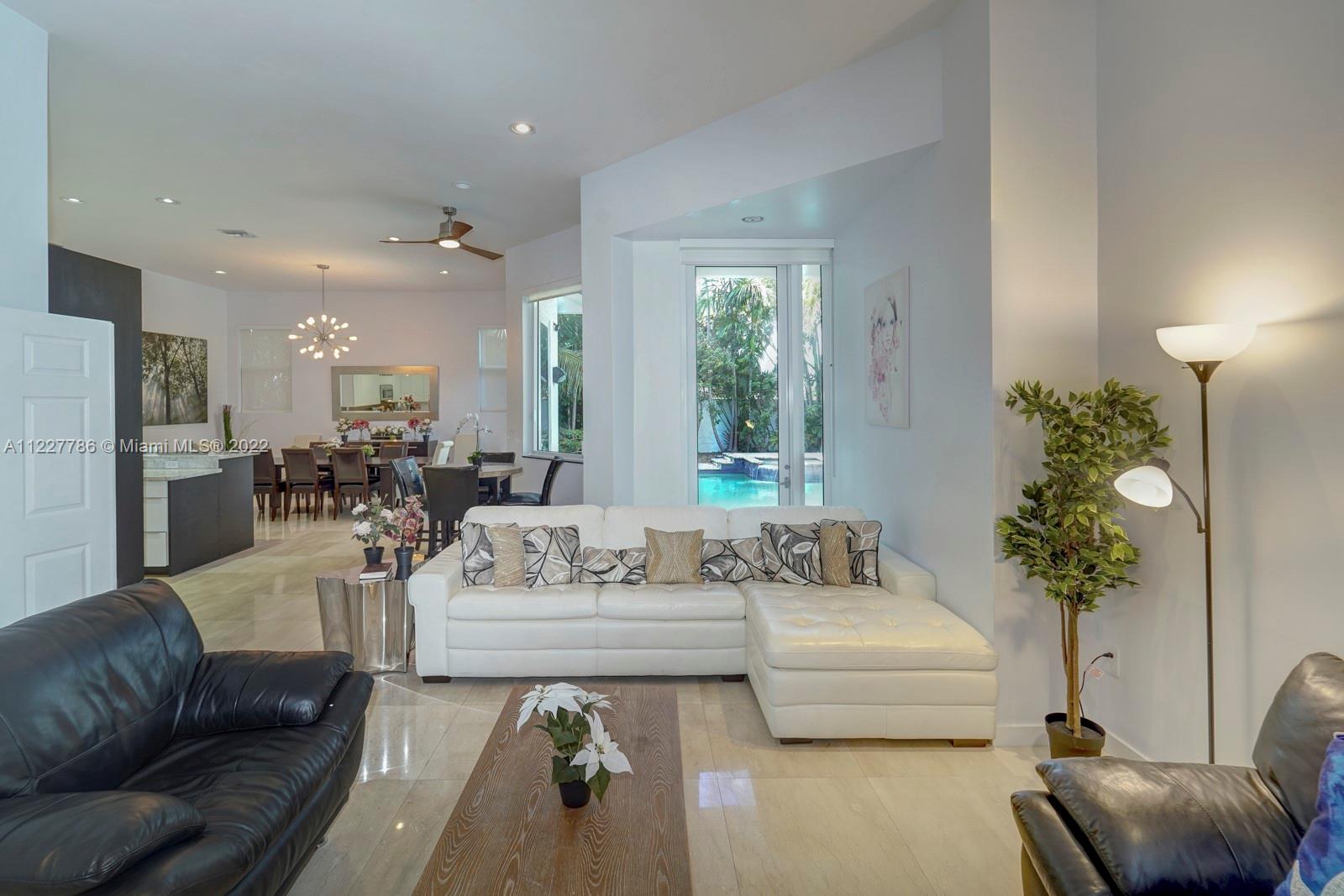 Beautiful home in a great location. With high vaulted ceilings, large windows bringing in plenty of sunlight. This updated home has fresh new feel with 4 bedrooms and 2.5 bathrooms. With a beautiful fenced private backyard with a pool and large entertaining area. Kitchen has stainless steel appliances and impacted windows. Selling price includes all the furniture. Home is easy to show.