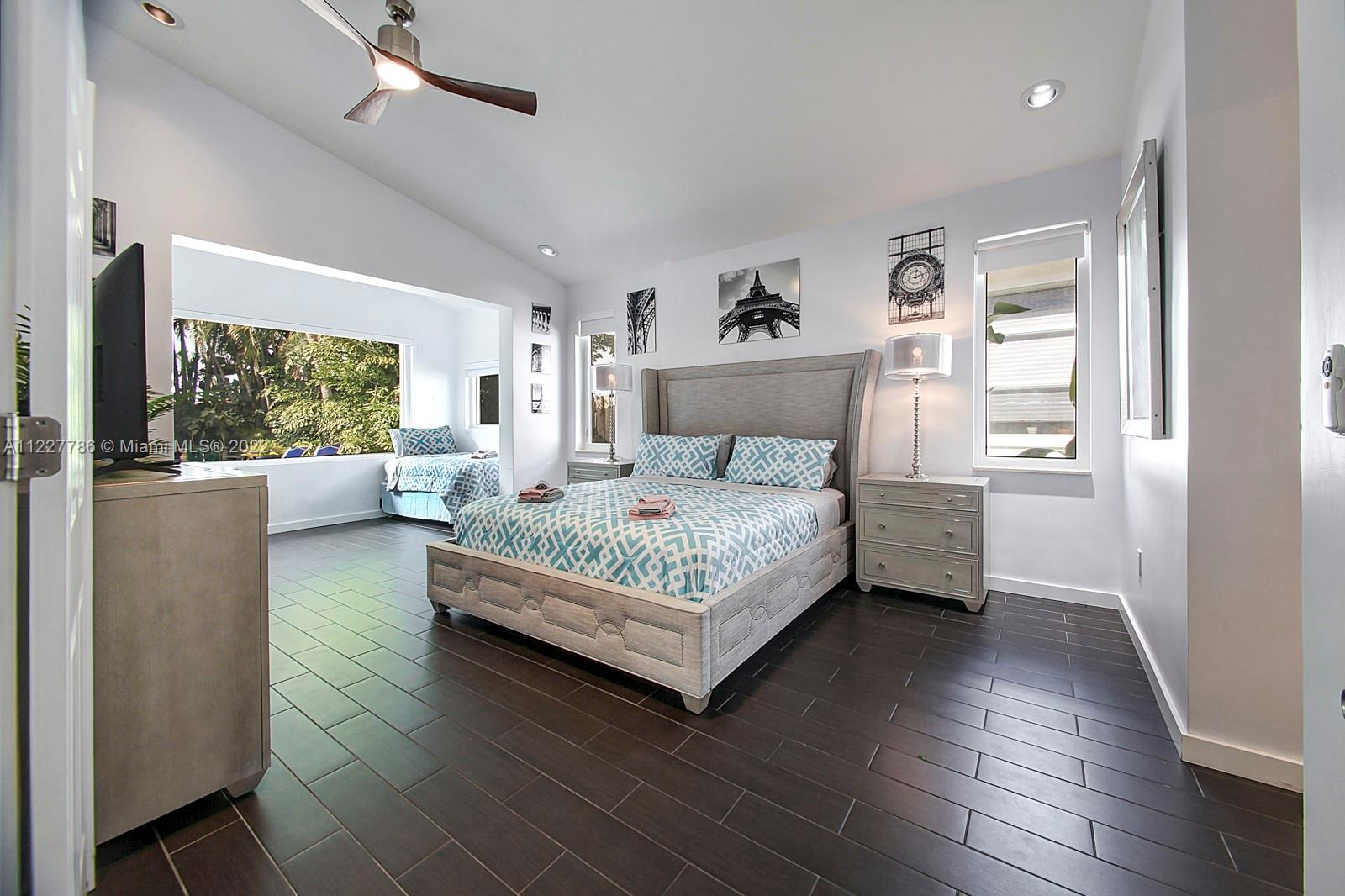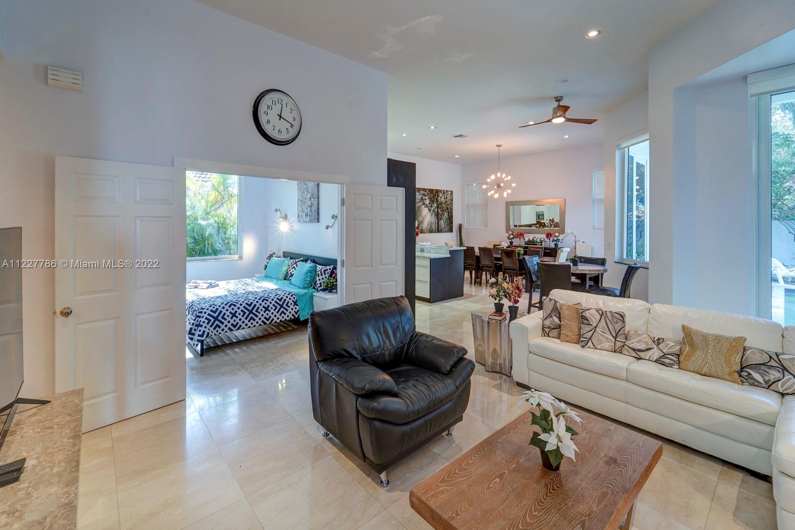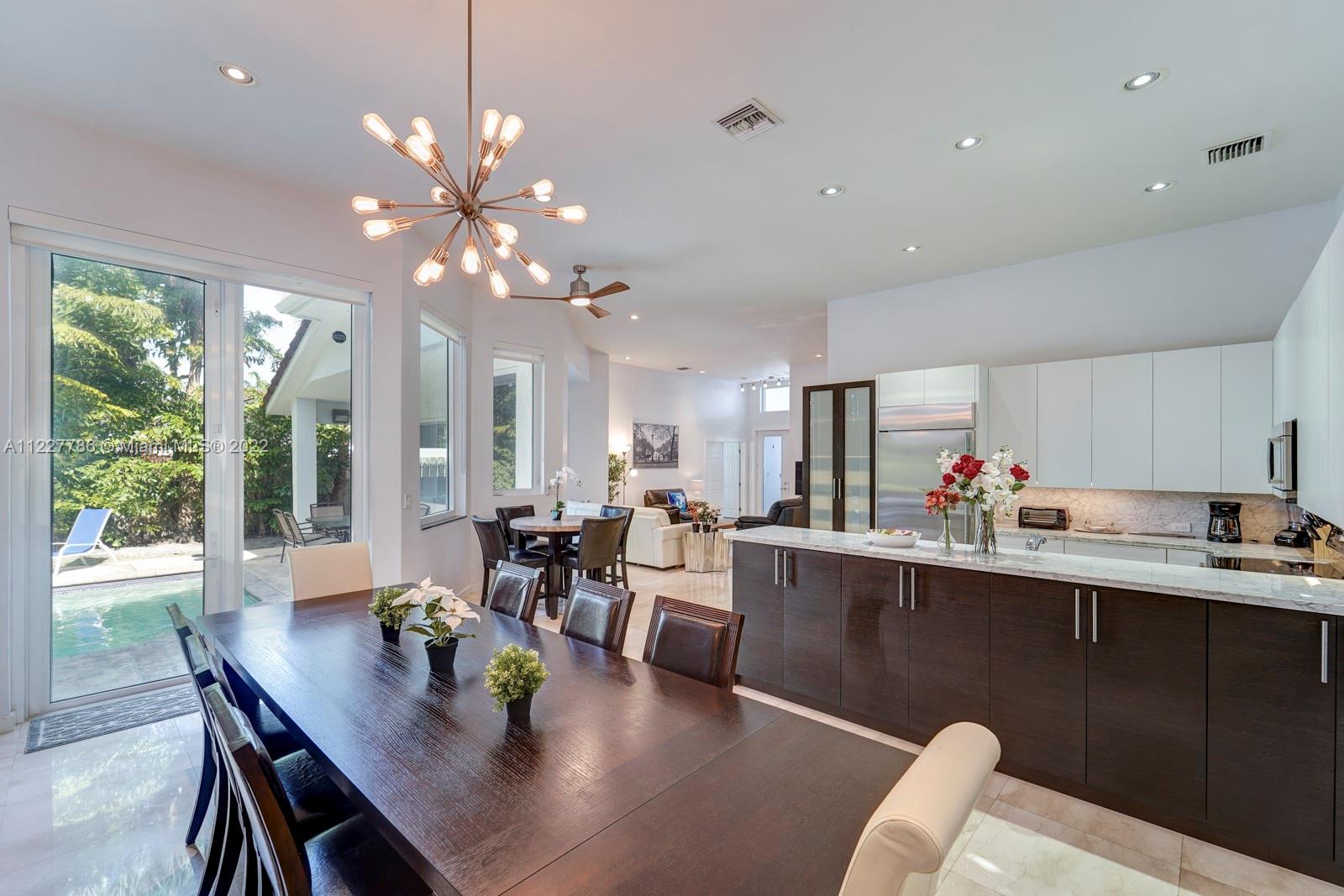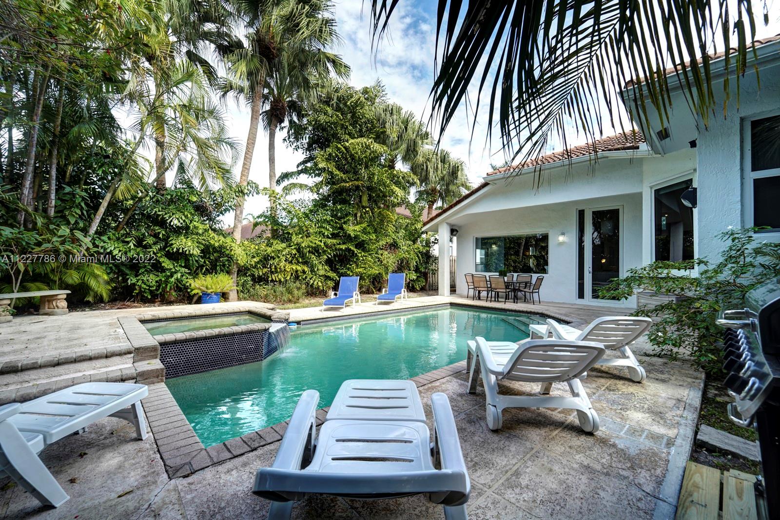 Beautiful home in a great location. With high vaulted ceilings, large windows bringing in plenty of sunlight. This updated home has fresh new feel with 4 bedrooms and 2.5 bathrooms. With a beautiful fenced private backyard with a pool and large entertaining area. Kitchen has stainless steel appliances and impacted windows. Selling price includes all the furniture. Home is easy to show.