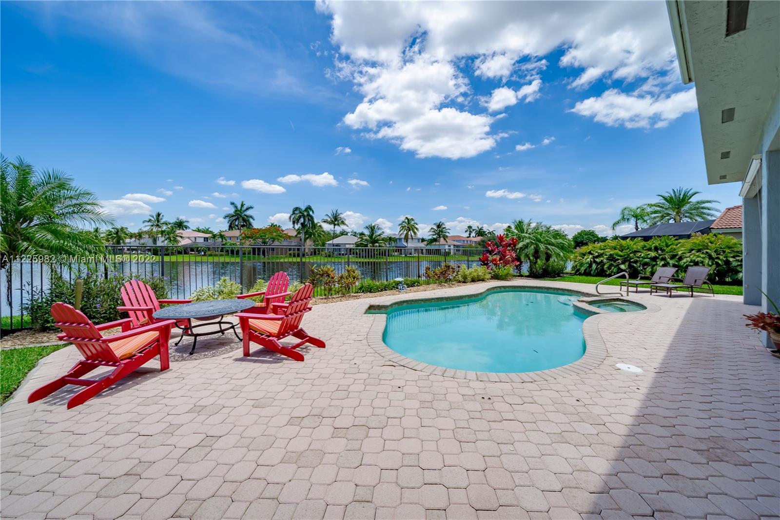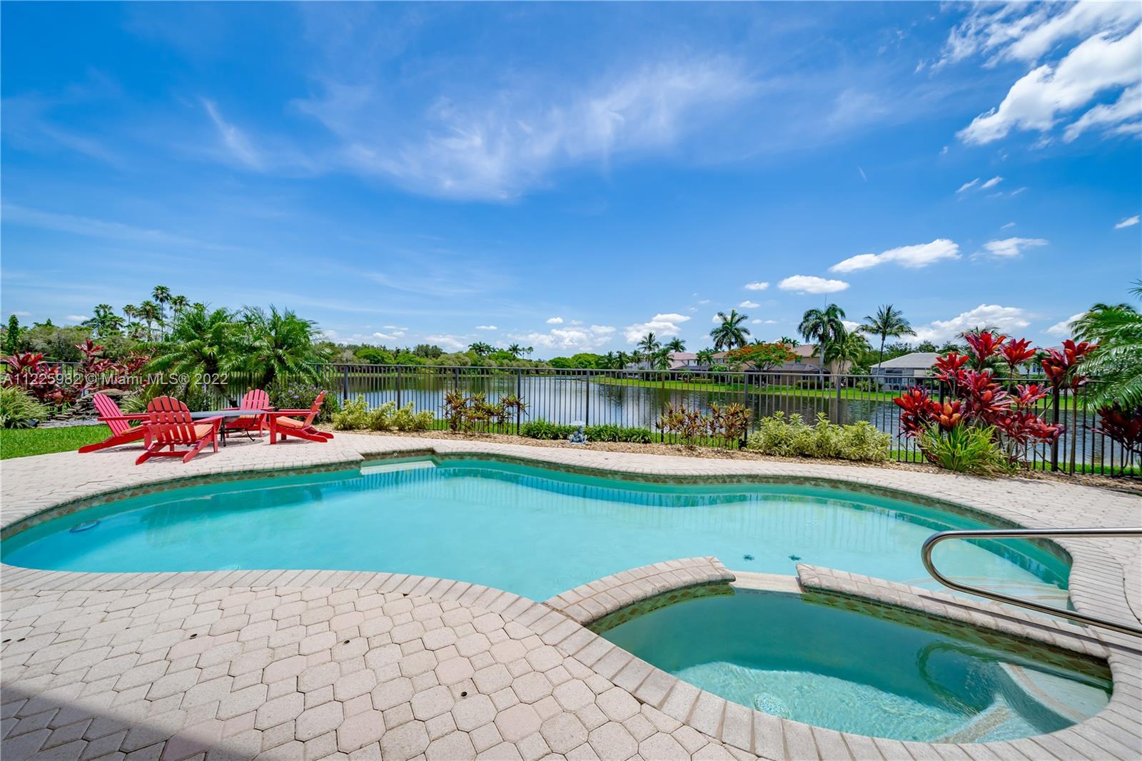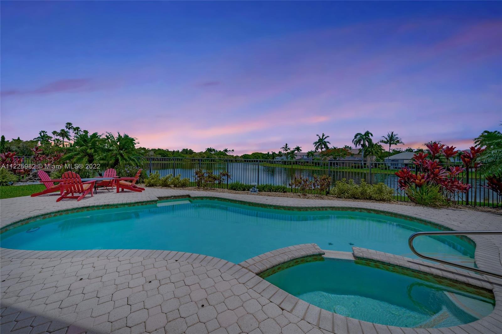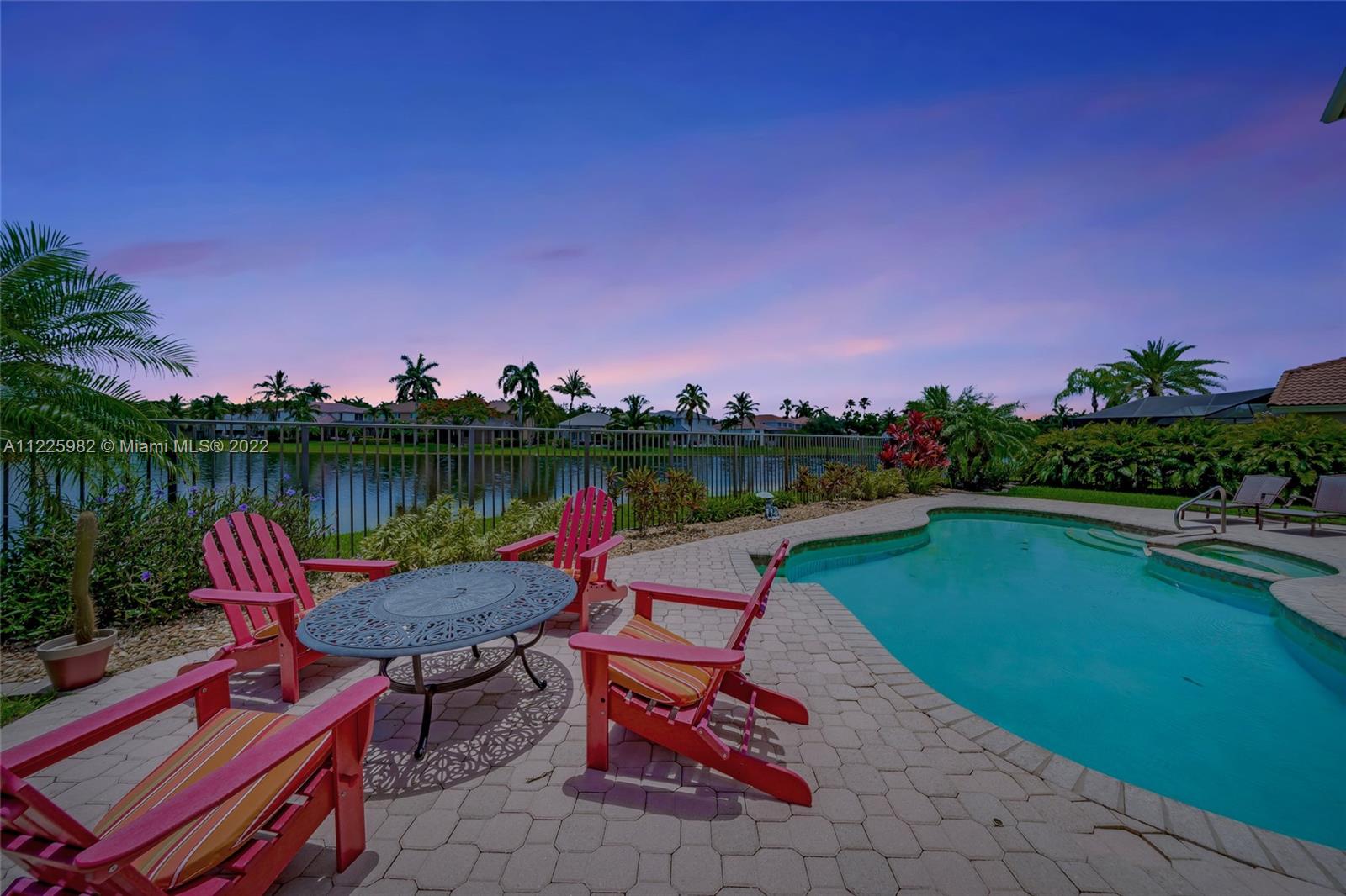 Breathtaking waterfront views at The Islands, one of the most exclusive communities in the City of Weston. Enjoy resort-like living boasting of 98 FT of lakefront, a sparkling pool, an oversized patio, lush landscaping with a waterfall and spectacular sunsets within your own private oasis. The first floor of this popular 5 bedroom floor plan showcases a formal living room with volume ceilings, formal dining room, eat-in kitchen along with a separate suite with a bedroom and full bathroom. The second level offers 1 ensuite & 2 secondary bedrooms. The, primary bedroom with 2 walk-in closets and a large private balcony. All Impact windows and Doors. Community Park. Near Weston Town Center, recreational paths, shopping and restaurants. Welcome to Weston and South Florida Living At Its Best!