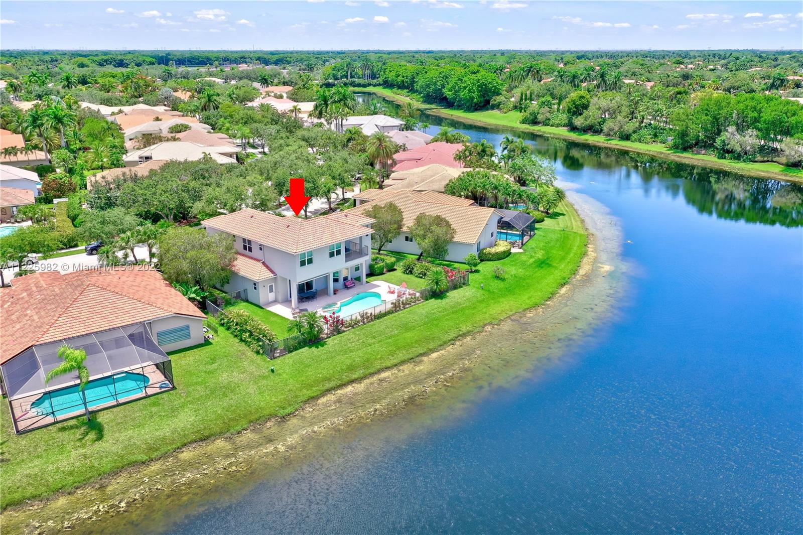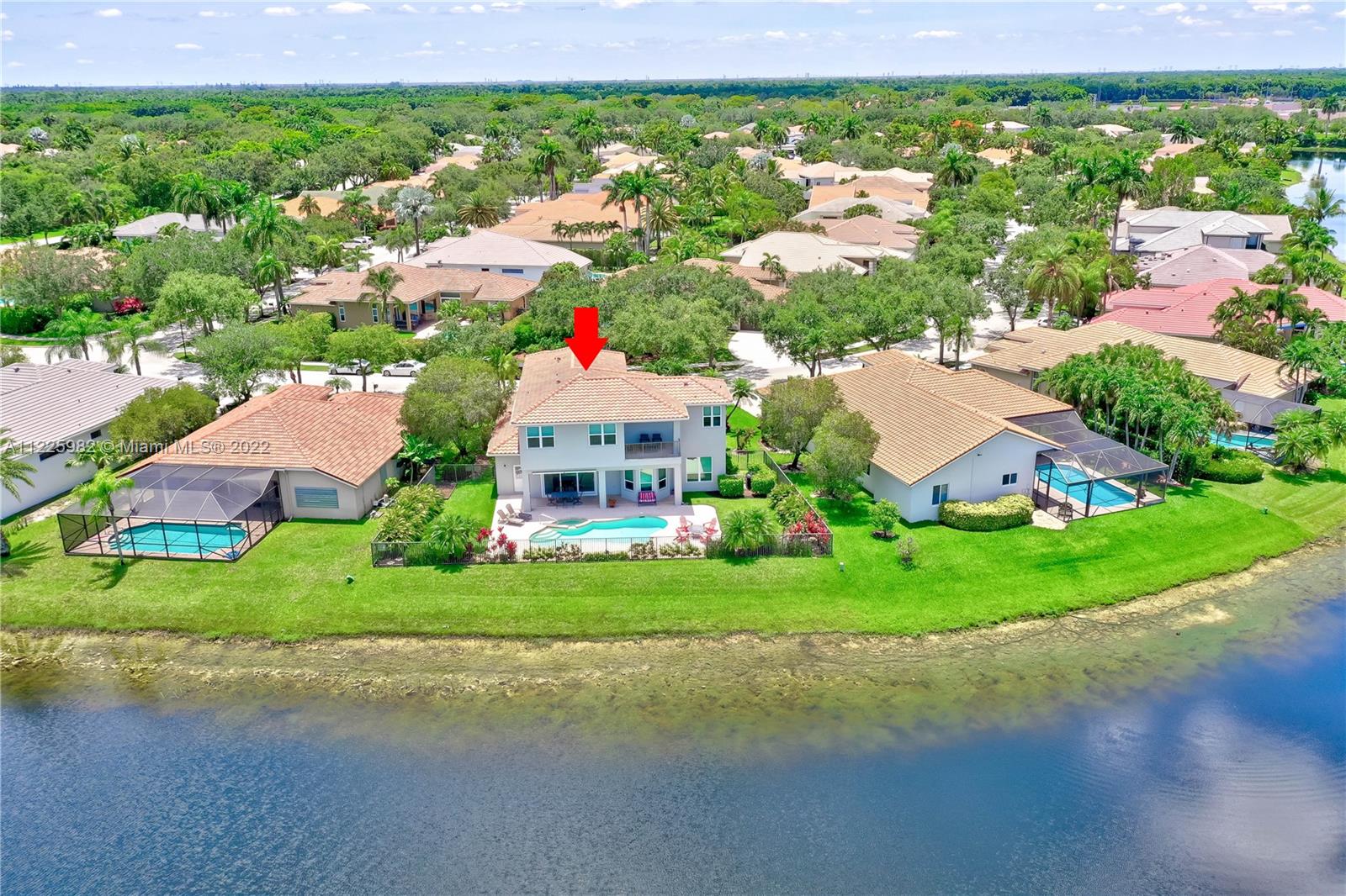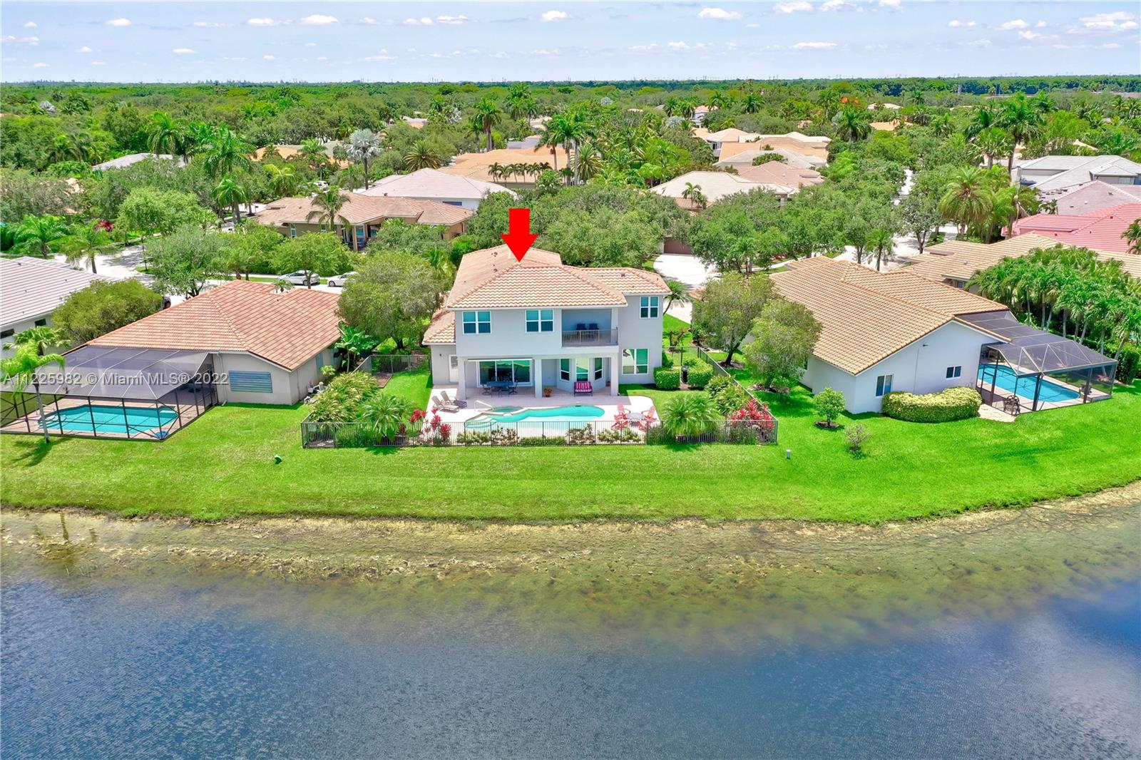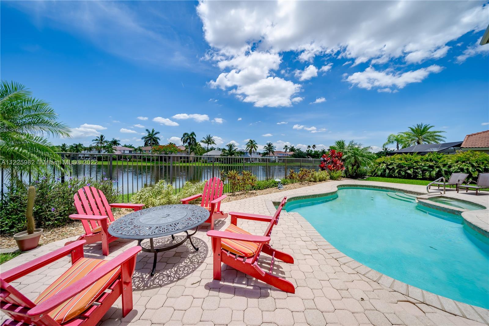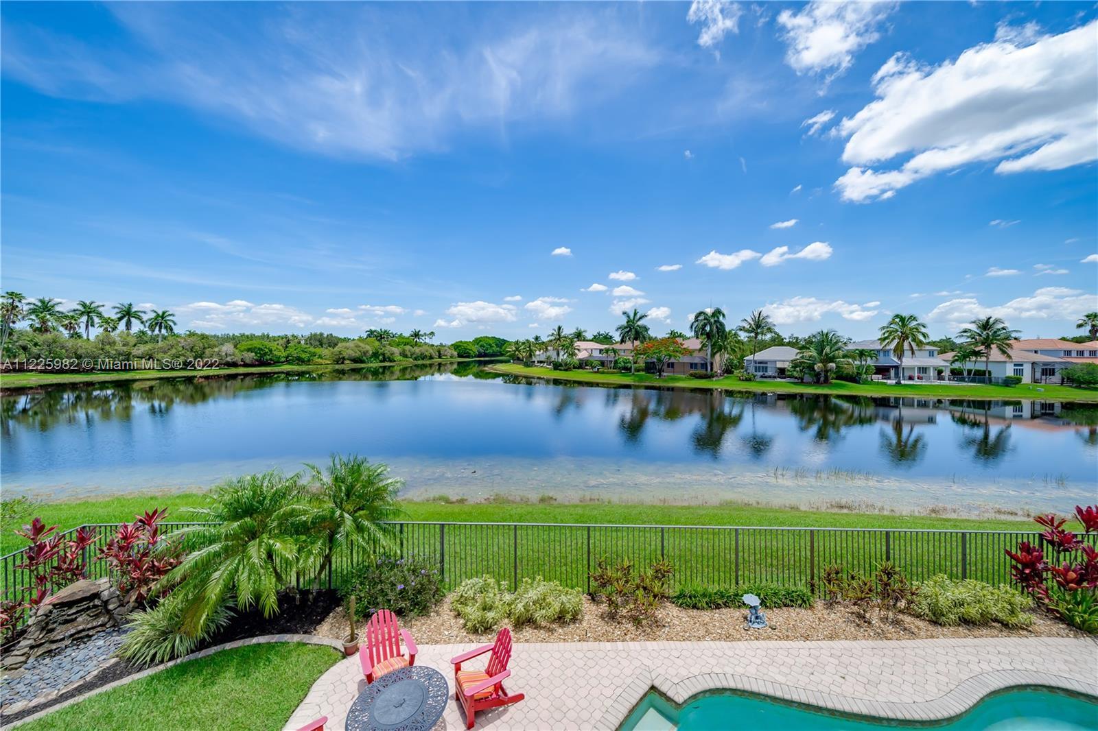 Breathtaking waterfront views at The Islands, one of the most exclusive communities in the City of Weston. Enjoy resort-like living boasting of 98 FT of lakefront, a sparkling pool, an oversized patio, lush landscaping with a waterfall and spectacular sunsets within your own private oasis. The first floor of this popular 5 bedroom floor plan showcases a formal living room with volume ceilings, formal dining room, eat-in kitchen along with a separate suite with a bedroom and full bathroom. The second level offers 1 ensuite & 2 secondary bedrooms. The, primary bedroom with 2 walk-in closets and a large private balcony. All Impact windows and Doors. Community Park. Near Weston Town Center, recreational paths, shopping and restaurants. Welcome to Weston and South Florida Living At Its Best!
