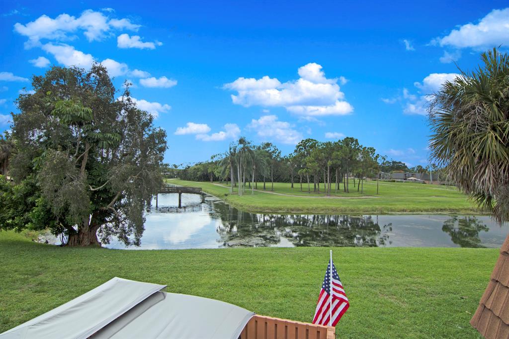 One of the best waterfront locations in the Village of Sandalwood Lakes North. Renovated kitchen and bathrooms, new central air conditioning and brand new fence. This perfectly situated residence with water and green area views offers a private and park-like setting and is close to a beautifully maintained park, pool, and exercise trails. HOA dues include cable, internet and water, and fence and roof maintenance. Outdoor canopy, kitchen TV and bar stools included with purchase.