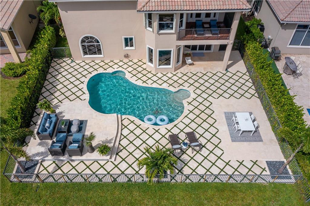 STUNNING NEW Designer Patio w/24x24 Limestone w/Artificial Grass, UPDATED Heated Pool, and NEW Palm Trees will make Backyard Entertaining a Must! GORGEOUS 5 Bedroom/3 Bath/3 Car Garage w/Oversized Circular Driveway, Entry Courtyard. Impressive 20' VOLUME Ceilings and 24' Entry Foyer! HUGE Owner's Suite features PRIVATE BALCONY Overlooking LAKE, 2 Walk In Closets w/Built Ins, Sitting Room, Bath w/Dual Sinks, Jacuzzi Tub, Massive Shower w/2 Showerheads and 2 Entries. 4th Bedroom Upstairs currently a Media Room/Office. 1st Fl Guest Bedroom. BEAUTIFUL Acacia Wood Flooring featured on Curved Staircase and Upstairs Hall. Brand New 2nd Fl Hall Bathroom and Updated 1st Fl Full Bath. Kitchen Features 42" UPGRADED Wood Cabinets and Granite, Updated Appliances, Walk In Pantry. New Paint. Newer A/Cs.