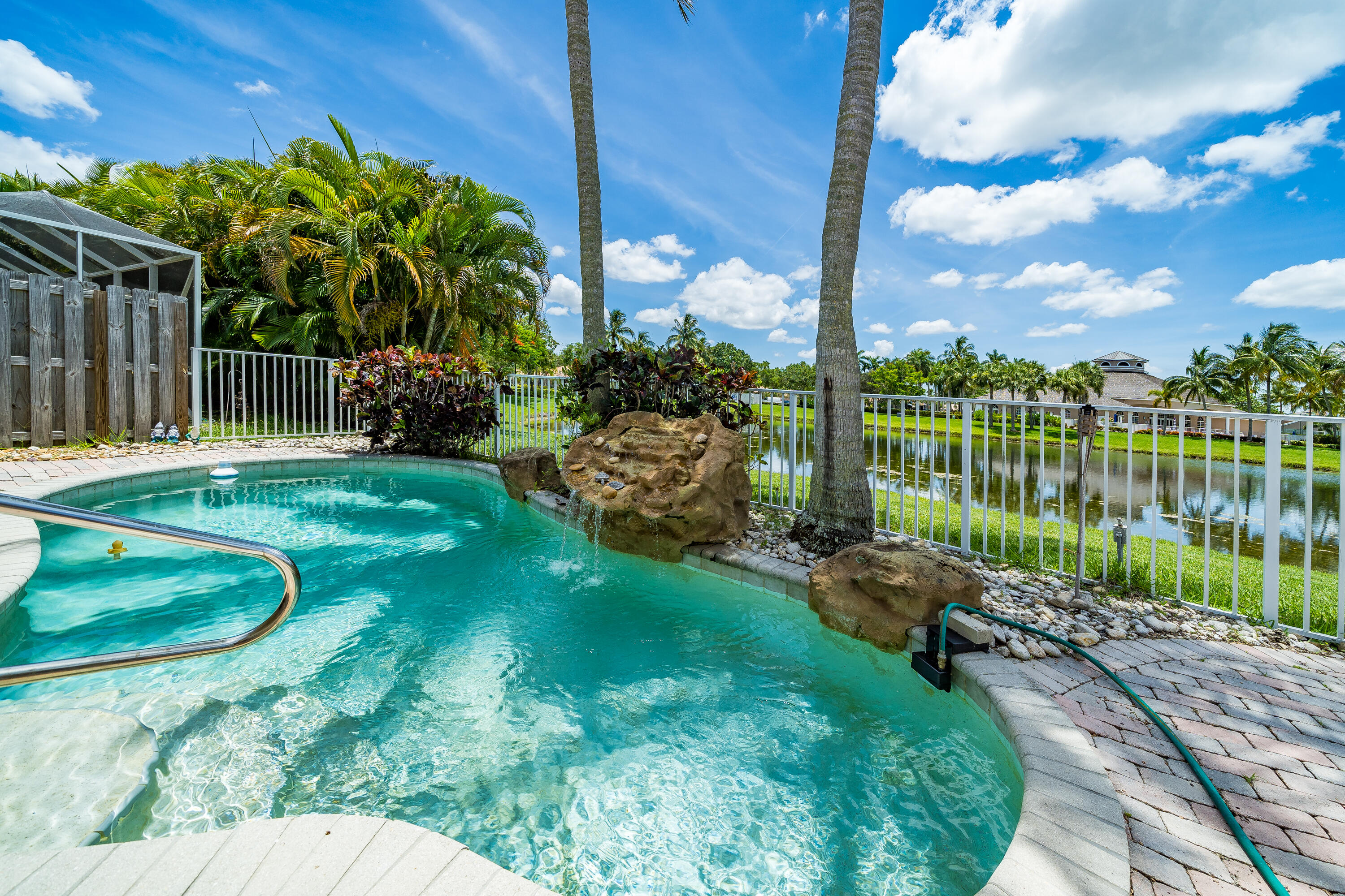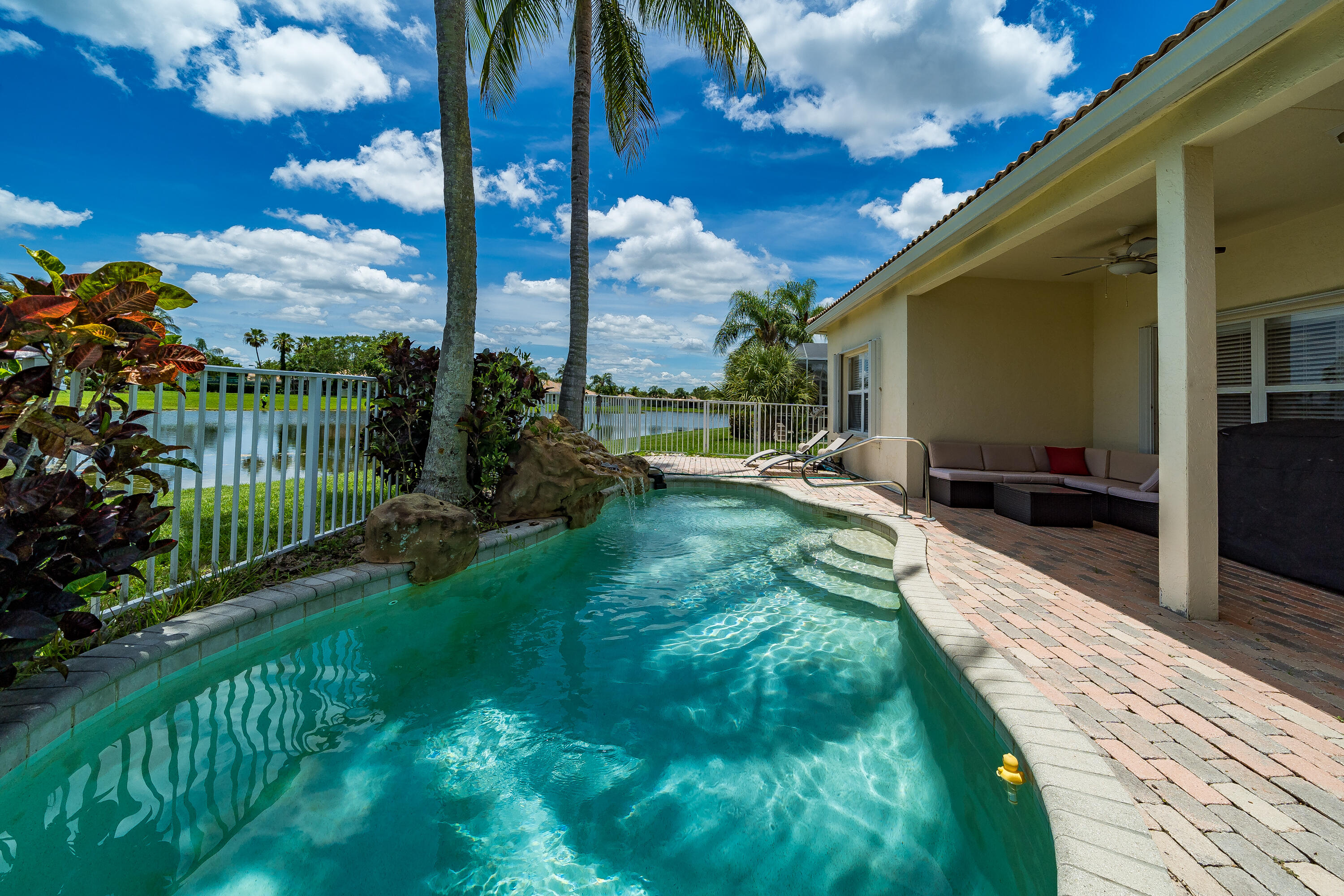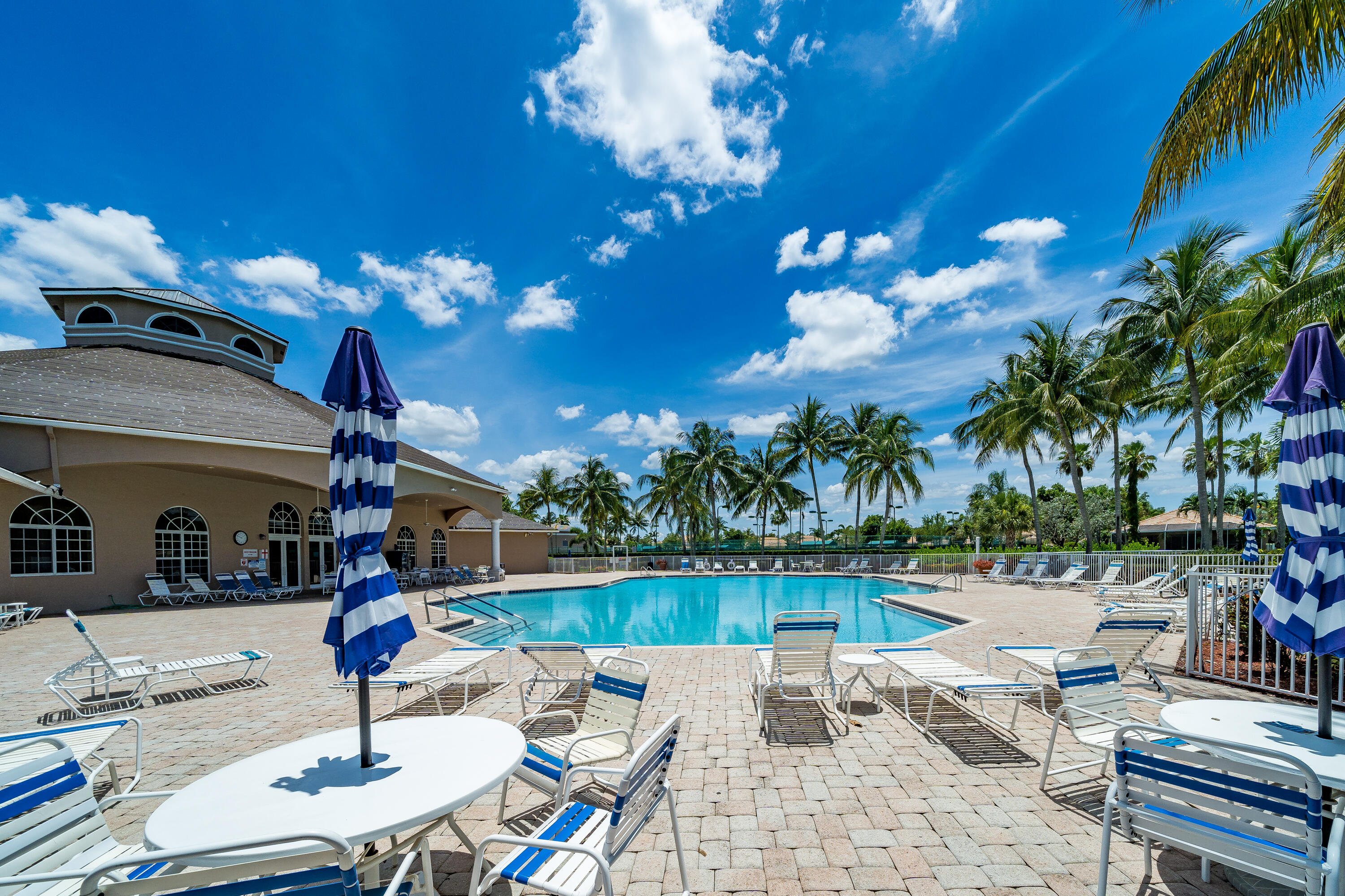 Rare find! Beautiful home w/private heated pool & gorgeous water view is just a short walk to this all-ages community's fabulous amenities incl spa, pool, tennis, tot lot, billiards, card rm, fitness center, basketball, shuffleboard. Spacious, split-plan features open living space, perfect for entertaining. Lg kitchen has new s/s appliances w/on-trend induction/air fry oven. Inside laundry w/new washer/dryer. New pool heater/pump. Wood-look tile set in herringbone pattern thruout main liv areas & Bdrm 2 w/double doors, lg closet & beautiful built-ins, Owner's suite nicely sized w/tons of organized closet space & bath w/dual vanities, garden tub, lg shower & separate water closet. HOA incl amenities, Xfinity cable/internet, alarm monitoring, sprinkler/lawn maint, trash, 24 hr manned gate