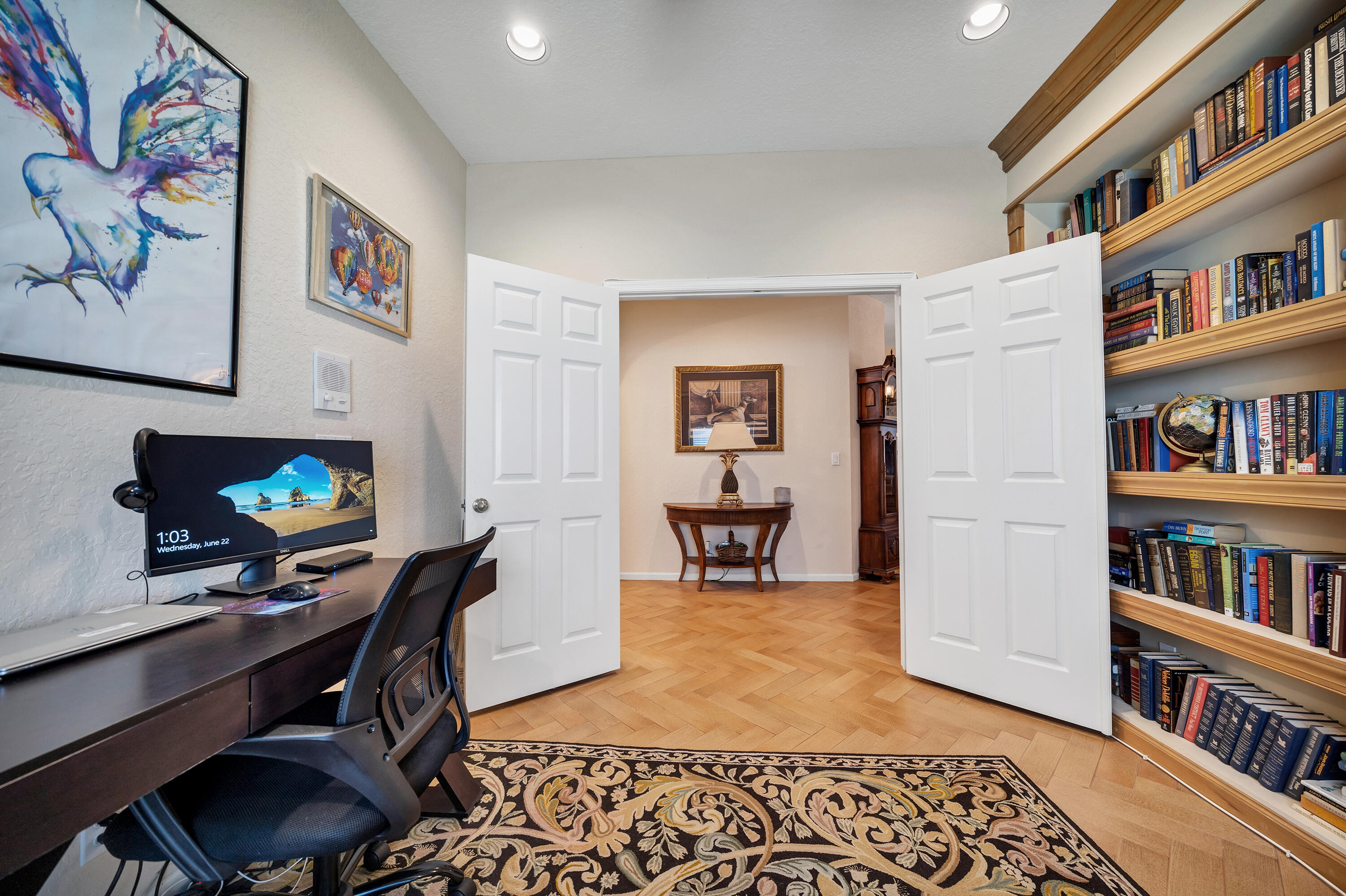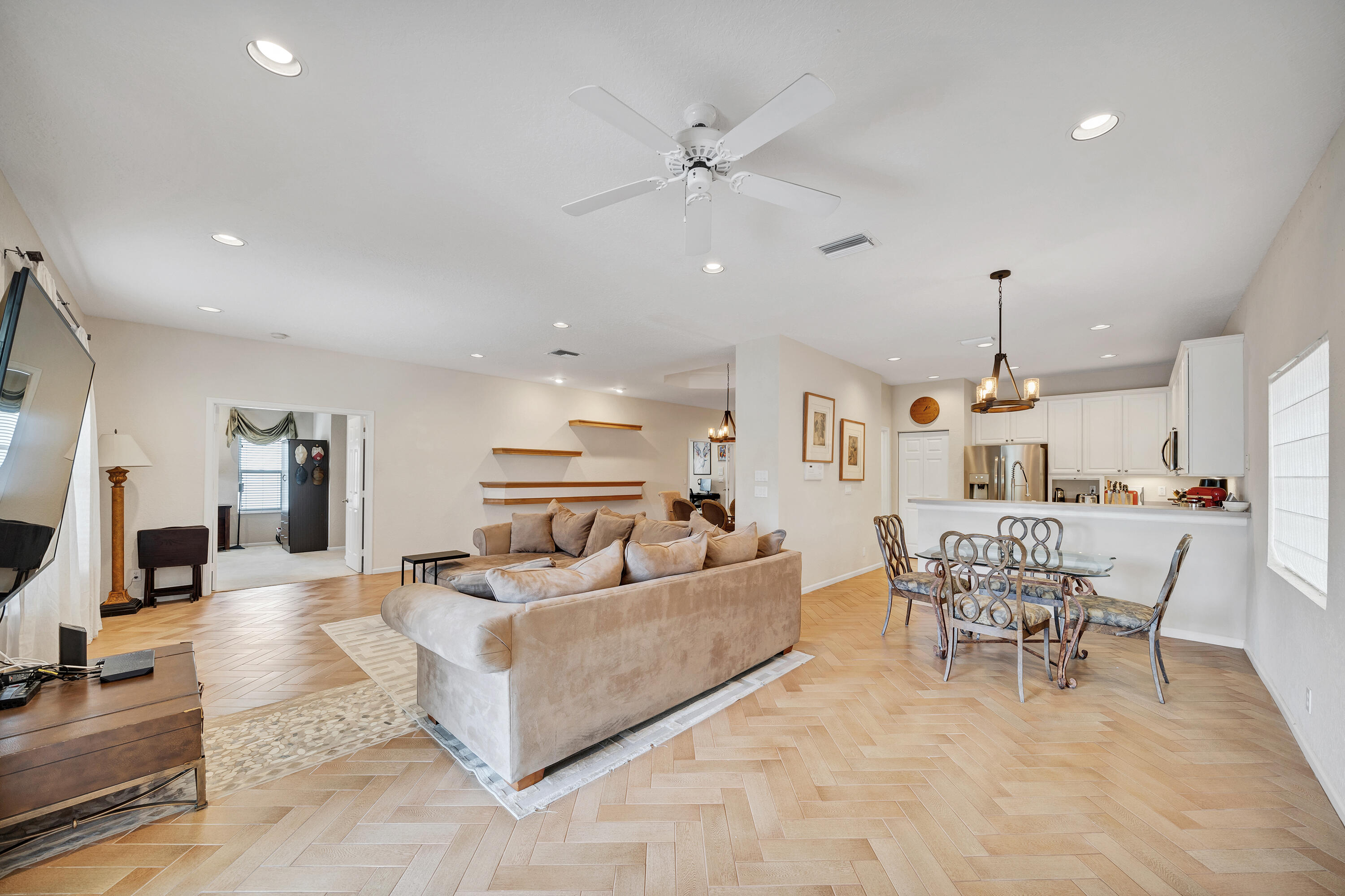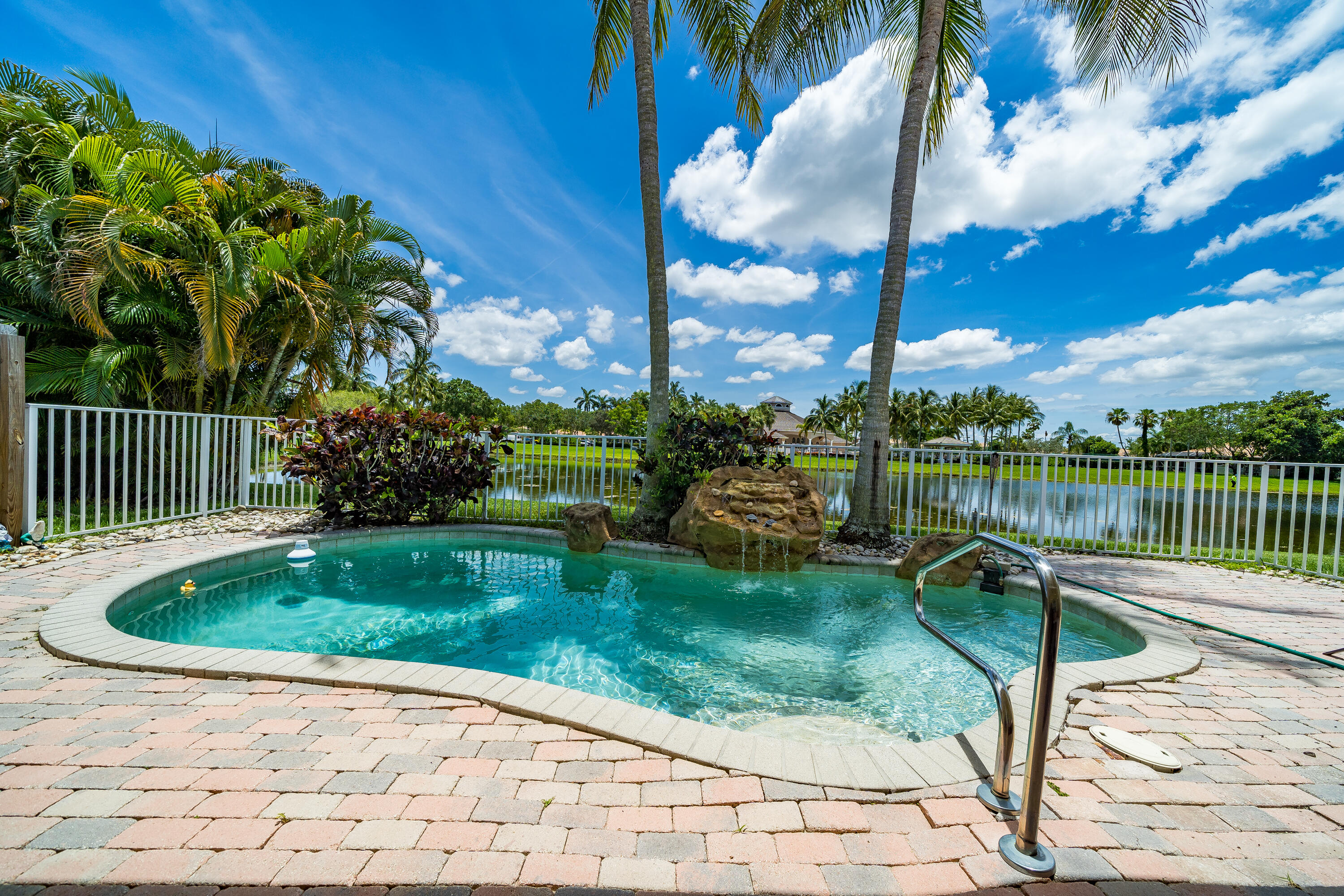 Rare find! Beautiful home w/private heated pool & gorgeous water view is just a short walk to this all-ages community's fabulous amenities incl spa, pool, tennis, tot lot, billiards, card rm, fitness center, basketball, shuffleboard. Spacious, split-plan features open living space, perfect for entertaining. Lg kitchen has new s/s appliances w/on-trend induction/air fry oven. Inside laundry w/new washer/dryer. New pool heater/pump. Wood-look tile set in herringbone pattern thruout main liv areas & Bdrm 2 w/double doors, lg closet & beautiful built-ins, Owner's suite nicely sized w/tons of organized closet space & bath w/dual vanities, garden tub, lg shower & separate water closet. HOA incl amenities, Xfinity cable/internet, alarm monitoring, sprinkler/lawn maint, trash, 24 hr manned gate