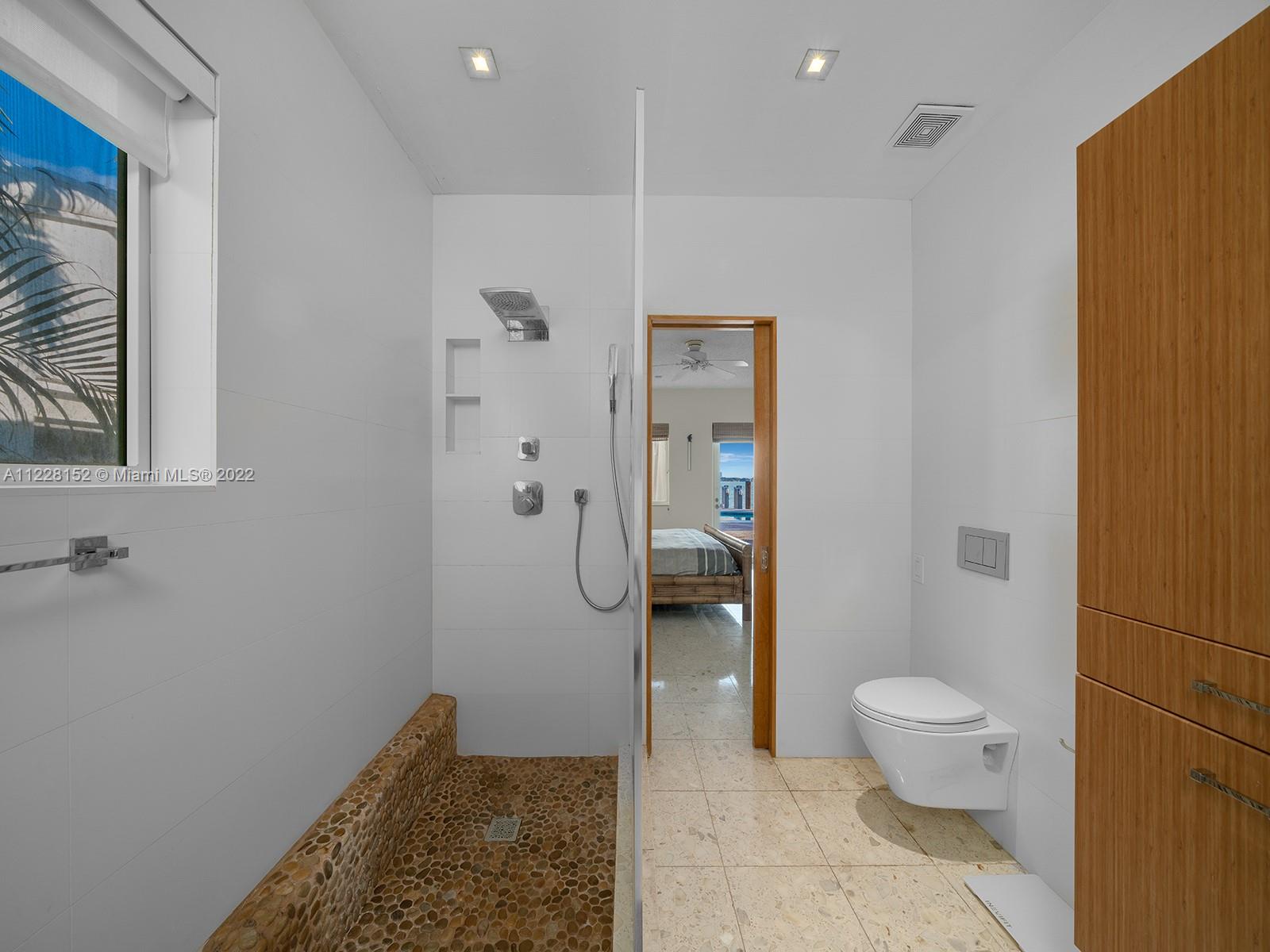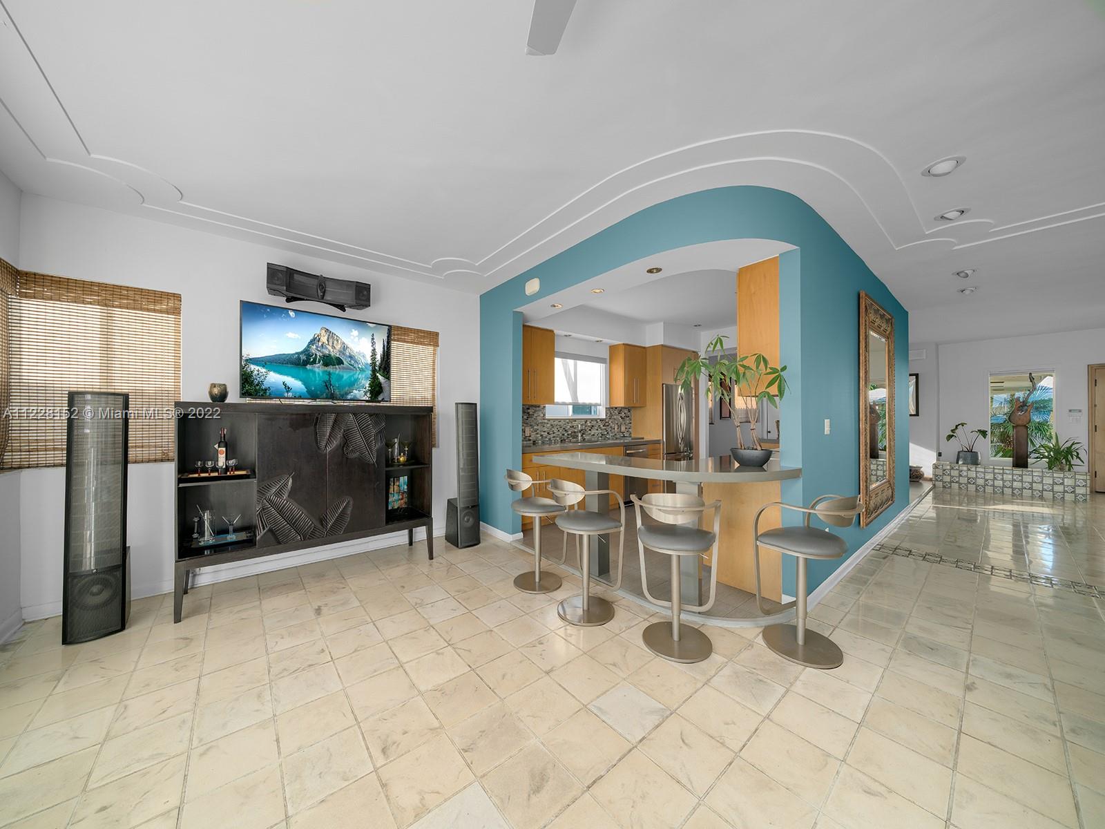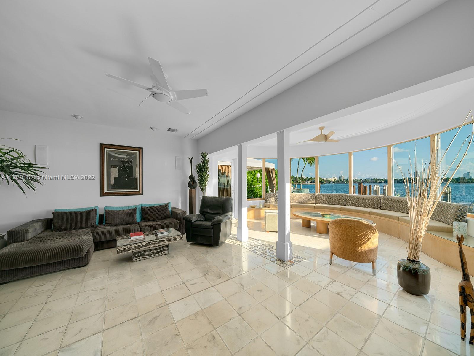 Rare opportunity to acquire Miami Beach home with unobstructed, panoramic wide bay view of Biscayne Bay, South Beach, Downtown Miami skyline, Port of Miami, and North Bay Road estates with coveted southern sunrise to sunset exposure. Permitted private, full service (electric and fresh water) dock with 30,000 pound boatlift. Ocean access, no fixed bridges. Large 8 ft depth pool with iconic diving board. Entry features double, LCD glass French doors with spectacular water view the moment you enter. Inviting, bright open floor plan with 9 ft ceilings, Impressive foyer, modern kitchen with wine cooler, quartz counters. 3 BR/3 BA plus flex room with closet, and laundry room. Sunroom, family room, dining room, Ipe deck, Cabana, and 2 car attached garage plus 6 car parking on circular driveway.