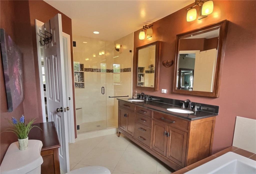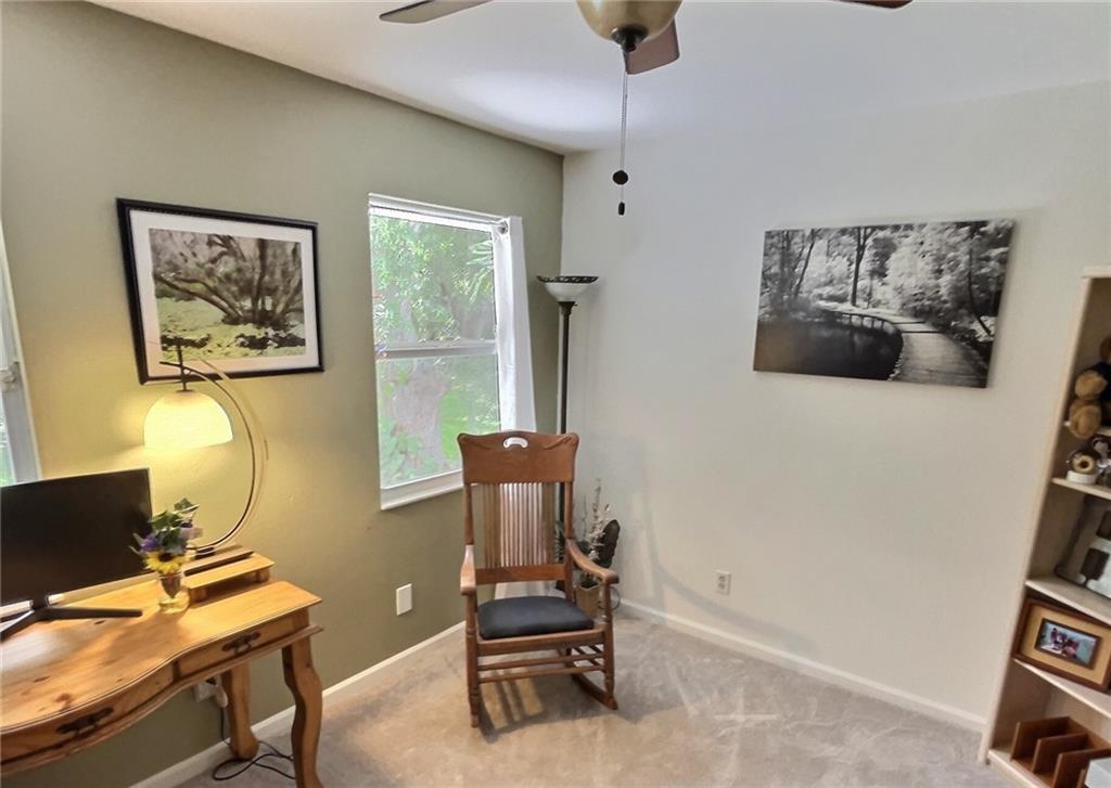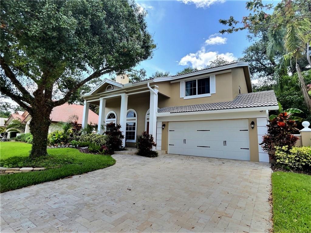 Spacious model home on the RIDGE with tons of upgrades, private wooded backyard, & comfy living spaces. Upgrades include fireplace, sunroom, hurricane windows and doors, vaulted ceilings, granite, heated jet tub, built-in wine fridge, stainless steel appliances, loft/office easily converted to 4th bedroom, mirrored panels, garage with built-in cabinets, natural stone driveway pavers, new AC & water heater, and crown modeling. Community includes miles of wooded trails, lake access, and automatic membership in golf/country club, large community pool, fitness room, playground, tennis, basketball, pickleball, and restaurants. 1 mile to shopping and highways. Great schools. Newly painted exterior. Mature oaks and a private backyard on Pine Island Ridge set this gorgeous home as a rare find!
