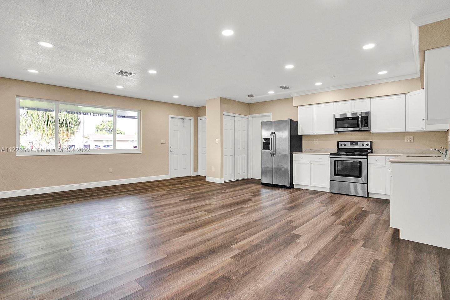 Remodeled 2/2 with an office that could be a bedroom is ready to move in! Addition not reflected in tax rolls total sqft is 1650. Property is on a large lot (10,000+ sq. ft.) and features new vinyl flooring, new a/c, updated kitchen with stainless steel appliances, hurricane impact windows, redone vanities in baths, huge patio, one-car garage and so much more. Make this your home today!