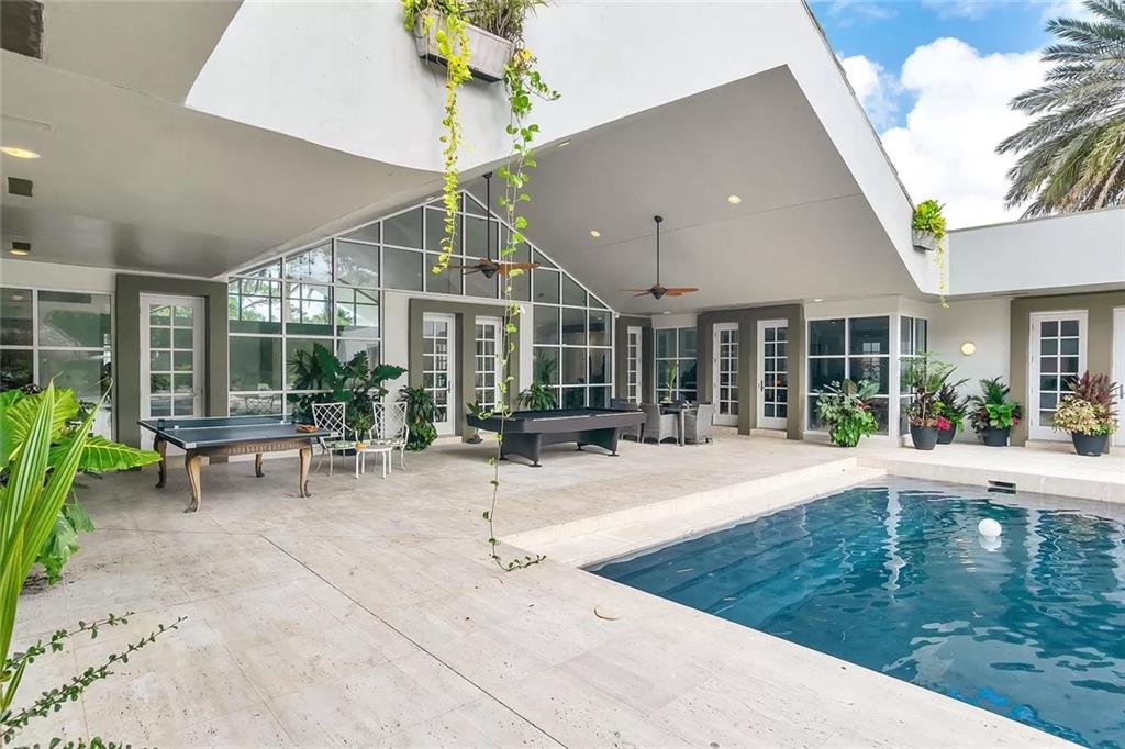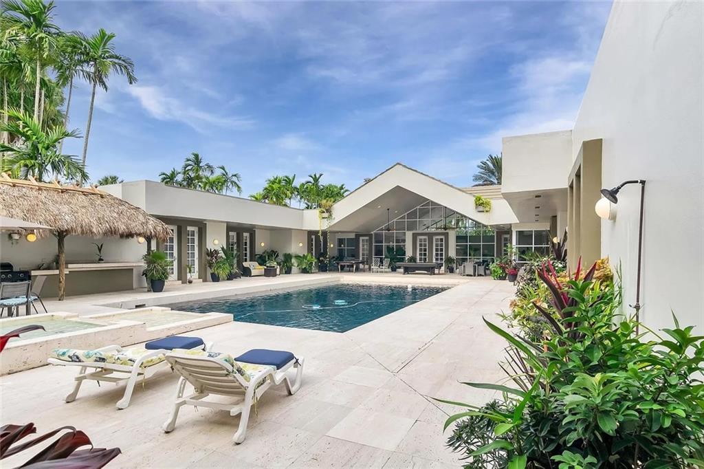 Enclave Island Paradise ... Exclusive Breakers West Island gated community of seven luxury estates. An island with beautiful natural foliage, a manicured golf courses.. Modern design, dark bottom heated pool in lush jungle surroundings. Entertainer's dream, outdoor living with pool table and multiple ceiling fan. One-story Custom-built surrounding the outdoor pool living area. Master is unbelievable in size, bath with sunken jacuzzi tub, enormous closet, secluded glass sitting room and gym. Extra high ceiling, over height doors, windows open as doors, new flat roof. Five oversized bedrooms with shower and bidet, direct access to pool area. Gym, sauna, and big party shower. Four car Garage behind gated entrance.