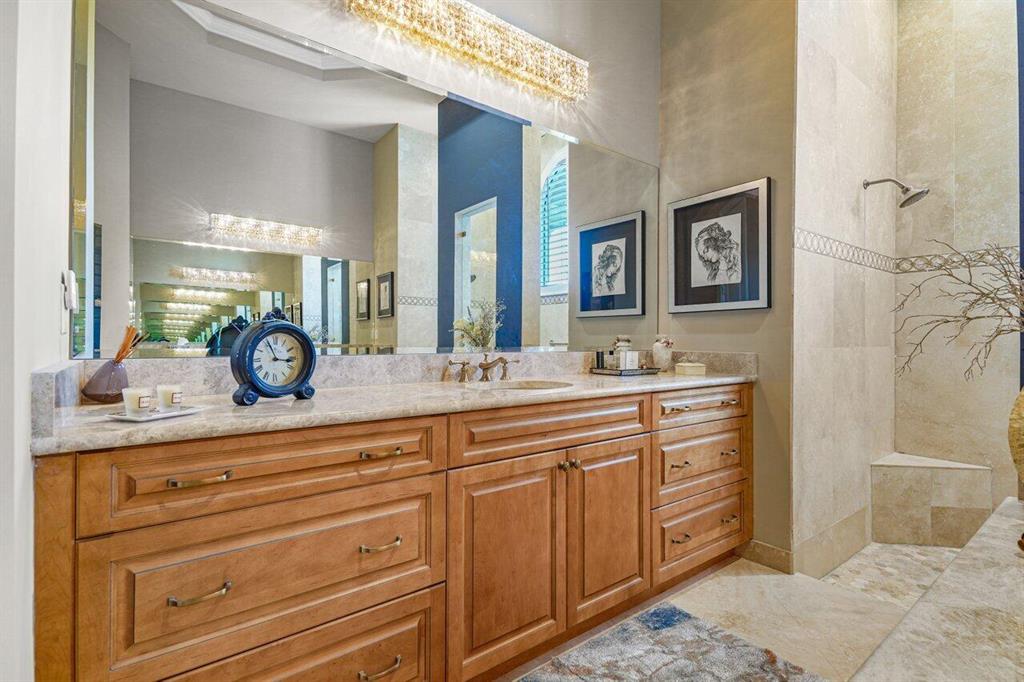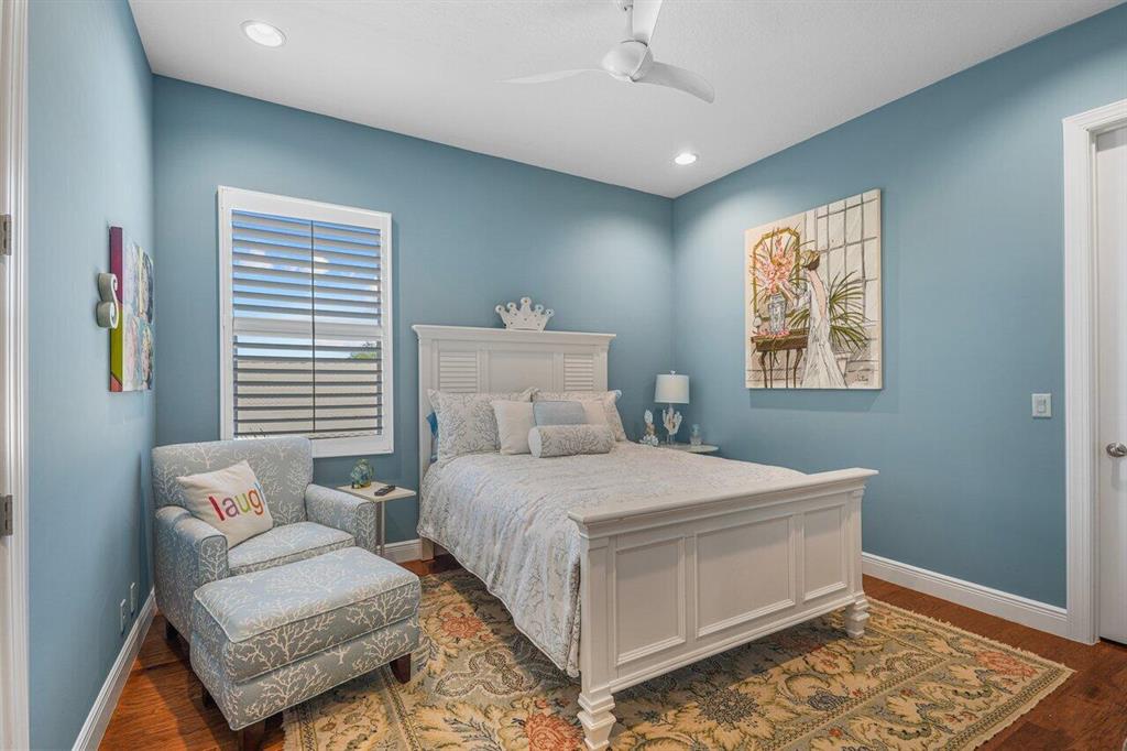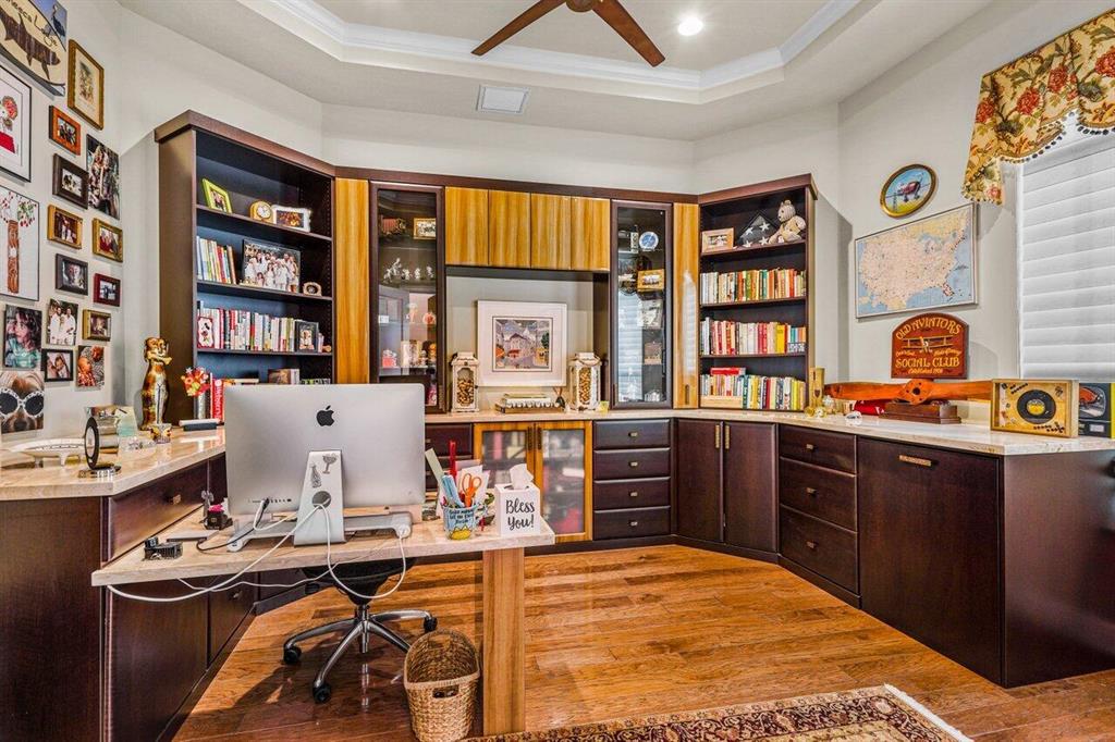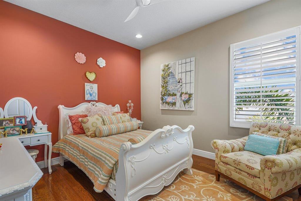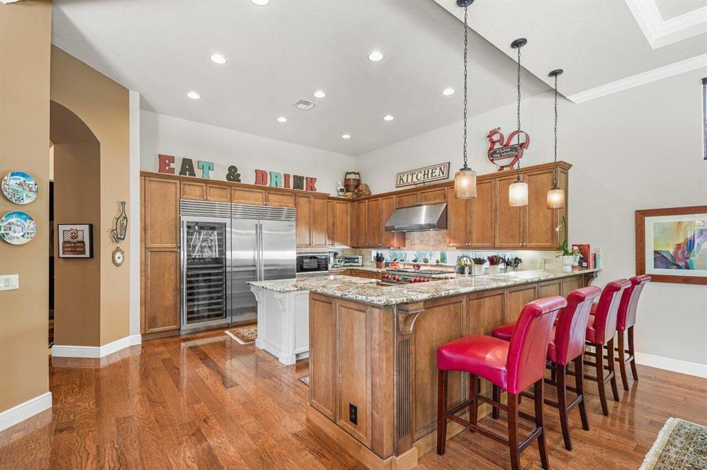 Meticulously maintained home offering 6 bedrooms, 4.2 bathrooms, office, loft, movie room and more! 6 years new with over $300,000 in upgrades including Hammered Hickory wood floors throughout, top of the line kitchen appliances, custom built-in wine storage, Closet Factory custom built in closets, outdoor kitchen, custom pool, whole house generator and air conditioned garage. Master bedroom on first floor with sitting area and spa bathroom. En-suite bedroom, office and additional powder room also on the first floor. 4 bedrooms, 2 and a half baths, loft and movie room occupy the second floor. Corner lot with ample parking and walking distance to clubhouse and pool. Dining room Chandelier does not convey.