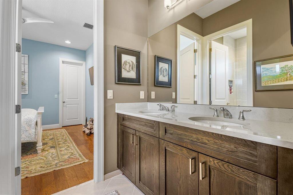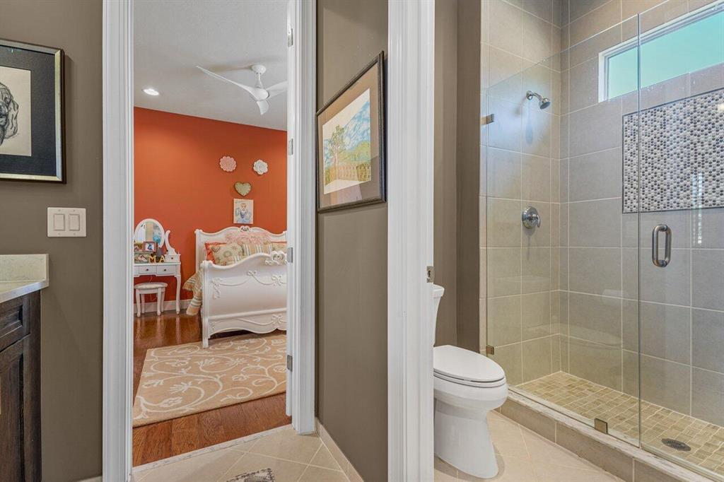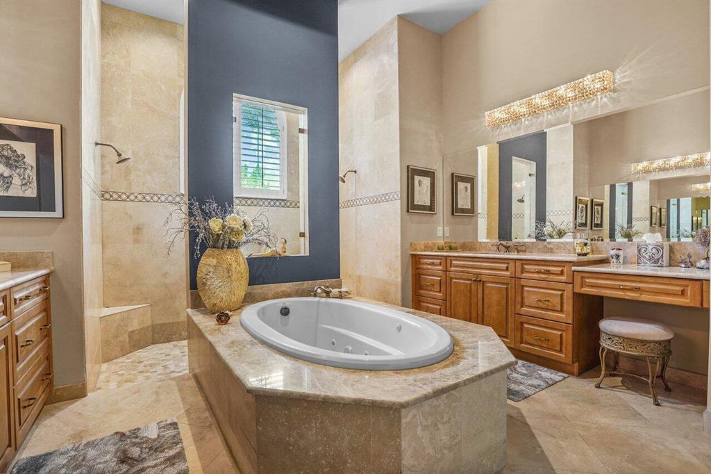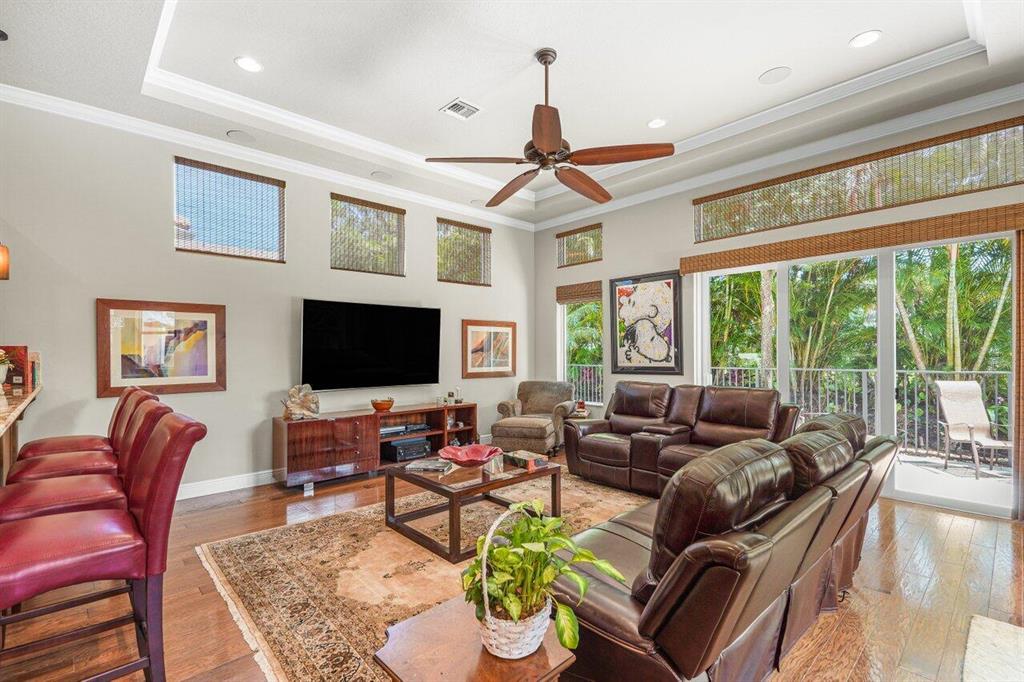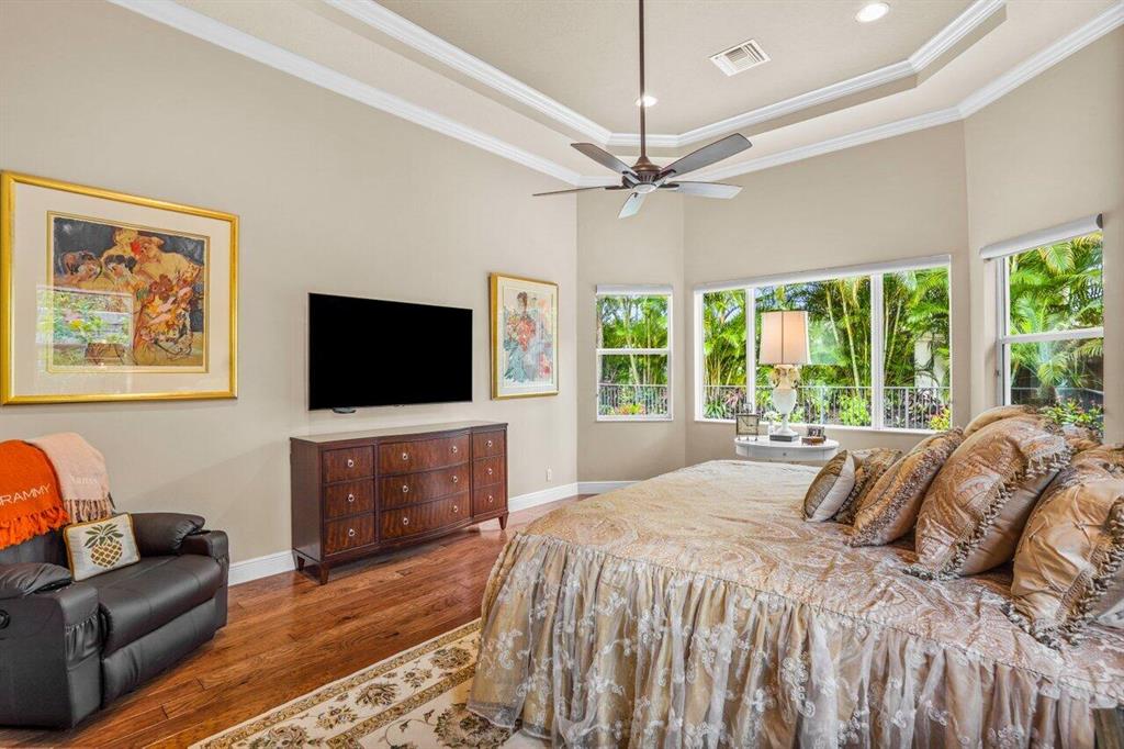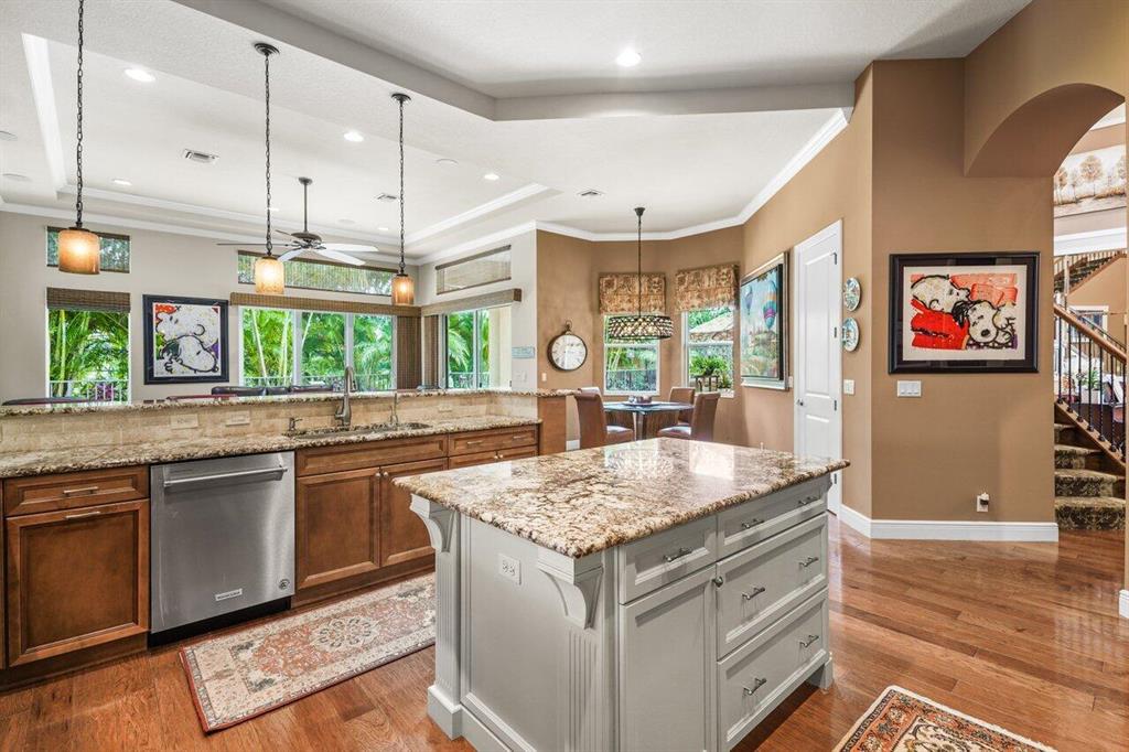 Meticulously maintained home offering 6 bedrooms, 4.2 bathrooms, office, loft, movie room and more! 6 years new with over $300,000 in upgrades including Hammered Hickory wood floors throughout, top of the line kitchen appliances, custom built-in wine storage, Closet Factory custom built in closets, outdoor kitchen, custom pool, whole house generator and air conditioned garage. Master bedroom on first floor with sitting area and spa bathroom. En-suite bedroom, office and additional powder room also on the first floor. 4 bedrooms, 2 and a half baths, loft and movie room occupy the second floor. Corner lot with ample parking and walking distance to clubhouse and pool. Dining room Chandelier does not convey.