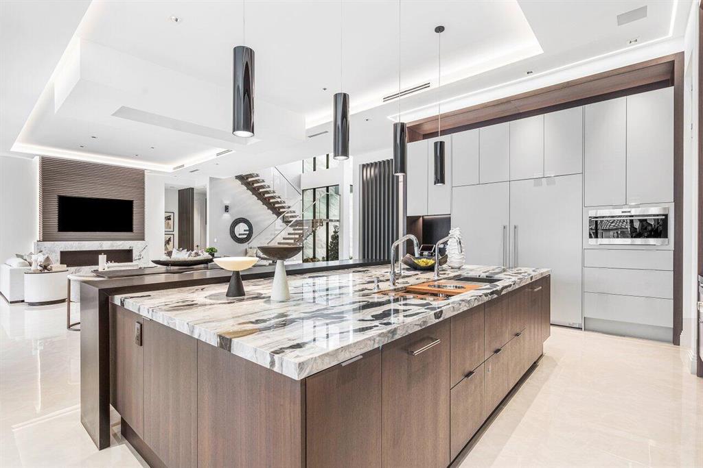 Brand new construction, completed in April of 2023 and nestled in one of South Florida's most prestigious waterfront communities, Sun & Surf--749 Bamboo Drive is a custom contemporary masterpiece that captivates you with its elegant simplicity and its modern design. The thoughtful layout includes 7,502 square feet of interior living space, with six bedrooms and eight bathrooms. The open, two-story layout flows with clean lines and an array of unique finishes and details. Premium, modern kitchen features Sub-Zero 72'' wide refrigerator, six burner Wolf gas range, dual Wolf wall ovens, a Ruvati 57'' two-tiered workstation, and a large walk-in pantry with second refrigerator.