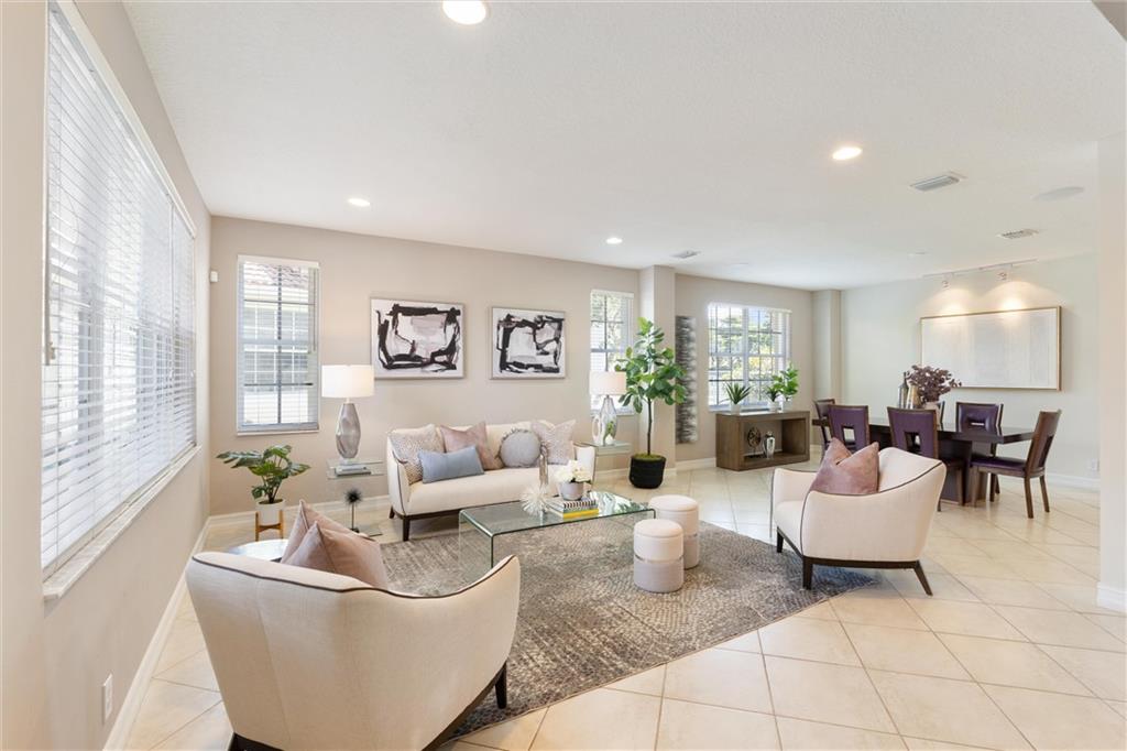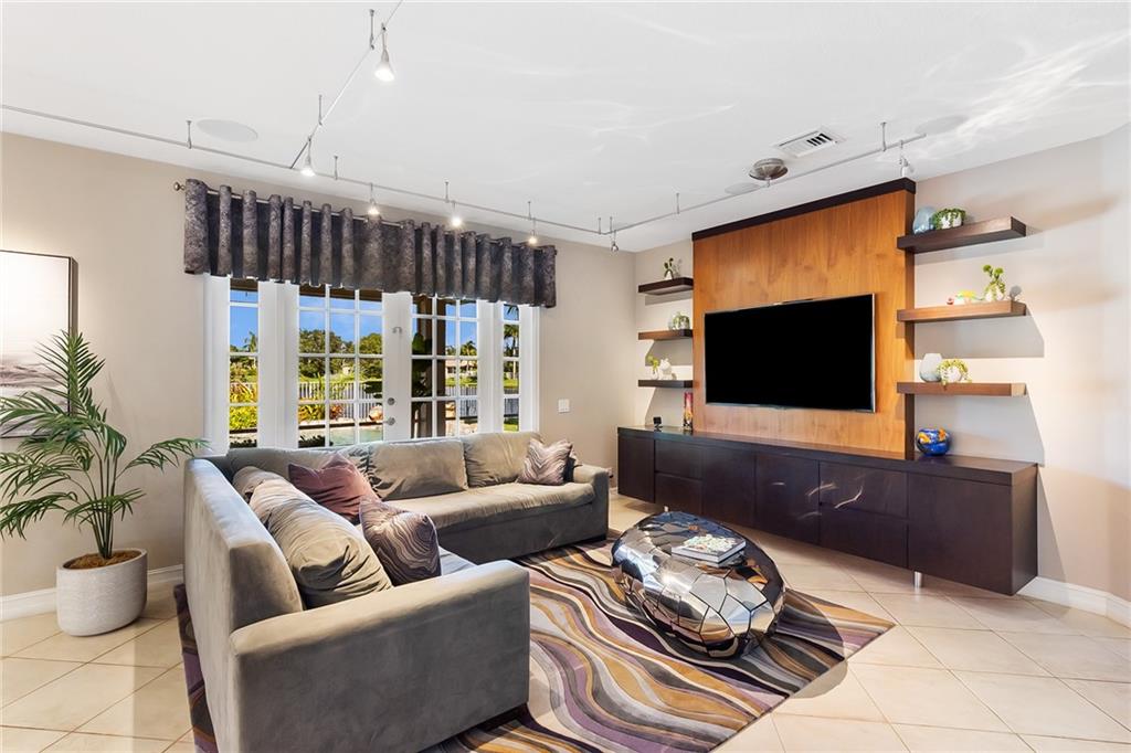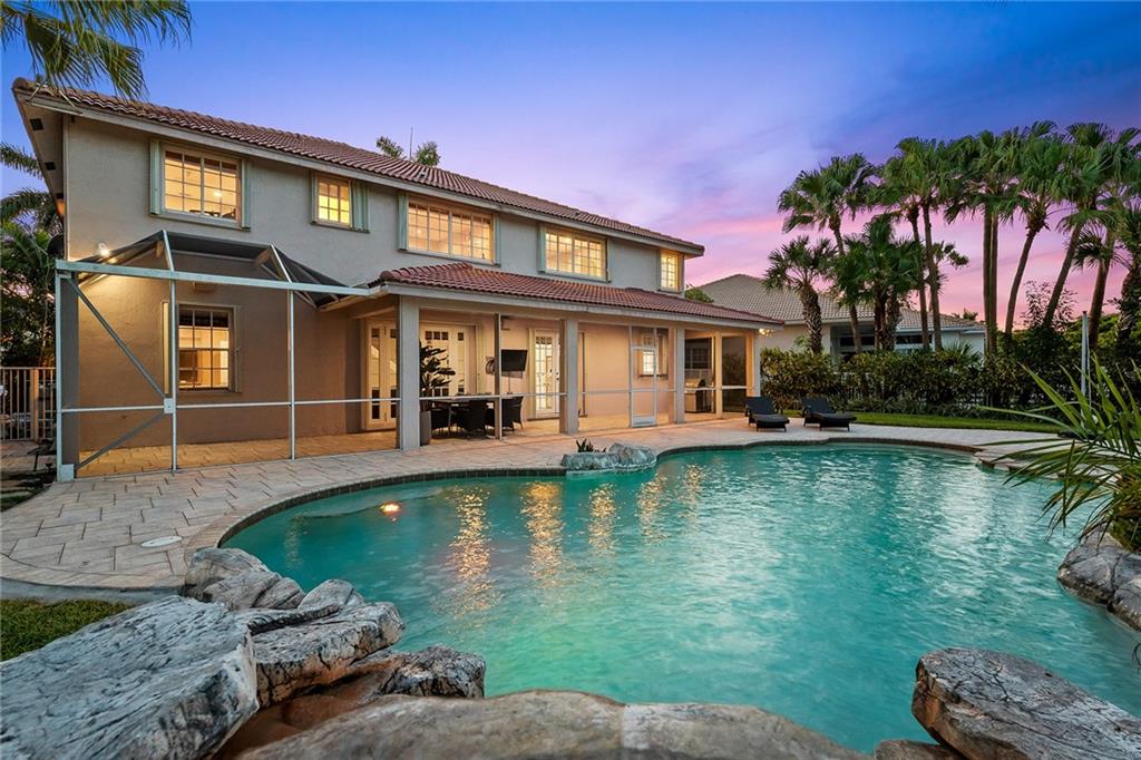 Permanent Vacation! Easy Living Lifestyle. Royal Palms and manicured common area landscaped the minute you exit the highway to your front door. Miles of sidewalks lead to pickle ball, basketball, golf and tennis. This home is situated on a serene and lovely completely fenced, wide lake waterfront lot overlooking manicured mature tree-line berm. Every room in this 4013 sqft home (6bd den 4bth 3car) is large and spacious. Thoughtfully arranged for the entire family to take advantage of living together and also having your own space. New contemporary stair rails and wood floors lead up stairs and through 2nd floor. Built-in TV Entertainment, desks, and walk in closets added throughout the home for optimal organization. New AC(2), wtr htr, & filtration. Just move in and enjoy the view.