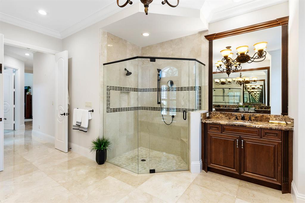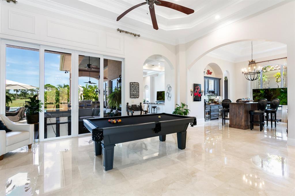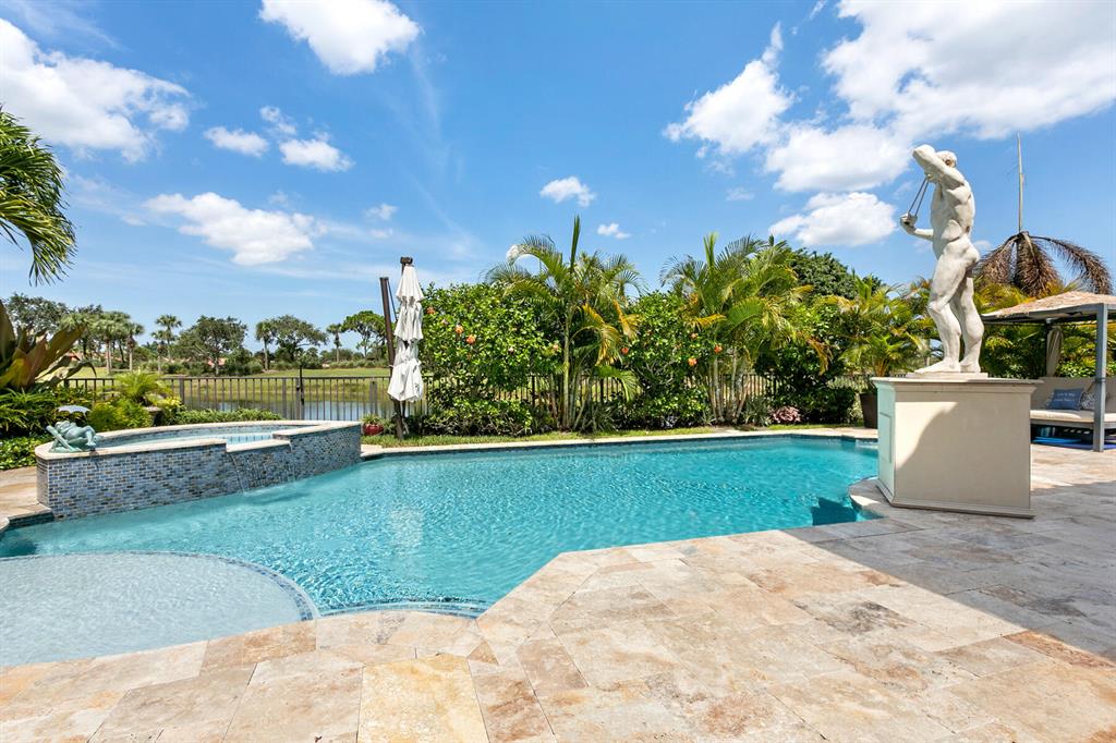 This SPECTACULAR home with BREATHTAKING views can be your own private TROPICAL oasis. Impeccably maintained and so much to fall in love with! Stunning marble floors, soaring ceilings, exquisite woodwork and architectural details throughout. A newly designed kitchen at the heart of it all features a massive quartzite island, new appliances, custom range hood, smoked glass backsplash, and adjoining beverage center. 4 BR PLUS 2 additional rooms suitable for office, den or media purposes. In this lovely home, you'll experience a cohesive marriage of luxurious sophistication and fun. Perfect for entertaining both inside and out! Outdoor kitchen, bar, fireplace, and numerous pool updates in 2019 include resurfacing, lighting, saltwater system, heater - all controlled with an app from your phone