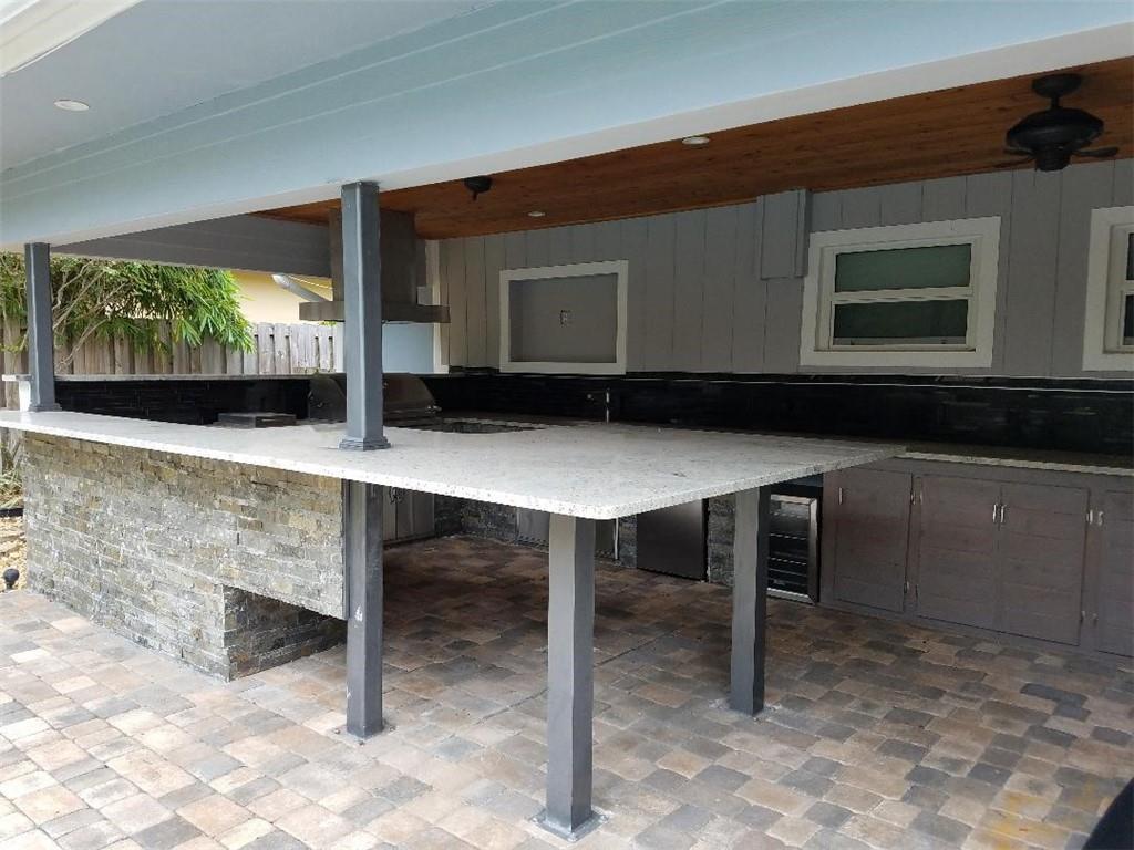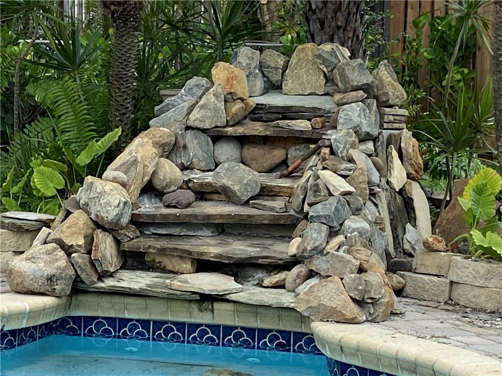 Beautiful tropical oasis minutes from the beach awaits a new owner, large corner lot home has been completely remodeled with impact windows, kitchen remodeled in 2020 w new appliances quartz countertops, stainless steel appliances, porcelain tile floor in kitchen and dining room, 3 bed/2 baths, enjoy your saltwater pool overlooking your waterfall while entertaining with your very large summer kitchen which features Granite countertops, cedar-covered ceiling, Travertine outdoor firepit, and large bench seating area natural gas run to grill and external burner, stainless steel sink, Wood floors throughout except bathrooms and kitchen tankless gas water heater, no homeowner association Upgraded plumbing and electric in bathrooms and kitchen, underground electric one of the few in the area