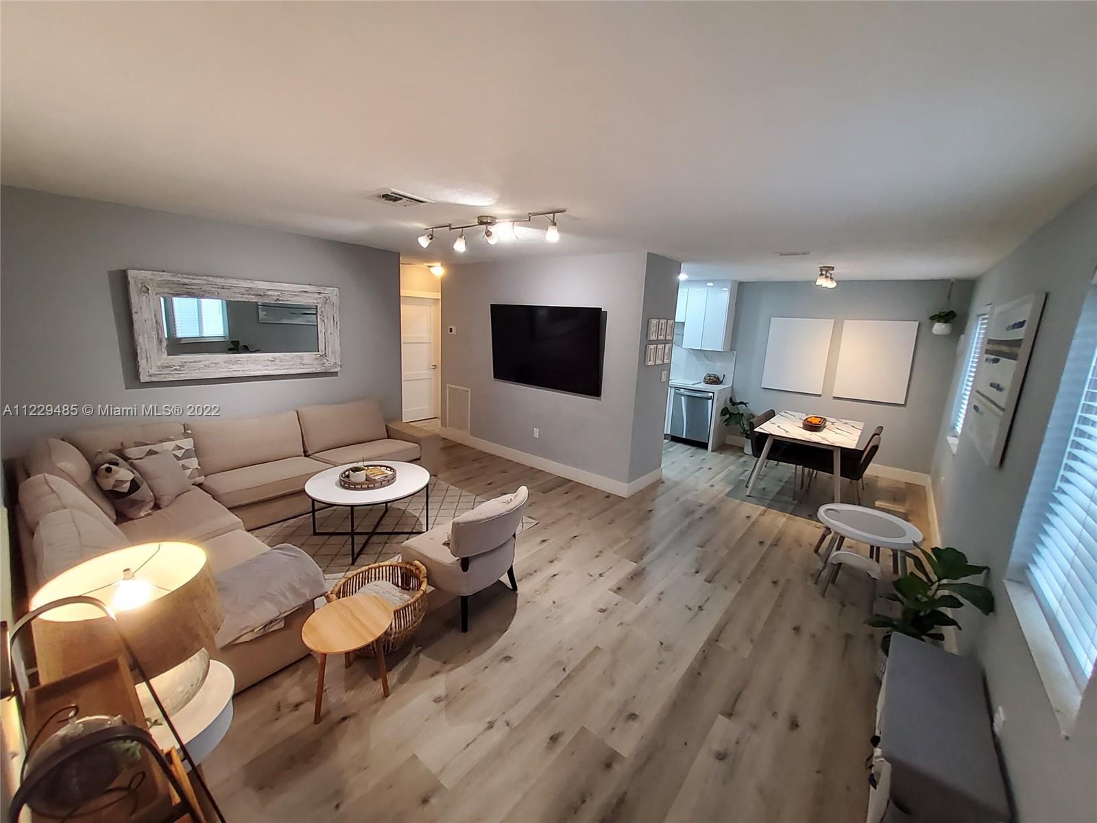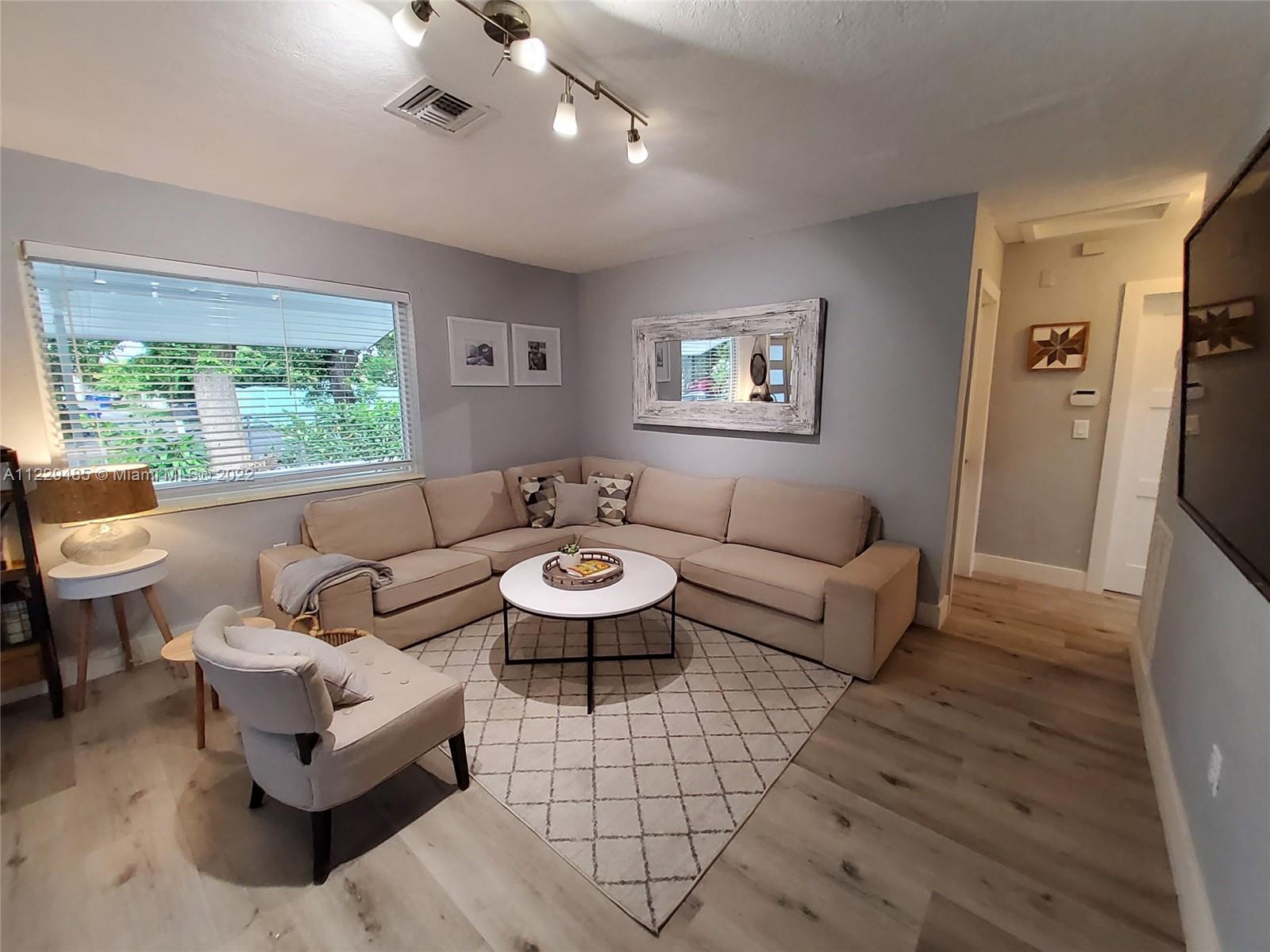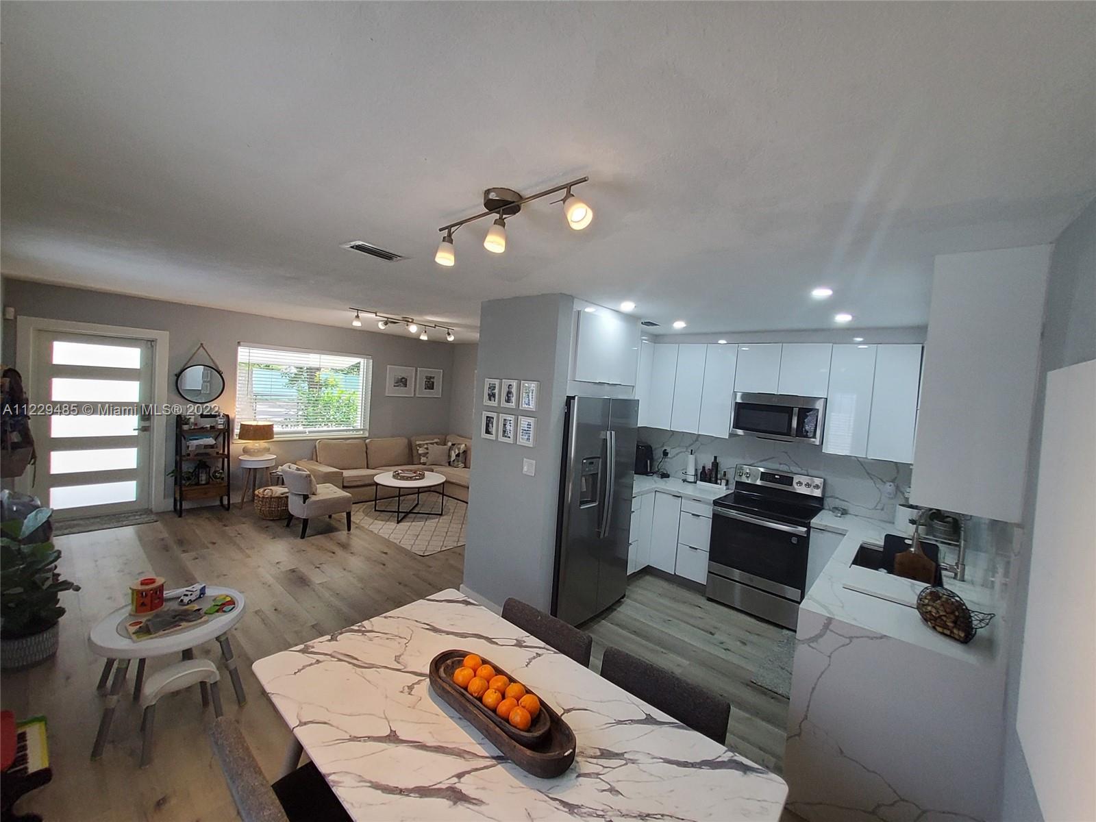 OPPORTUNITY! Newly remodeled home converted to 3/2 (2/1) plus independent 1/1 that can be added to the main house if needed. The home has been substantially renovated by the owner Architect. Includes new roof, impact windows, water heater, A/C unit - all under warranty. Renovations include open kitchen with new appliances, new flooring throughout, New bathroom (very modern), front porch and laundry outside Access in back, and big concrete driveway. Just west of US1 & easy access to I-95, beaches, casino, dog track, and more. NOTE: SQ FT is larger than what is noted in tax records. POTENTIAL to add a pergola in the back yard, and a laundry room or extra square footage in rear of house.