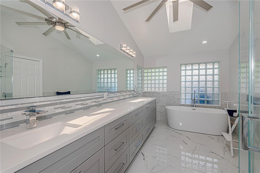 Welcome to your new spacious home in Parkside, a highly sought-after community of friendly people and Grade A schools; new Addison Mizner K-8 and Boca High. All bathrooms completely remodeled 2021 with gorgeous porcelain floors. Master with soaker tub, double vanities, frameless glass and beautiful backsplash with neutral colors. Cabana door to pool. Huge eat-in kitchen with double oven and SS appliances opens to large family room. Kitchen has pantry with pull out shelves and tons of cabinets. Lg patio with pool and back yard for entertaining. Great landscaping for privacy. Lg 4 bedrooms with bonus room for extra play area off the family room or private office. Skylights create bright natural light. Master bedroom with dual walk-in closets with custom built-ins.