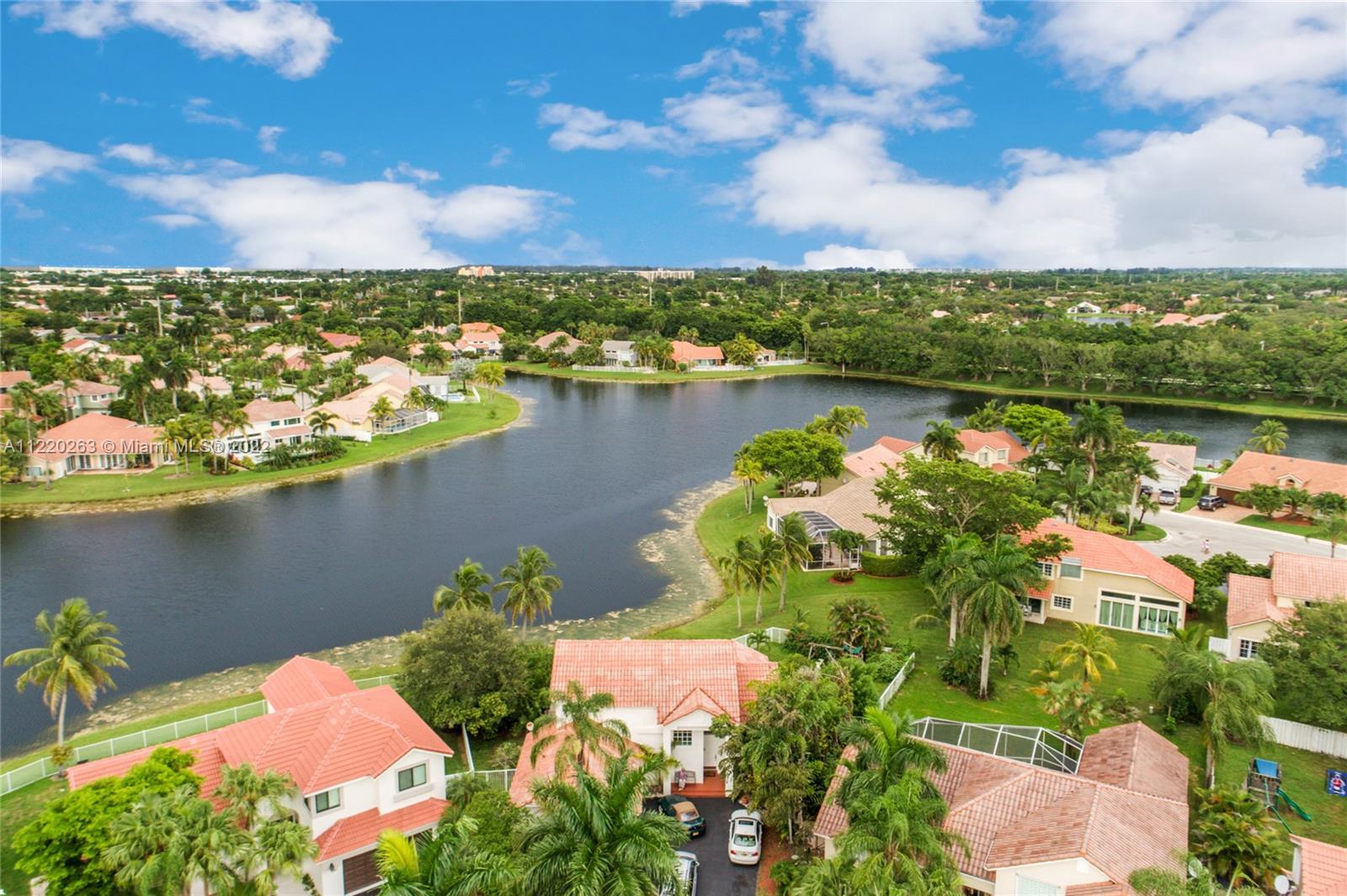 Welcome to Laguna Springs in Weston, gated community offering a 3 bedrooms 2 bathrooms lakefront home, featuring two bedrooms downstairs and a large master bedroom upstairs with sitting area, walk-in closet, and a balcony overlooking the pool and breath taking views of the lake. Enjoy water views from everywhere in the house, premium oversized lot with extended paved driveway than can park up to 6 cars, saltwater pool was redone one year ago, A/C replace May of 2017. Clubhouse, community pool and playground, Low HOA fees, conveniently located close to the town center. Excellent schools make this a great family home in a city designed for family living. Easy access to all major highways!