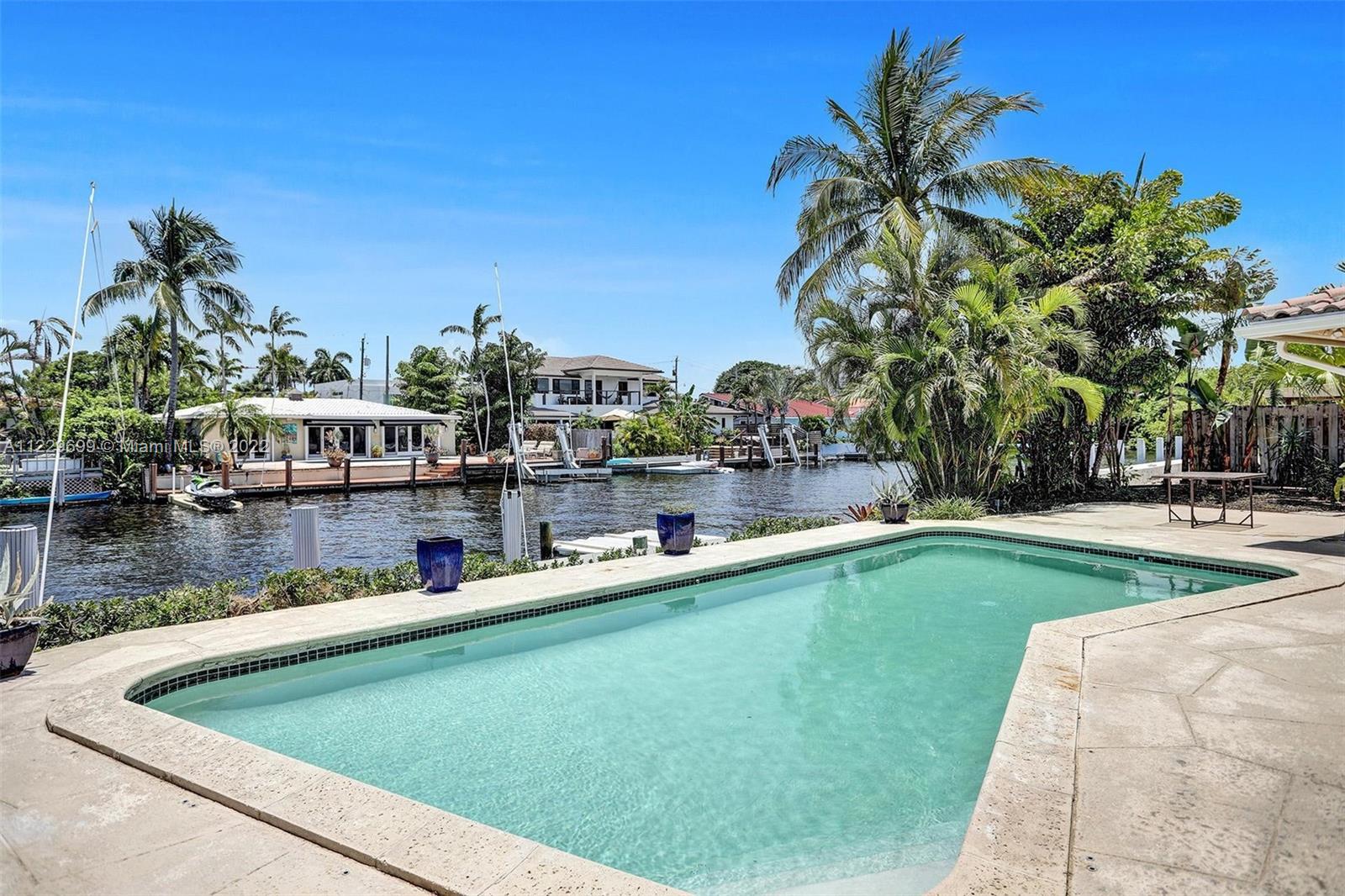 PRICE ADJUSTMENT. Absolutely gorgeous waterfront 3/2 house with 105 feet of Ocean Access in East Fort Lauderdale, Bal Harbour. Welcome to Bal Harbour a quiet, gated community. The bright & open concept floorplan features a wall of impact sliders, blending the indoor space with the outdoor terrace and amazing pool and Intracoastal views. Custom pool, panoramic water views & prevailing SE tropical breezes! Chefs Kitchen serving island offers plenty of counter space for the perfect cooking and entertainment with pool and water views. Secure dockage. High bridge for boats to 40'+ Kayak & Paddleboard. Short drive to the area's best beaches or downtown Las Olas. Within minutes to the beach, Whole Foods, Shoppes, and fine dining.