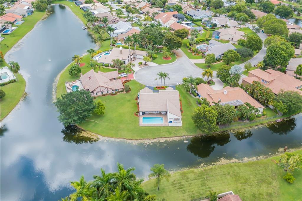 One of a kind 5-bed/2.5 bath waterfront/pool home in prestigious Glen Isle located in cul-de-sac of only 3 homes. Sits on an oversized waterfront point lot over 15,000 sq. ft. with southwest exposure. Bright and airy, cathedral ceilings with LED lighting. Custom kitchen has quartz countertops, upgraded cabinets & hardware, under cabinet lighting. Stainless steel upgraded appliances. Split plan offers 4 bed 2.5 bath on main level, includes large master suite w/water views, walk-in closets. Master bath w/separate cabana bath for easy pool access. From family room spiral staircase leads to large 5th room which can be used as office, den, bedroom or game room. Circular driveway & large 2 car garage w/room for storage. Attic w/ storage space. Split AC system. Accordion shutters. No Assoc fees.