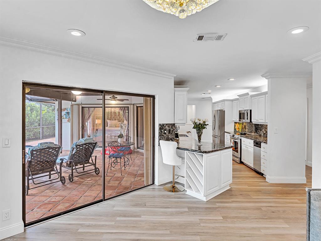 This 3 bed/2 bath single family with no neighbors in front, situated with a view of the park, is located in ''Paseos'', a sought after and highly-desirable gated community in the heart of Boca Raton, Florida. This home has been recently renovated. New flooring throughout the entire house. The large main bedroom with walk in closet, comes with a remodeled en suite bathroom that features a large and luxurious marble walk in shower. Lots of natural light, with a bright & open living area. Custom chandelier lighting and crown molding throughout. Spacious kitchen with stainless steel appliances. Separate/inside laundry room and a 2 car garage. Tranquil large pool and screened in patio. Prime location, centrally located with a great A-rated school district. Walking distance to shopping, the