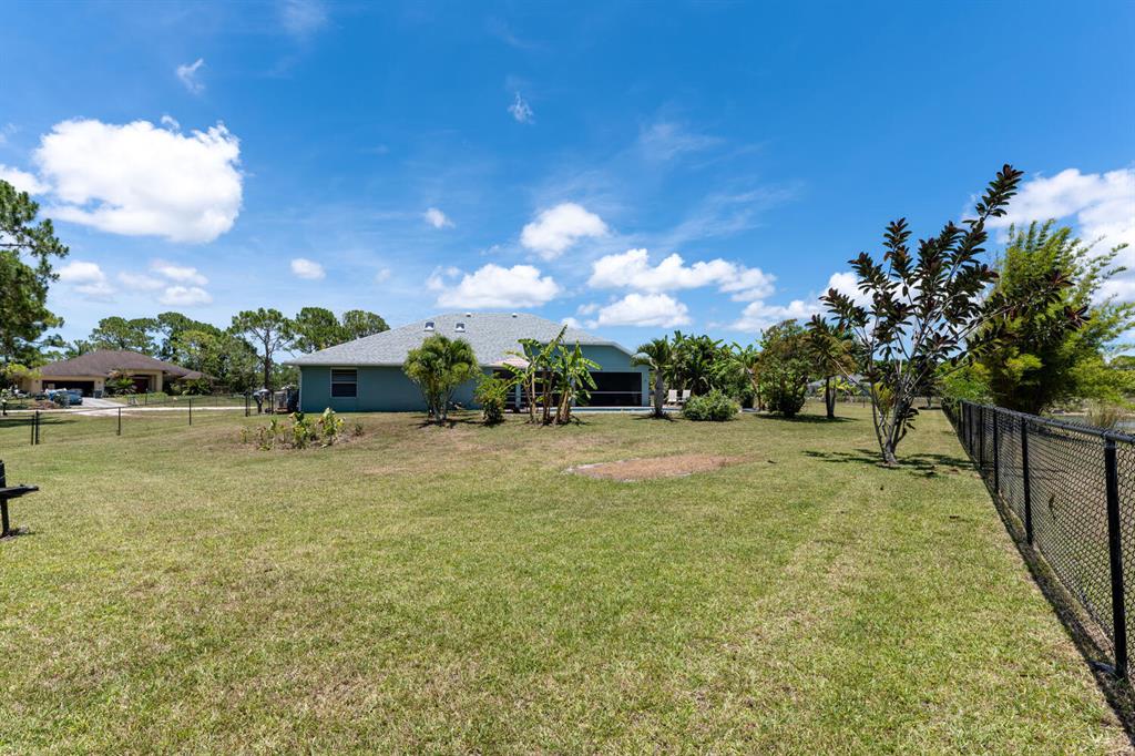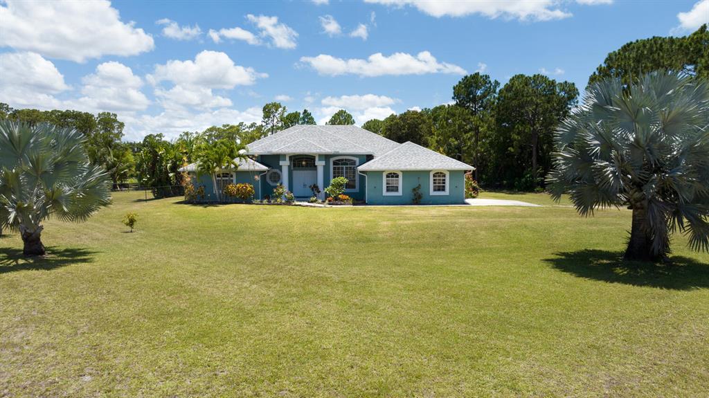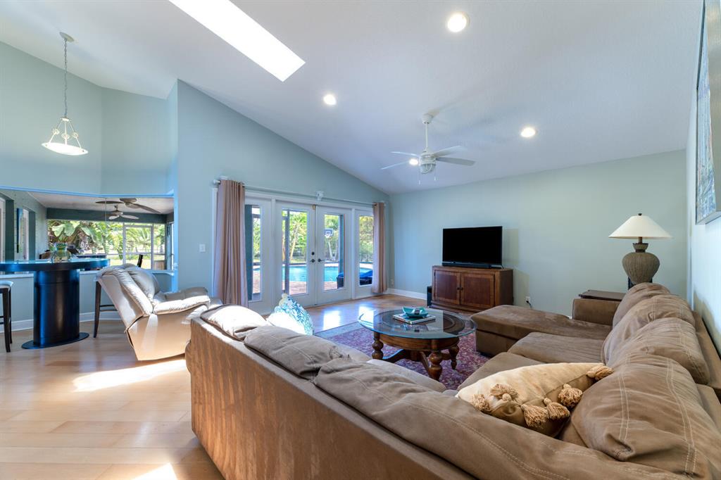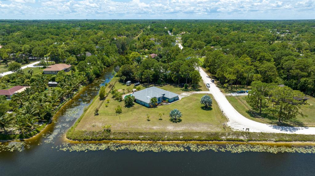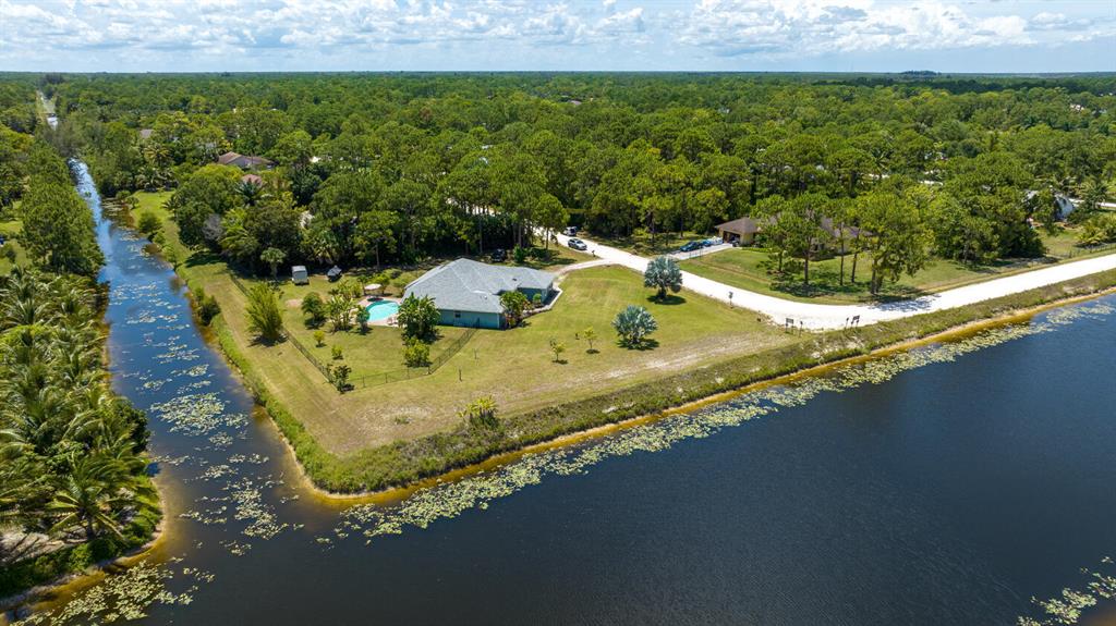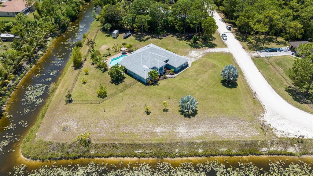 2.46 acres with water views and privacy! This 3 bedroom plus den, 2.5 bath, pool home is located on a large lot with canals on the eastern and southern portions of the property. It features a spacious open floor plan with split bedrooms and room to entertain. Enjoy your screened in back porch, overlooking your private pool, large yard, and relaxing water views! The kitchen features wood cabinets, breakfast nook, pantry, and a bar. Wood floors and high hat lighting throughout. The den can be utilized as a 4th bedroom or office. The master has french doors to patio area, a large walk-in closet, and dual sinks. Roof was replaced in 2019, exterior paint in 2020, gutters, irrigation system and pool pump within the last year. Check out this beautiful home on a unique lot before it's gone!