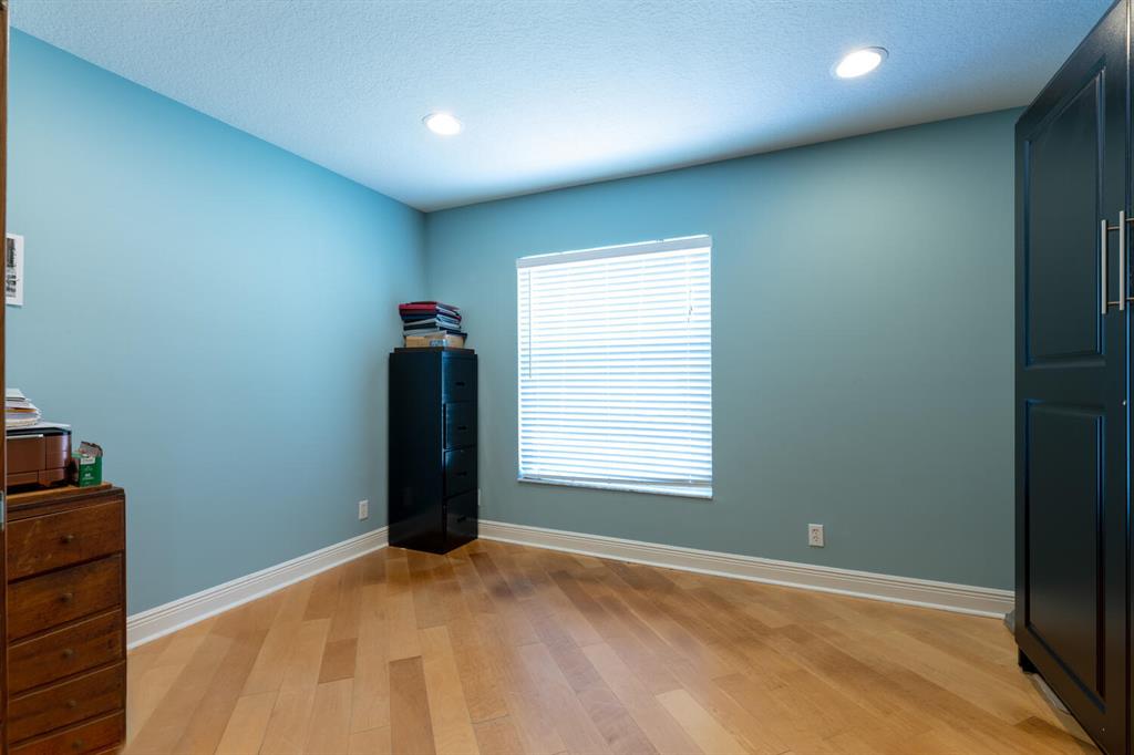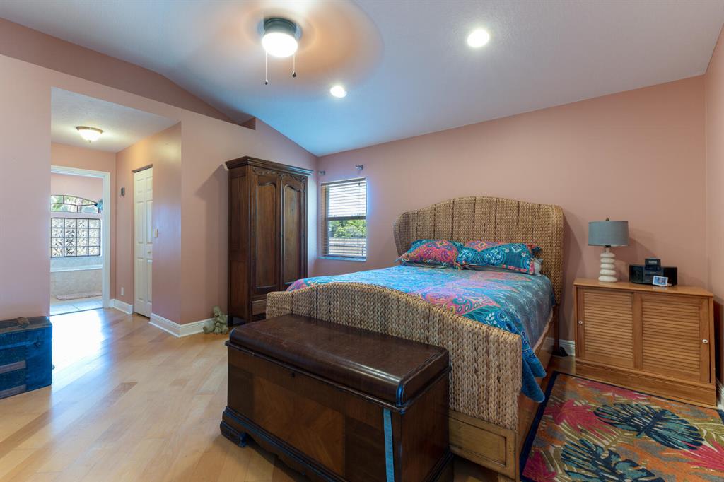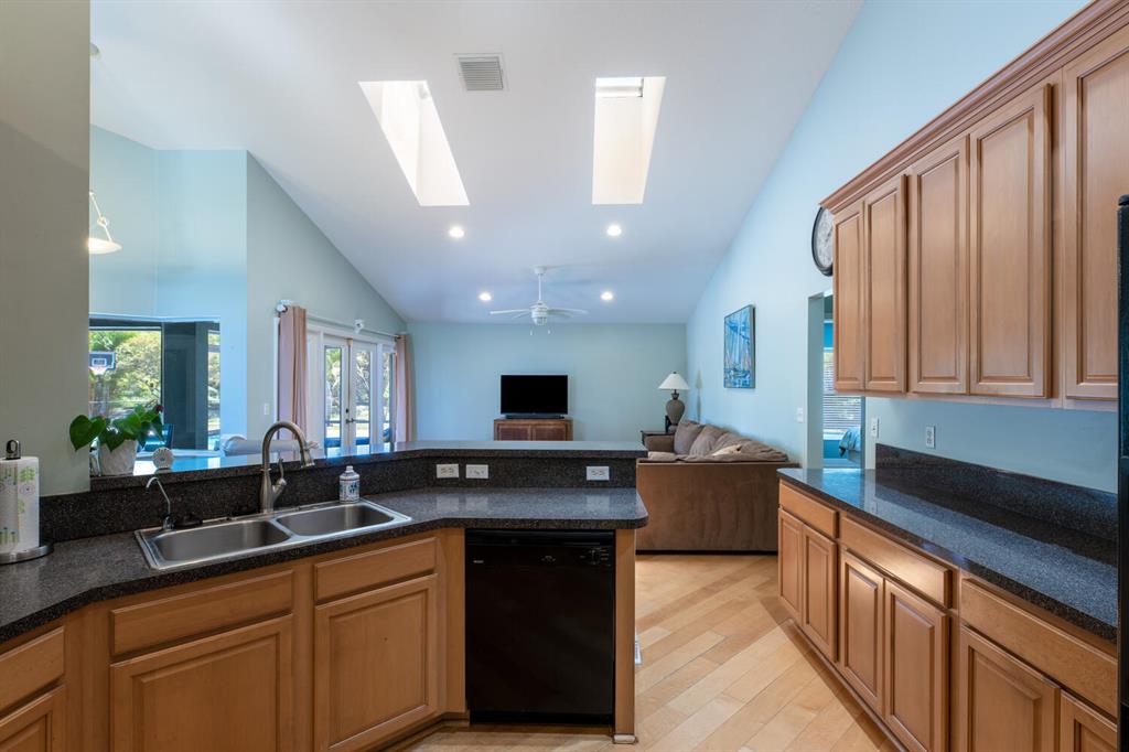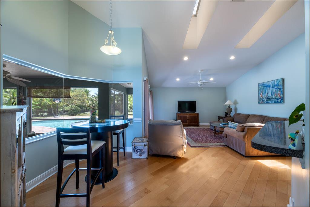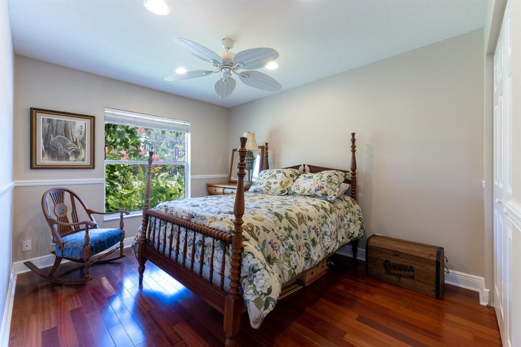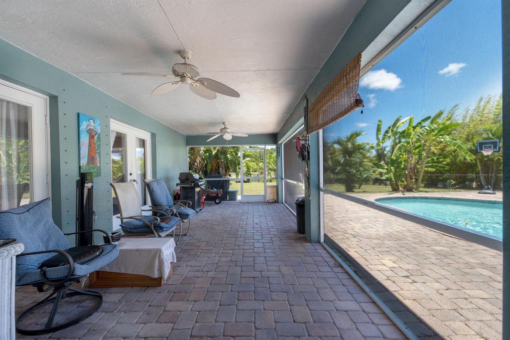 2.46 acres with water views and privacy! This 3 bedroom plus den, 2.5 bath, pool home is located on a large lot with canals on the eastern and southern portions of the property. It features a spacious open floor plan with split bedrooms and room to entertain. Enjoy your screened in back porch, overlooking your private pool, large yard, and relaxing water views! The kitchen features wood cabinets, breakfast nook, pantry, and a bar. Wood floors and high hat lighting throughout. The den can be utilized as a 4th bedroom or office. The master has french doors to patio area, a large walk-in closet, and dual sinks. Roof was replaced in 2019, exterior paint in 2020, gutters, irrigation system and pool pump within the last year. Check out this beautiful home on a unique lot before it's gone!