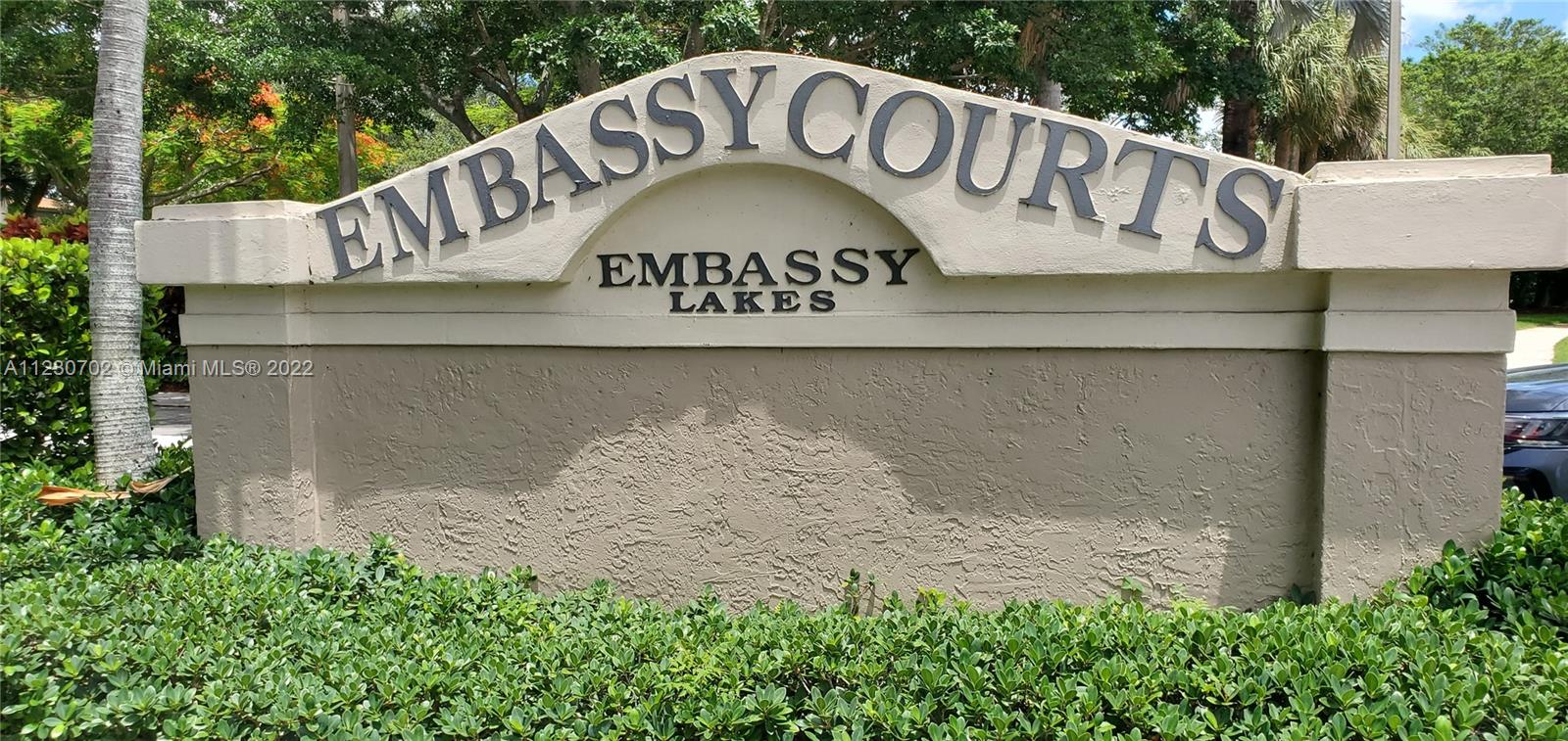LOOK NO FURTHER! FULL PROFESSIONAL REPLACEMENT OF THE POLYBUTYLENE PIPES (UPDATED PLUMBING IN THE ENTIRE HOUSE) HAS BEEN COMPLETED AND READY TO FINANCE WITH NO INSURANCE ISSUES...This 3 bedroom 2.5 bathroom corner unit townhouse with a 1 car garage is located in the very sought after gated community of Embassy Courts! Spacious master bedroom, large family room with separate dining room and screened private courtyard make this townhouse great for entertaining. Accordion shutters installed for storm protection. This resort style community of Embassy Lakes features Olympic pool, tennis courts, basketball courts, playgrounds, club house, all A rated schools and is close to major highways & entertainment!