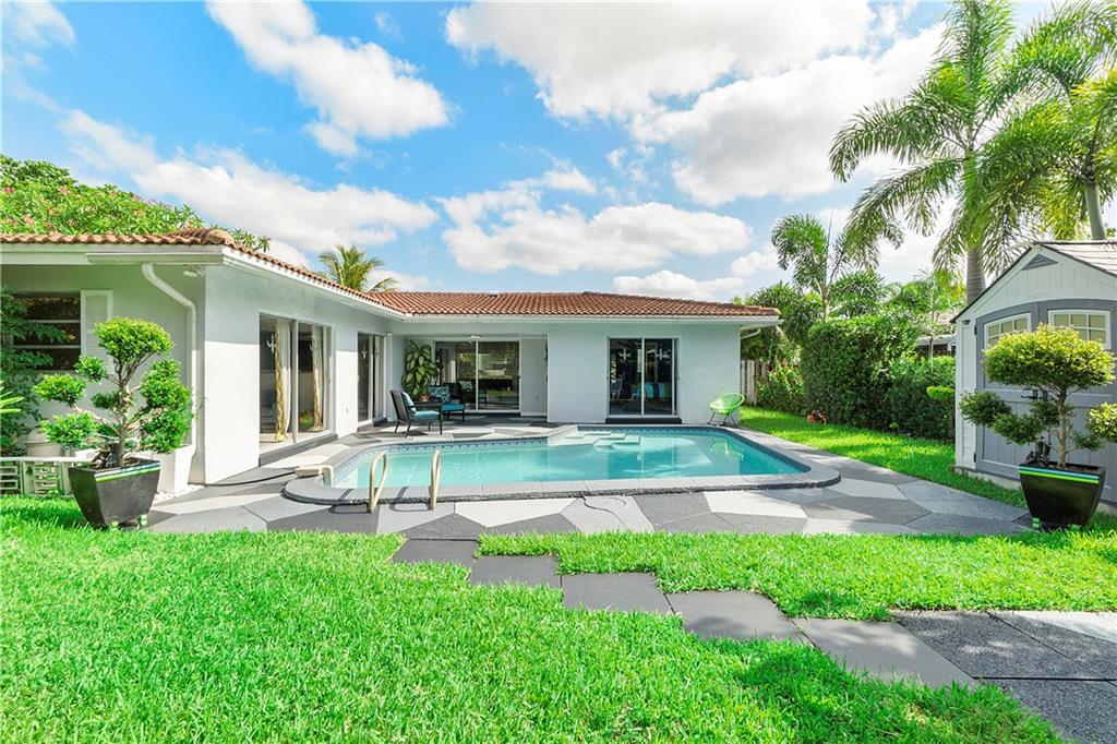 A charming 2/2 + 2-car garage with a circular driveway in the heart of Coral Ridge. Home is in pristine condition with terrazzo floors throughout. Spacious split floor plan with two master suites, each with walk-in closets and attached bathrooms. A ton of natural light throughout the home. Ideal spot for indoor/outdoor entertaining with a beautifully landscaped back yard, pool, ambient lighting and storage shed. Privacy fence on all sides, great for pets. Centrally located only 1.7 miles to Lauderdale By The Sea.