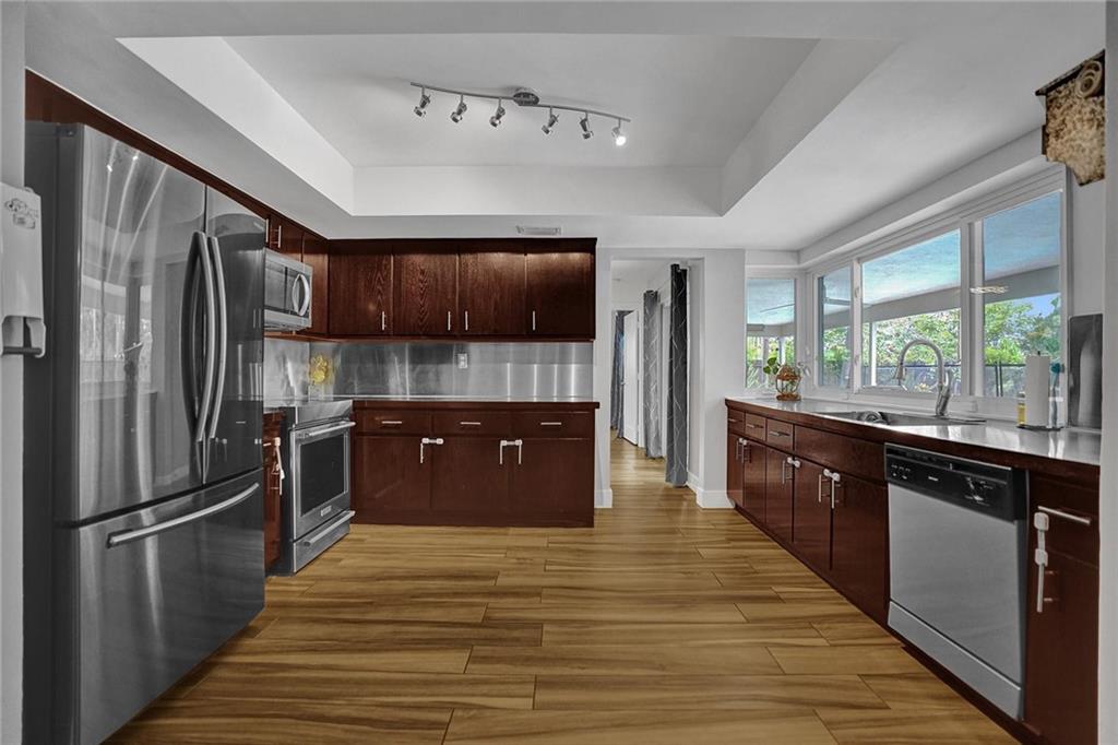 Walk to parks & schools from this family-friendly home in sought-after Plantation Park. Inside? Updated baths, impact windows, decorative fireplace, porcelain wood-look flooring, stainless appliances, stainless countertops, washer/dryer, custom shades. Outside? Lush landscaping, pool, covered patio, gazebo and shed... plenty of room for grilling, chilling, swimming and storage! See this lovely home today!