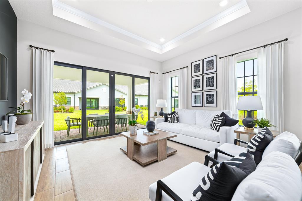 Stunning 2 bedroom 2 bathroom Villa located in The Falls at Parkland. Model Home with over 70k worth of upgrades. Bonus room that can be used as an office/den. Split floor plan with gourmet open kitchen concept with stainless steel appliances. Volume ceilings throughout with crown molding and trayed ceilings. Double vanities in both bathrooms. Tile to ceiling in both showers.Exterior features covered lanai, 2 car garage, and impact glass throughout. The falls is an active Lifestyle (55+) community. Featuring a 24,000 sq ft clubhouse w/ resort-style pool, fitness center, yoga room, cafe, pickle & bocce ball courts, theatre, card/game rooms & more.
