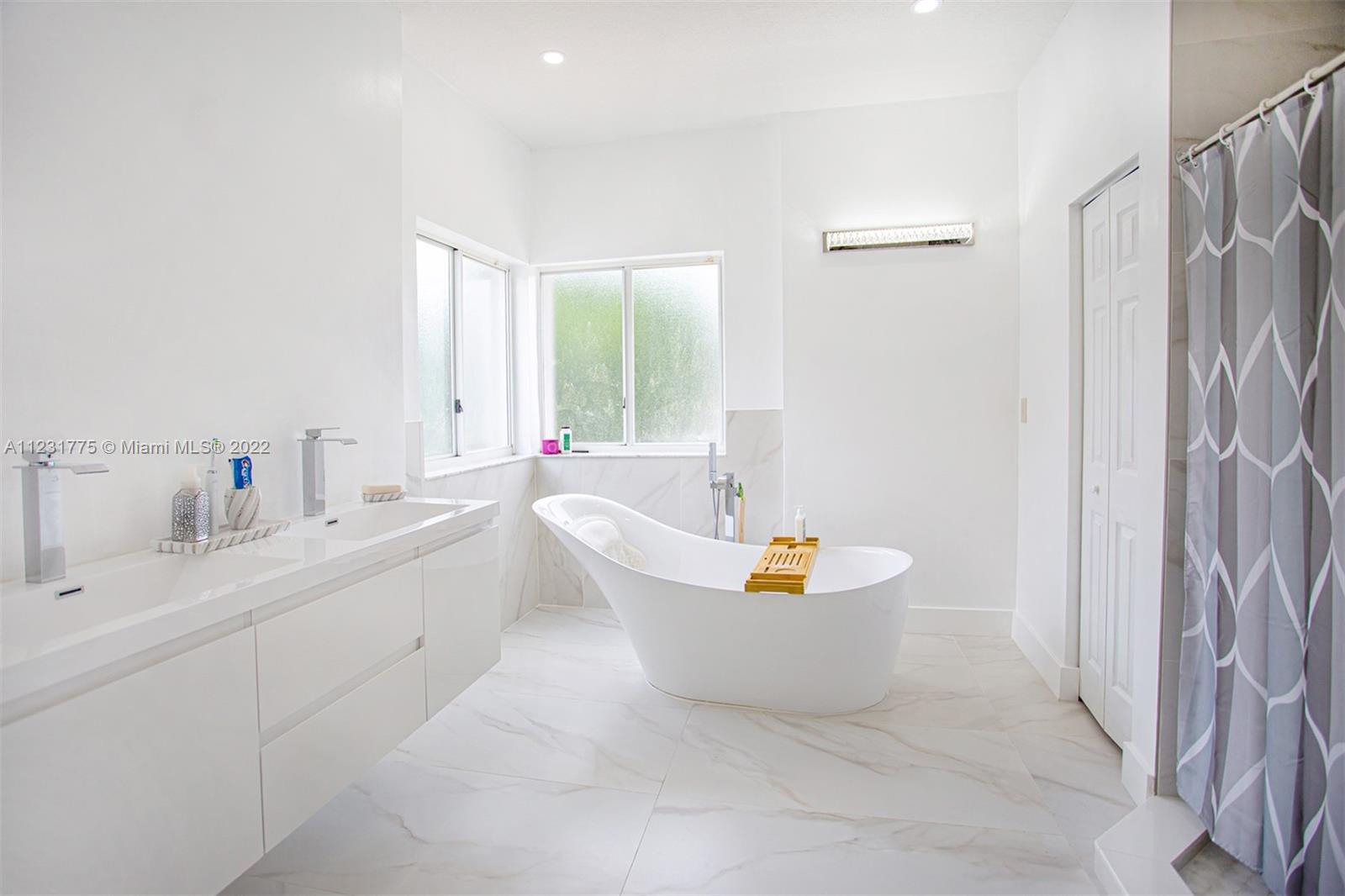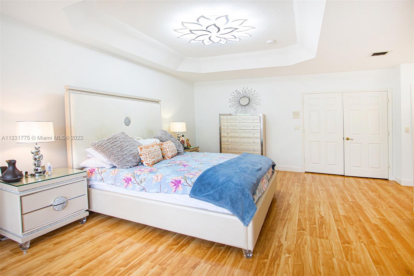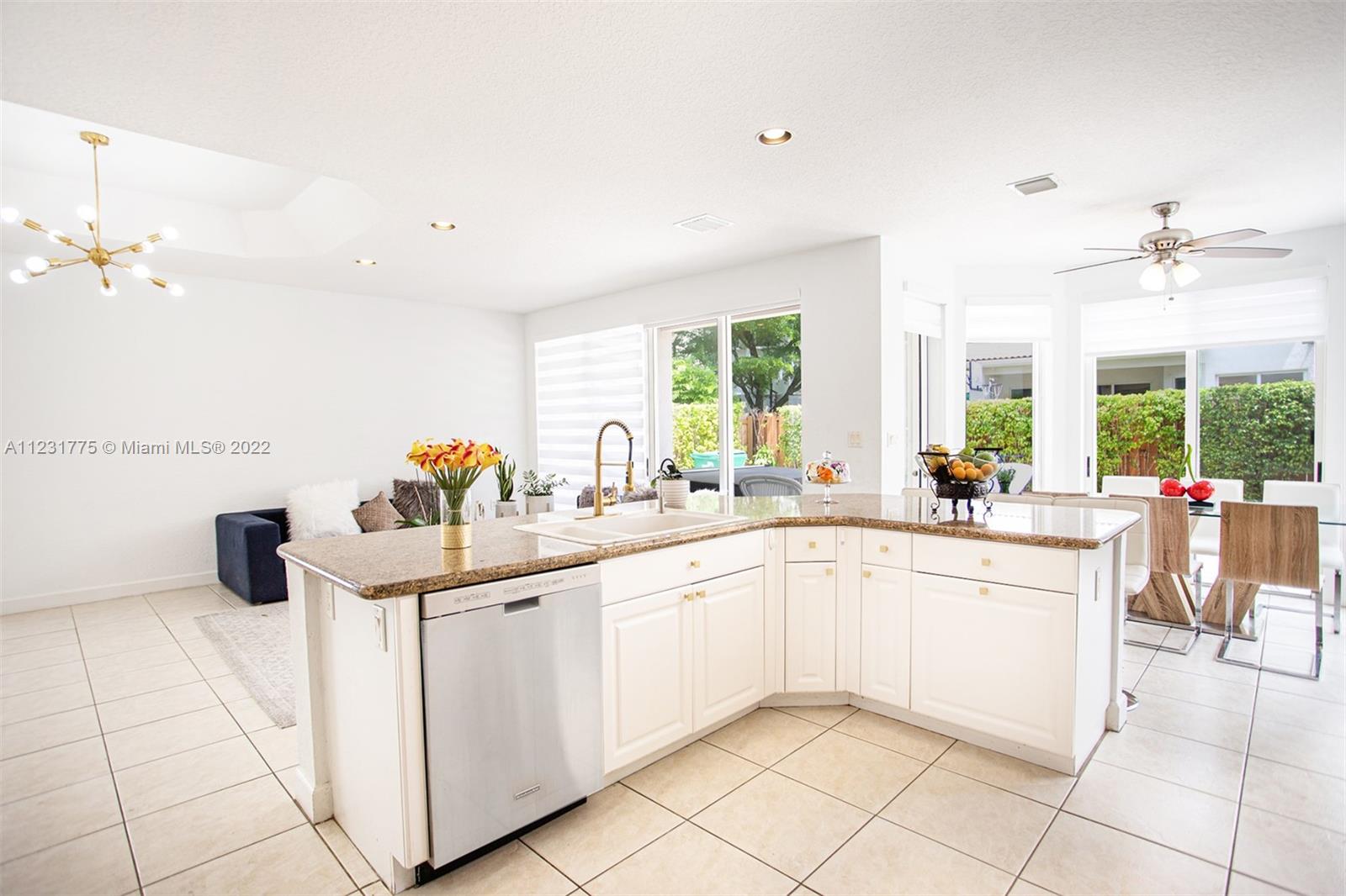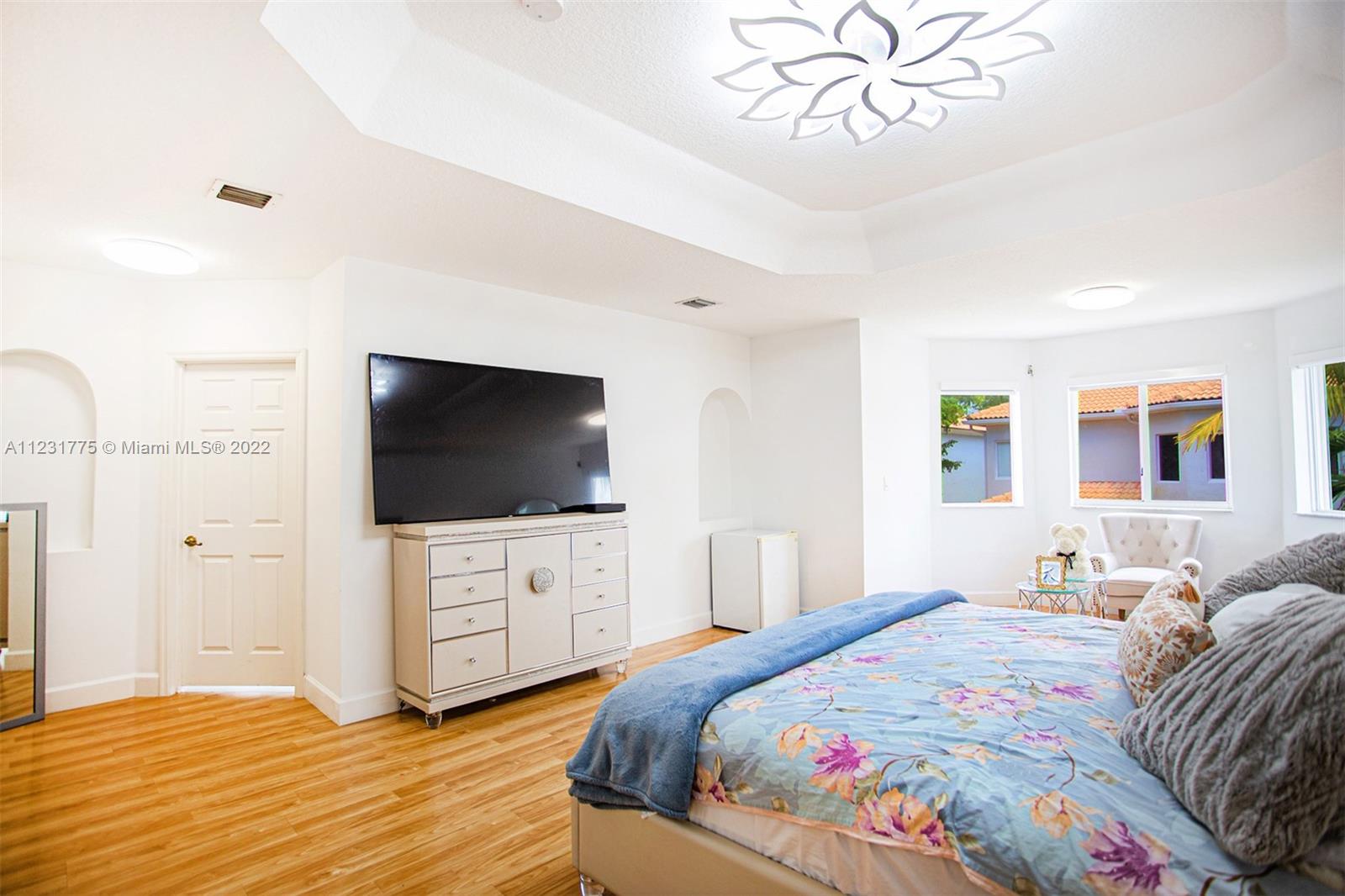 Dream Home in Doral, 5 Bed 3 Bath, Freshly painted completely inside and outside and roof has been freshly pressure cleaned. Kitchen has Refrigerator, Microwave, and Dishwasher. Custom Closets, Three Renovated Bathrooms with new cabinets and faucets, 3 Car Garage, With Space for 3 More Cars in the Driveway, New Alarm System, Brand New Blinds throughtout the entire house, living room has remote control blinds, Black Out Blinds in upper bedroom windows, Patio has an installed fan with light, dining room has a new lamp with fan, new lamps in entire house, Laundry Room has a custom sink with a new faucet and bottom storage. Water filtered throughout house with guarantee.Wonderful Club House with Resort Style Amenities, Gym, Sauna, Pool, Volleyball, Tennis and Basketball Courts,Soccer Field etc