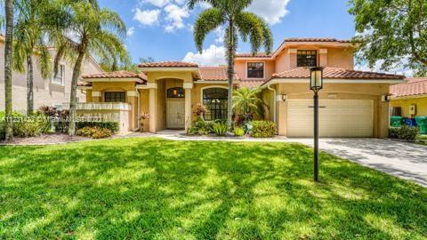 Two car garage, two story 6 bedroom 2 and half bathroom home in Embassy Lakes. Master suite downstairs with dual sinks, separate tub and shower, built in closet, and an additional bedroom downstairs that can be used as an office or bedroom. 4 bedrooms upstairs, large backyard with lots of shade (swing set stays), water filter, NO CARPET all tile. Excellent A rated school district, zoned for Embassy Creek Elementary. The development features 3 man-gated security gates, large resort style pool, gym, clubhouse, tennis courts, pickleball courts, basketball courts, 3 children's playgrounds. NO HOA approval required