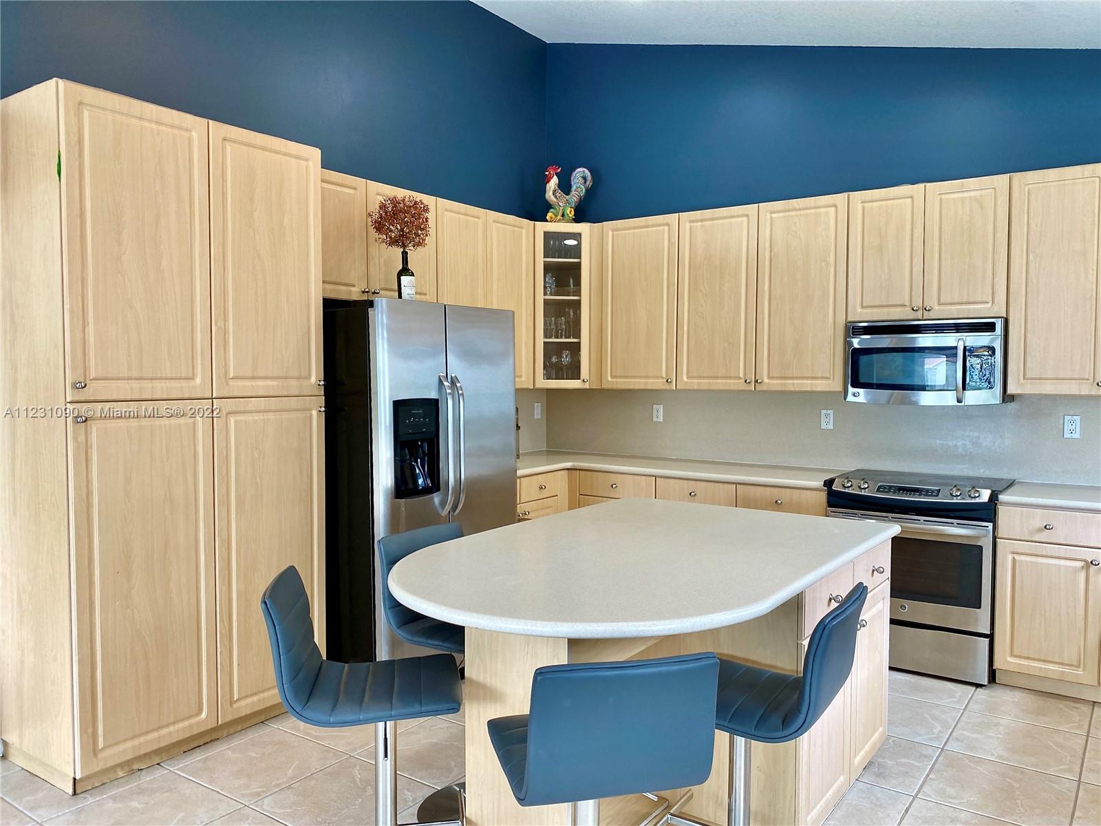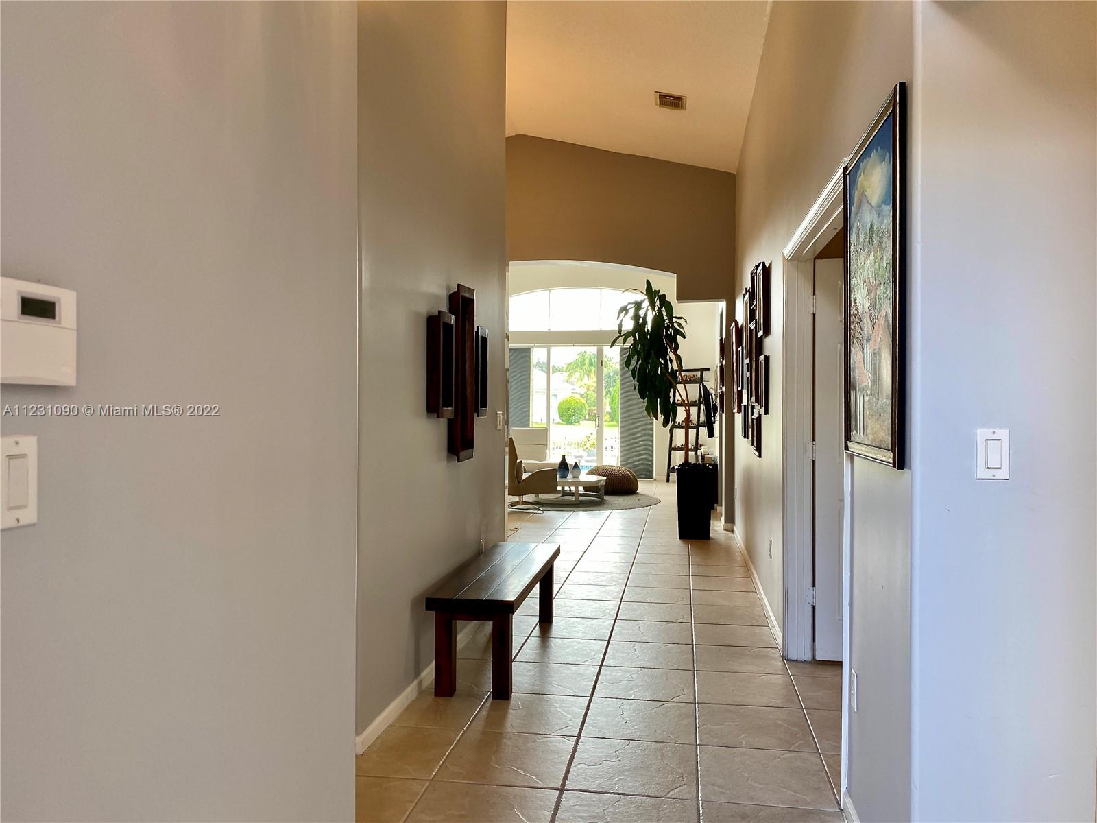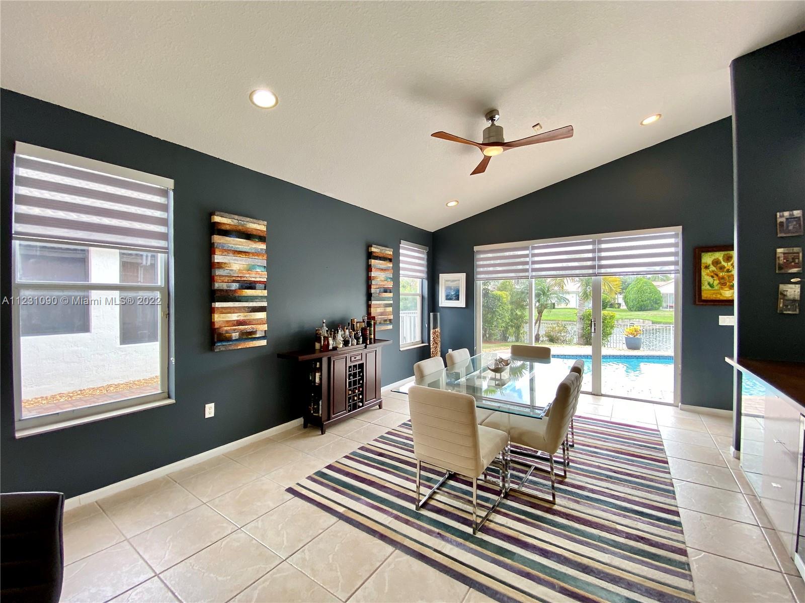 Fabulous ONE STORY 4-Bedroom 3-Bathroom LAKEFRONT home. Peaceful lakeview to enjoy and relax in a recently renovated pool. Plenty of natural light throughout the home, located in the resort style and prestige gated community of Sunset Lakes. Stunning Clubhouse with recently renovated and expanded gym and plenty of amenities. Close to great schools. Tile flooring, cathedral ceiling, spacious master bedroom. Open concept eat-in kitchen with island, lots of space, and great for entertaining. Built-in wine cooler and cabinet area in dining room that opens to living room for modern looking OPEN FLOOR PLAN. Energy efficient central air system replaced in the last 5 years. Some furniture available for sale. Call listing agent for appointment!