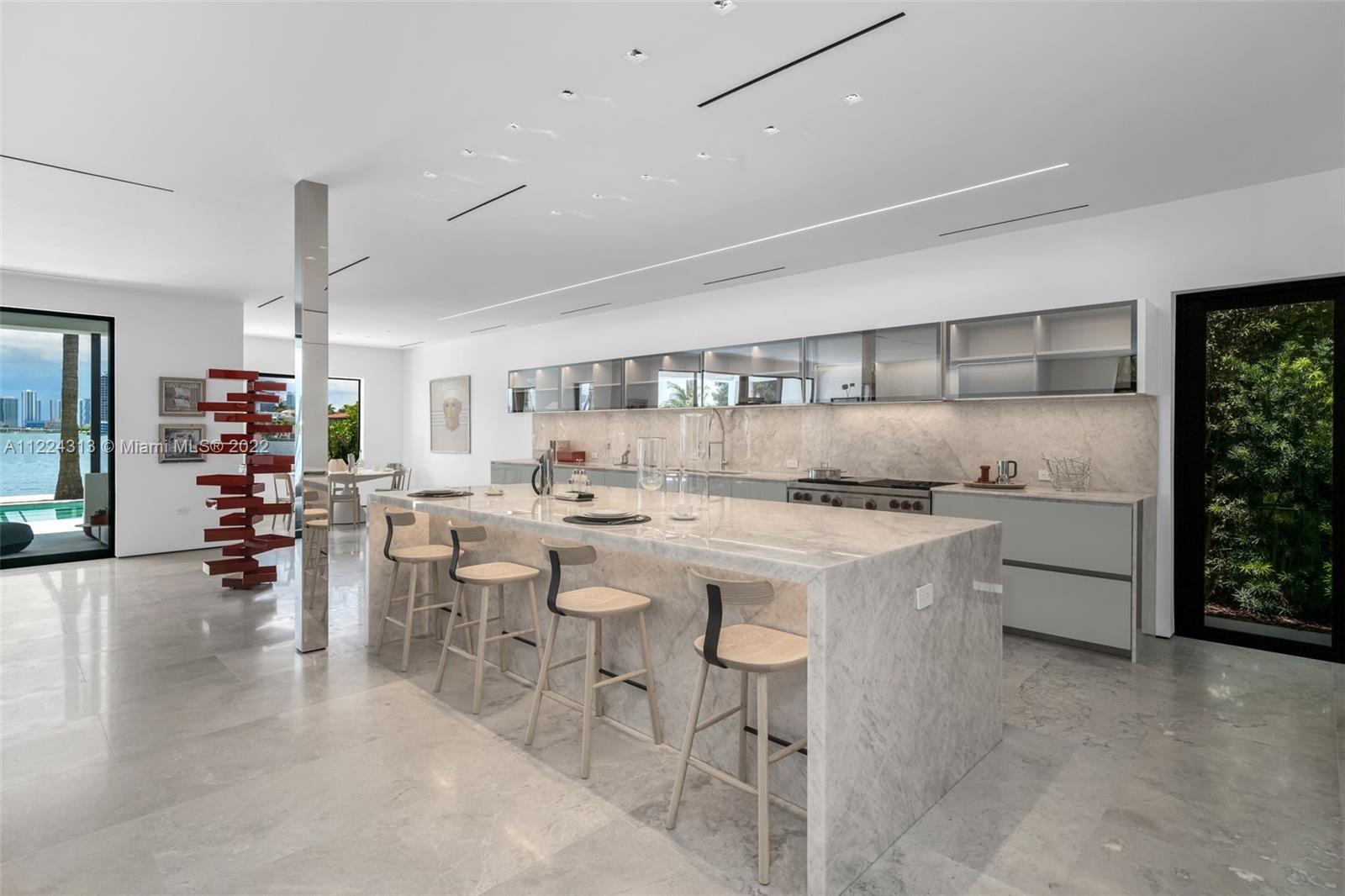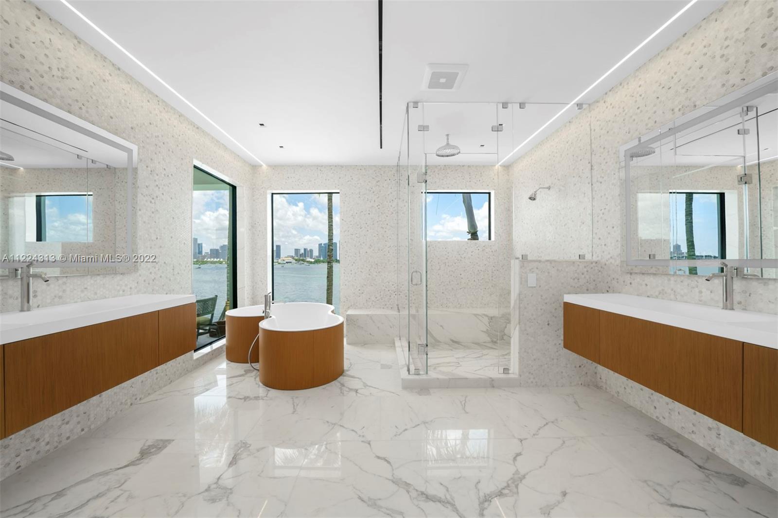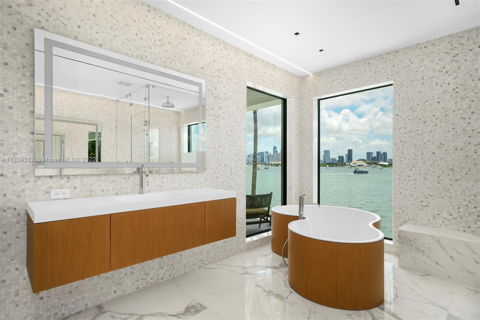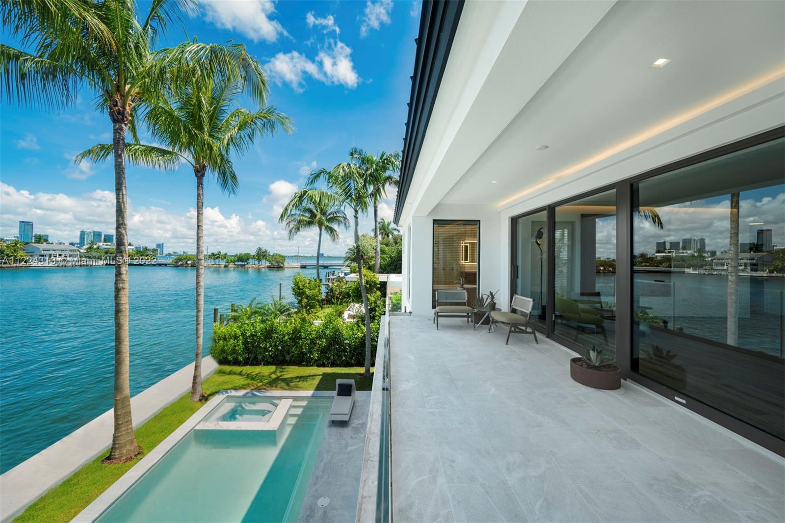The best skyline view Miami has to offer. Live on the wide-open water and enjoy views of the downtown Miami skyline & the most dramatic sunsets from this contemporary waterfront residence. Enter through a beautiful courtyard to an open layout with breathtaking views from every room. No detail was spared in luxurious finishes throughout this spacious 2 story, 7 bedroom, 7 full bathroom and 1 half bathroom estate. The outdoors are an entertainer’s oasis complete with a private dock, summer kitchen and lounge/dining areas to bask in the views and Miami sun. Complete with a 2 car garage, guest house with its own entrance, a gourmet kitchen overlooking the water, principal suite with a massive walk-in closet, spa-like master bathroom & an expansive balcony offering panoramic views.