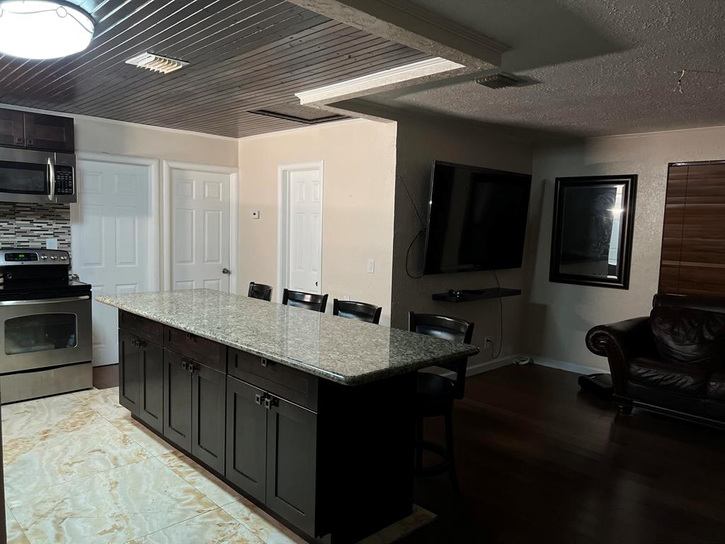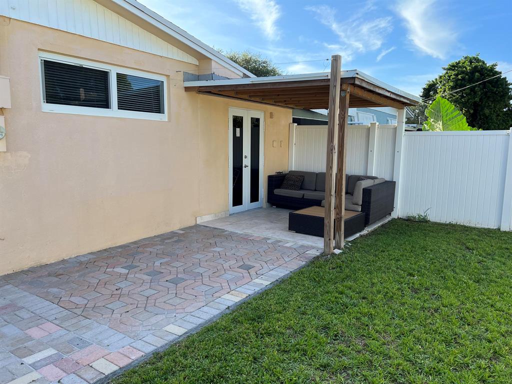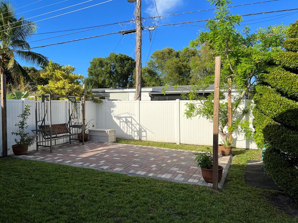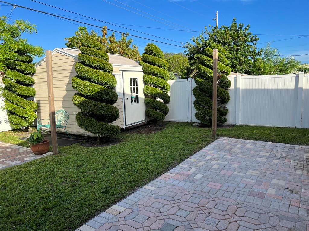 Location, Location, Location!! Do not miss out on this 1/2 duplex! 3BR/1BA/1 car garage with a 10x10 inside laundry room. It has been completely remodeled inside and out. New roof and impact windows & doors in 2020. Stainless steel appliances, wood kitchen cabinets and granite countertops. Bamboo and tile floors. This property has a large back yard with a 10x10 shed and tiled covered 10x10 patio fully fenced yard. Nicely Landscaped. THIS IS A MUST SEE. A+ rated school district. Close to parks, recreation, shops and great restaurants drive, walk or take your golf cart.