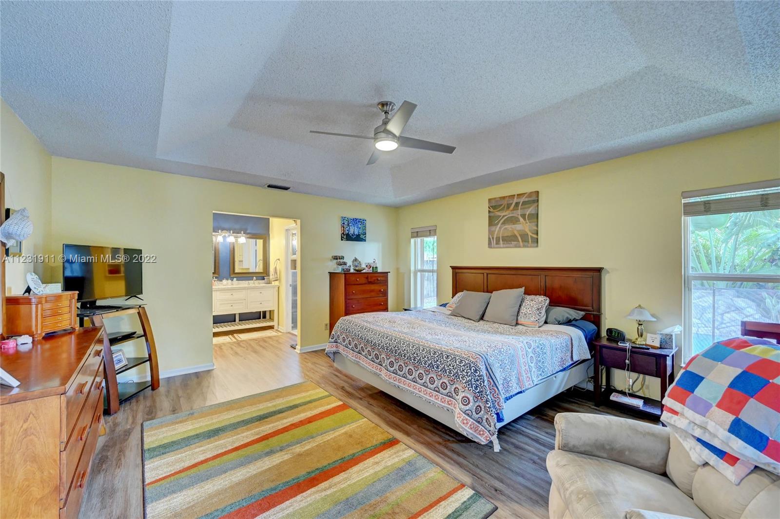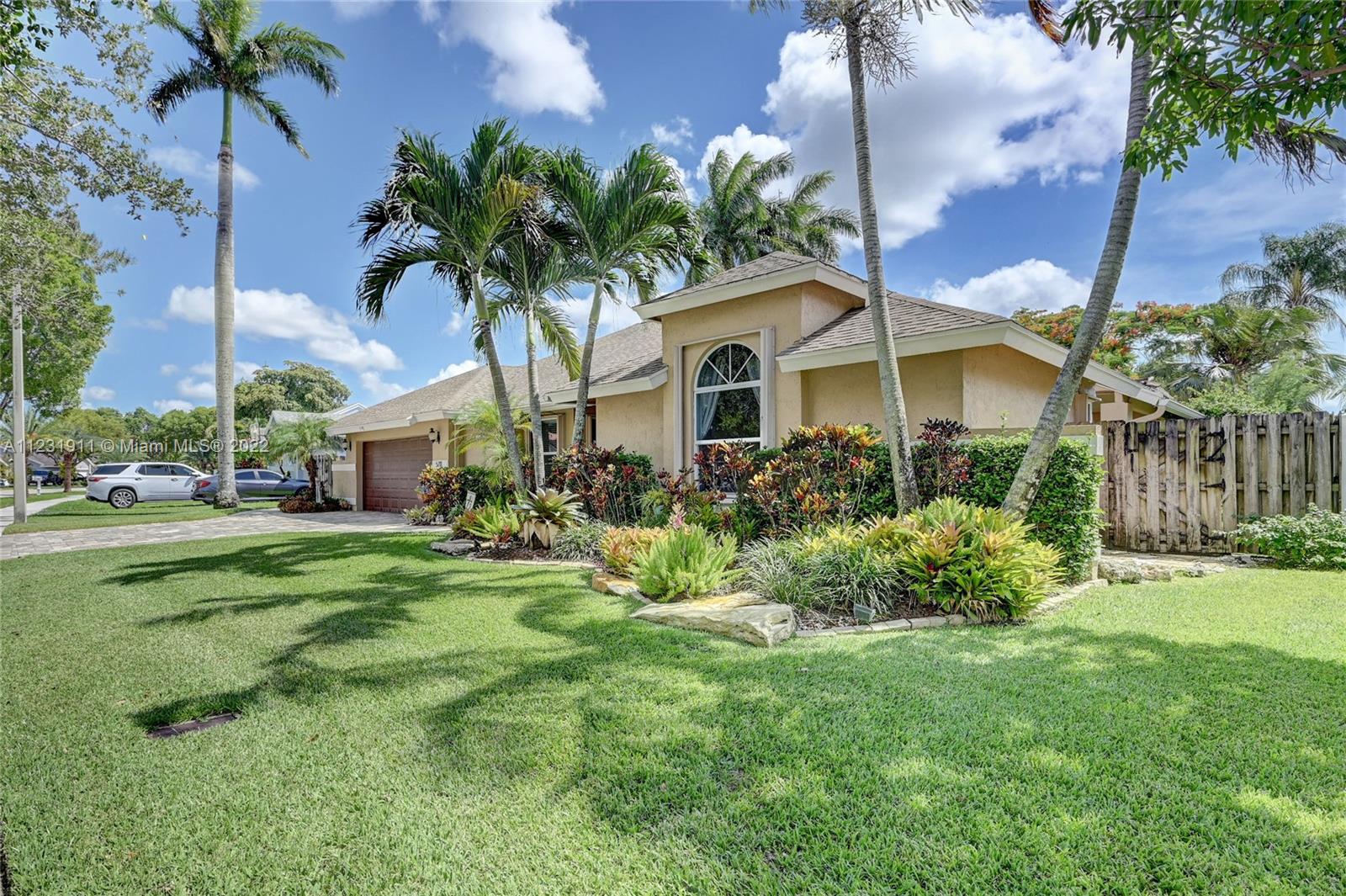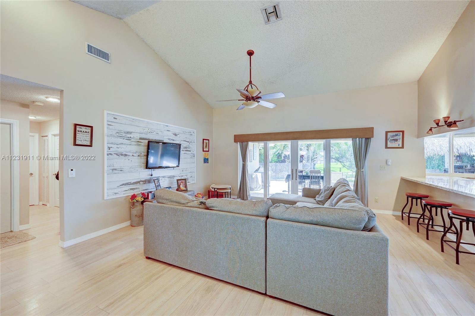 Oasis Paradise home in Cooper City! Come see this fully renovated modern/coastal ONE OF A KIND 3 bed/2 bath home is located in highly desirable Country Address with A-Rated Public Schools & walking distance to the JCC. Entertainers dream featuring private dock on spring-fed lake, lagoon-style heated pool with rock waterfall & jets, breathtaking sunsets, 3-hole putting green, tiki bar with sink & full electric hook-up and astroturf on side of house. 2015 A/C & water heater, large 2-Car Garage with electric car hook-up, stainless steel kitchen appliances, renovated bathrooms. Double Hurricane Protection - impact windows & doors and accordion shutters. Beautiful paved driveway with immaculately maintained lawn! * Home currently rented to an amazing tenant - lease ends May 31st, 2023.