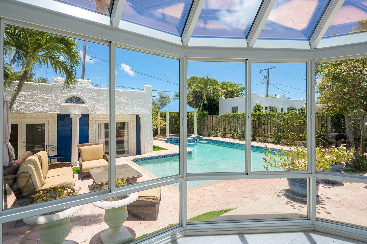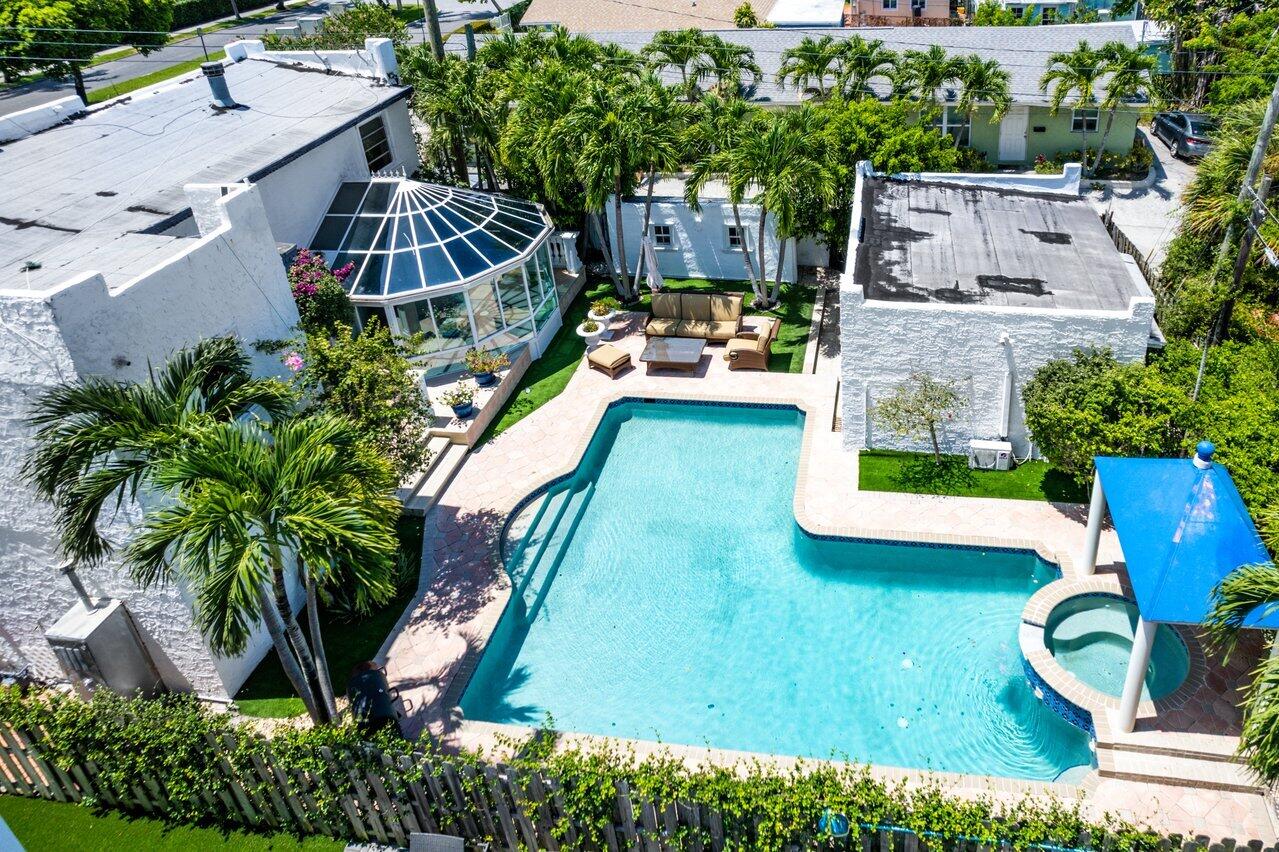 DON'T HESITATE AT THIS PRICE, AMAZING DEAL! Award-winning 1923 historic Mediterranean home located in the highly sought after Grandview Heights historic district of Downtown West Palm Beach. This home is priced to either completely remodel this home or a buyer can move in with a huge amount of equity, priced for quick sale. This home has great bones and combines historic charm with modern touches such as an oversized L-shaped pool with a waterfall hot tub, grand solarium overlooking the backyard and second house.The main house features two bedrooms and two full bathrooms and the second home features two bedrooms with one full bathroom. As you enter into the main home you will find marble flooring throughout, wood beams accent the dining room and family room, custom crown molding.