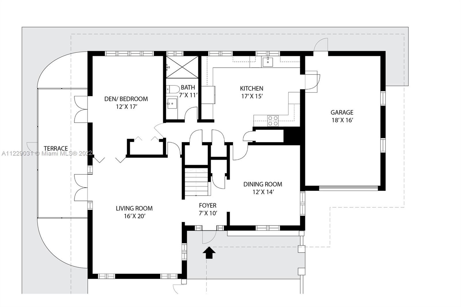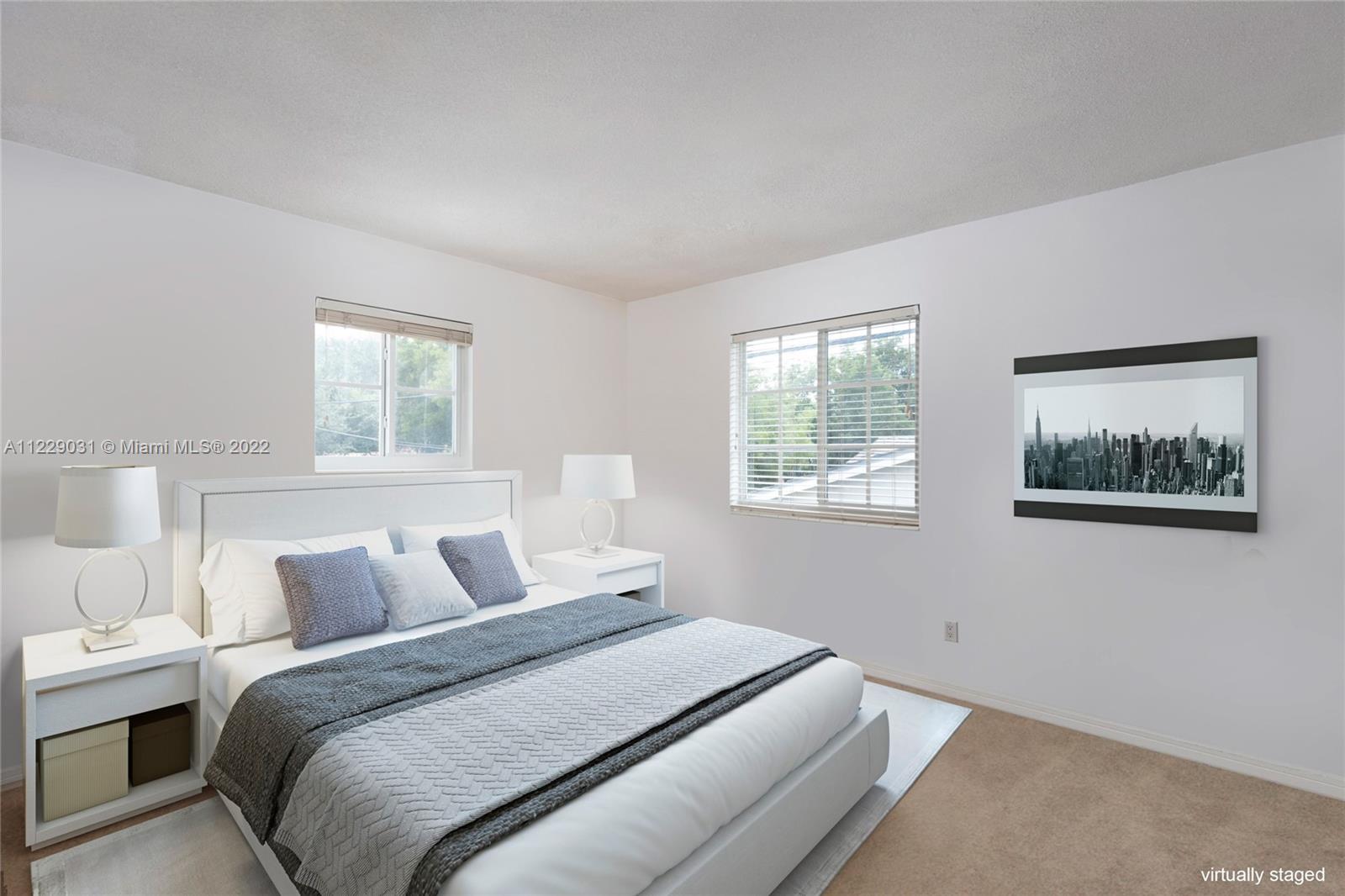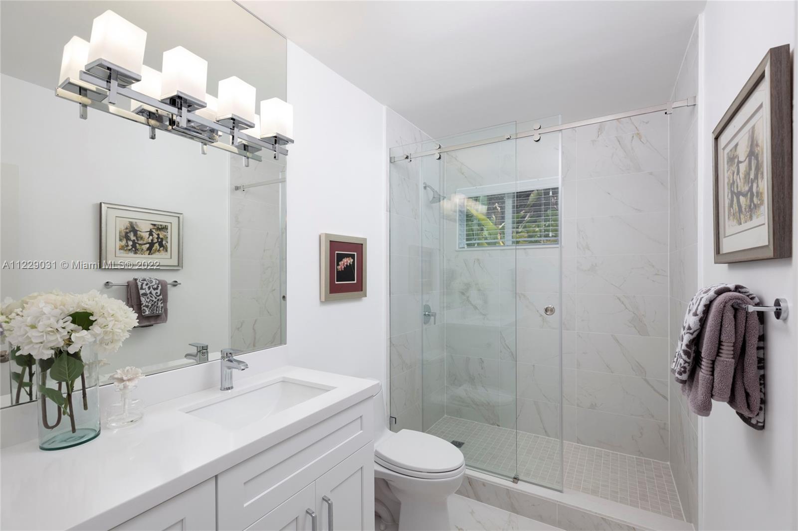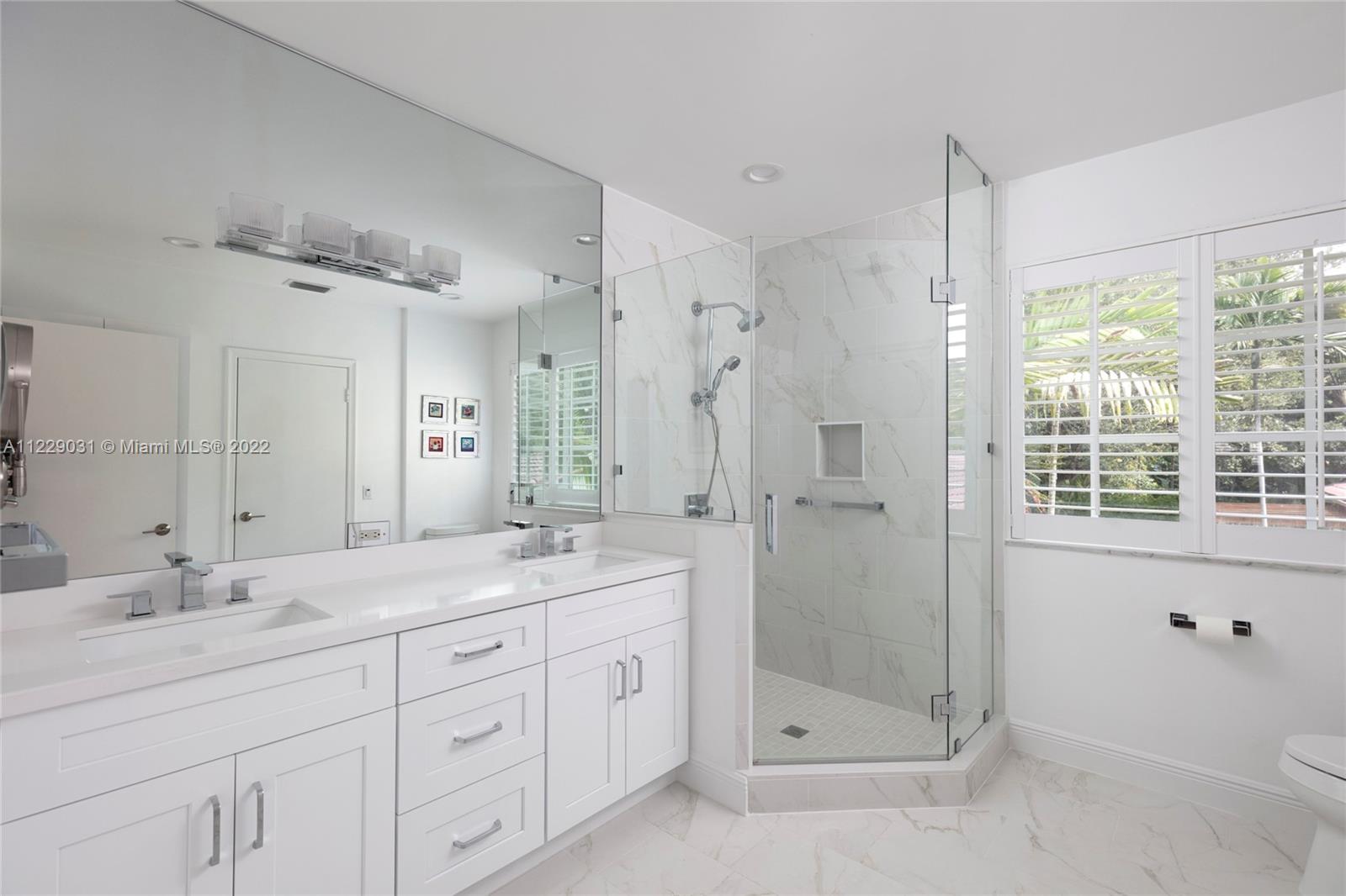 A special opportunity to live in the desirable South Gables on a tree-lined street within the Sunset Elementary school zone. Step through a charming, walled courtyard into this warm and completely renovated home. Downstairs offers a foyer entry, well-appointed kitchen, formal dining room, bedroom or den with adjacent full bath, and living room with French doors to the covered terrace and private garden. Upstairs are three generously sized bedrooms with the primary suite featuring two walk-in closets and renovated bathroom. Wood-look porcelain floors, plantation shutters, fresh white paint, and neutral finishes make this home the perfect canvas for your design. New roof, electrical, plumbing and septic tank. All impact windows and doors. **Some photos virtually staged.