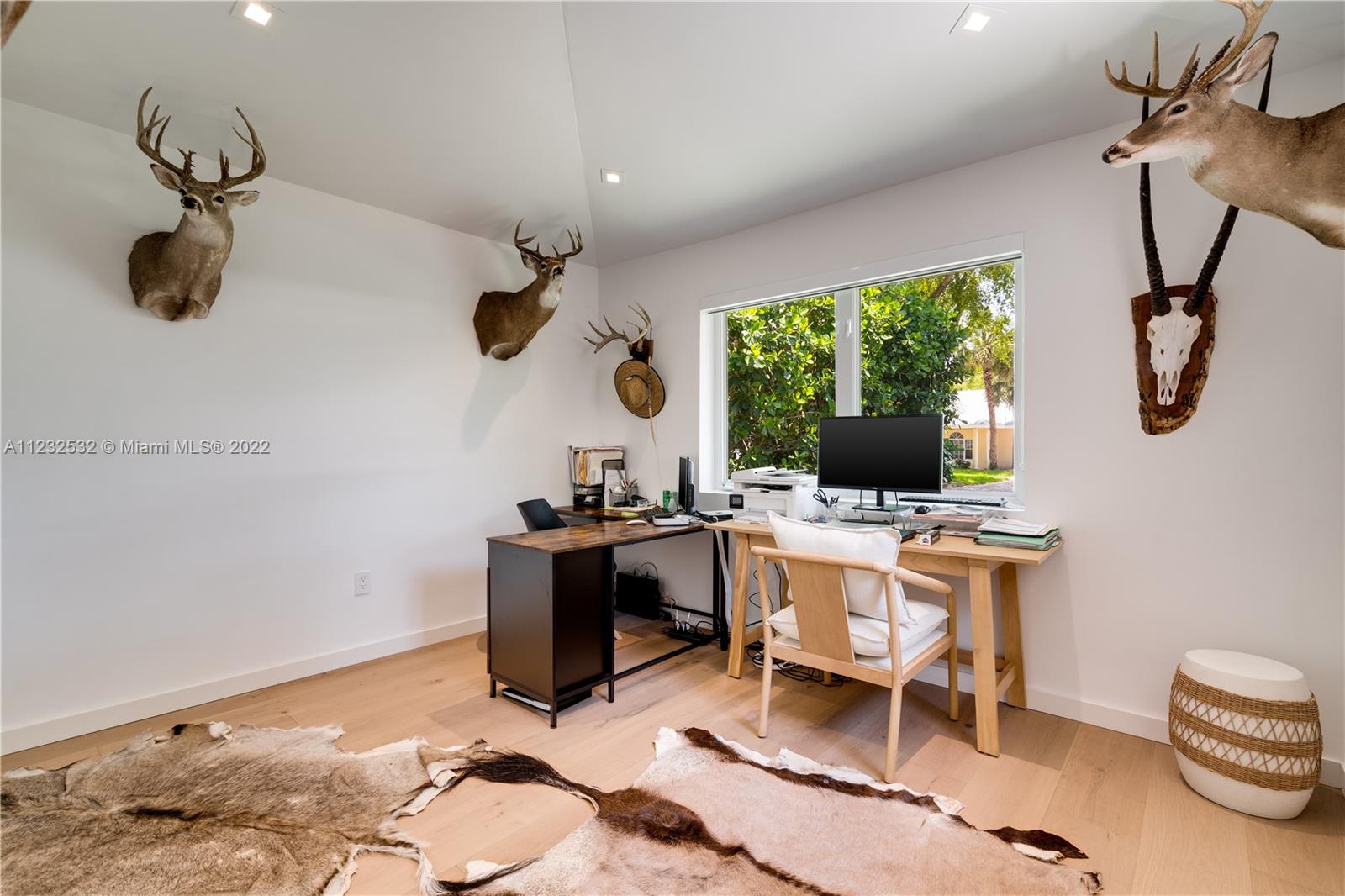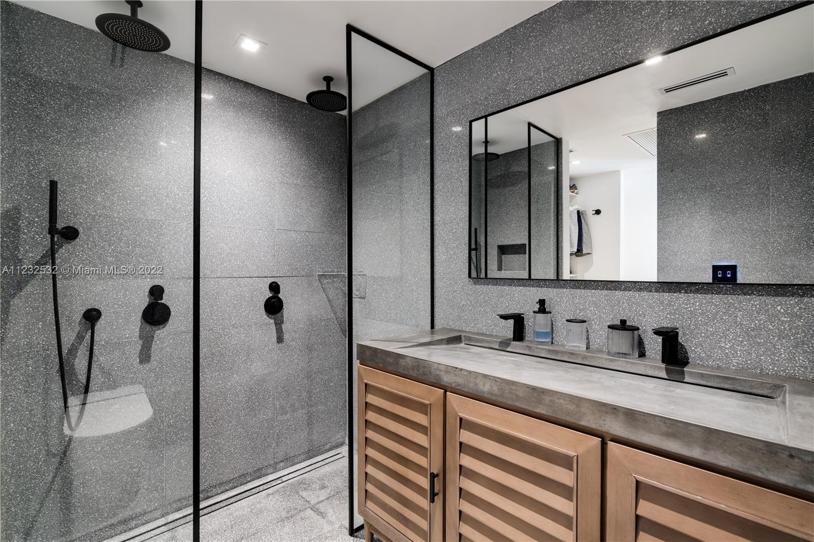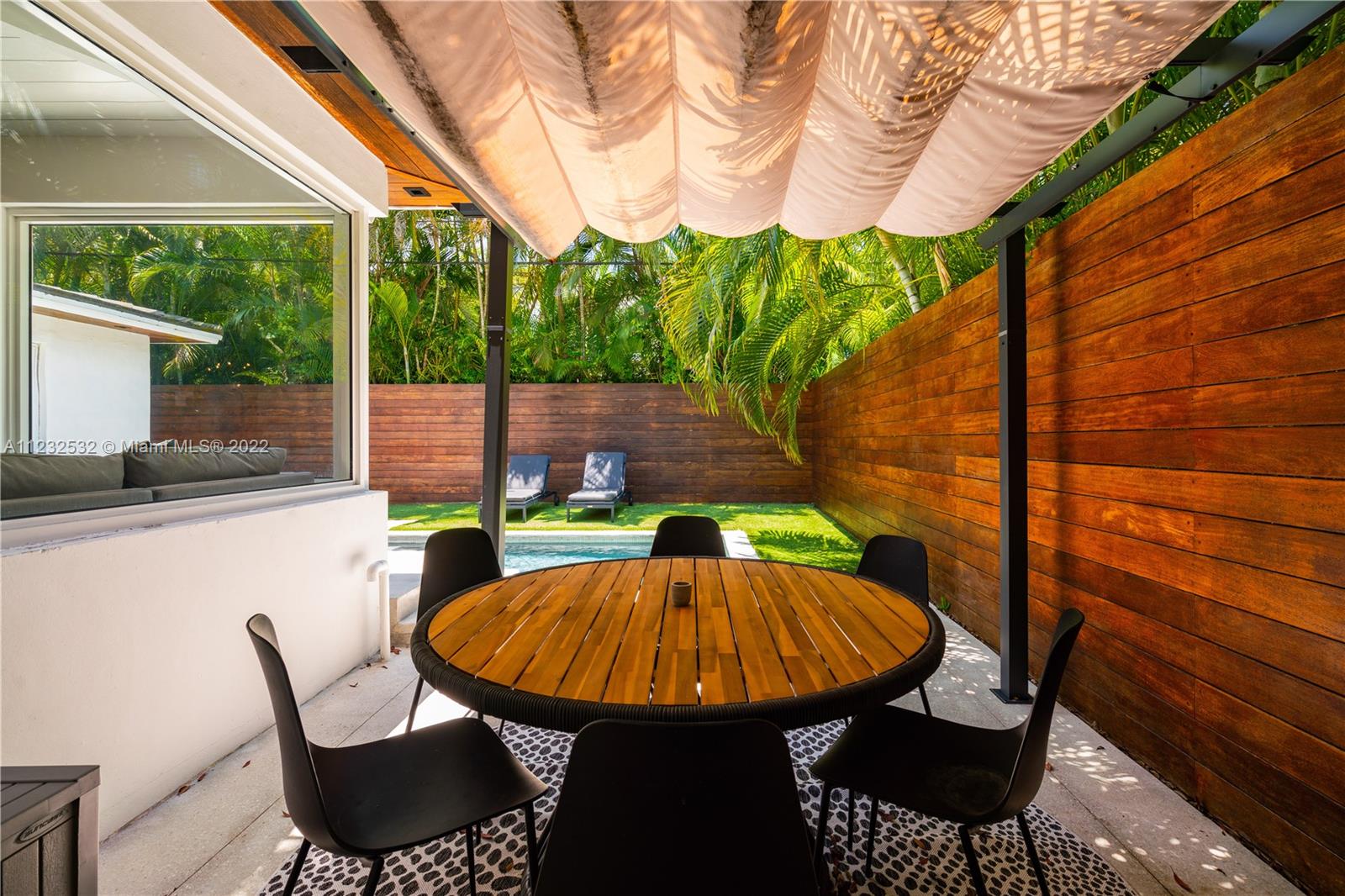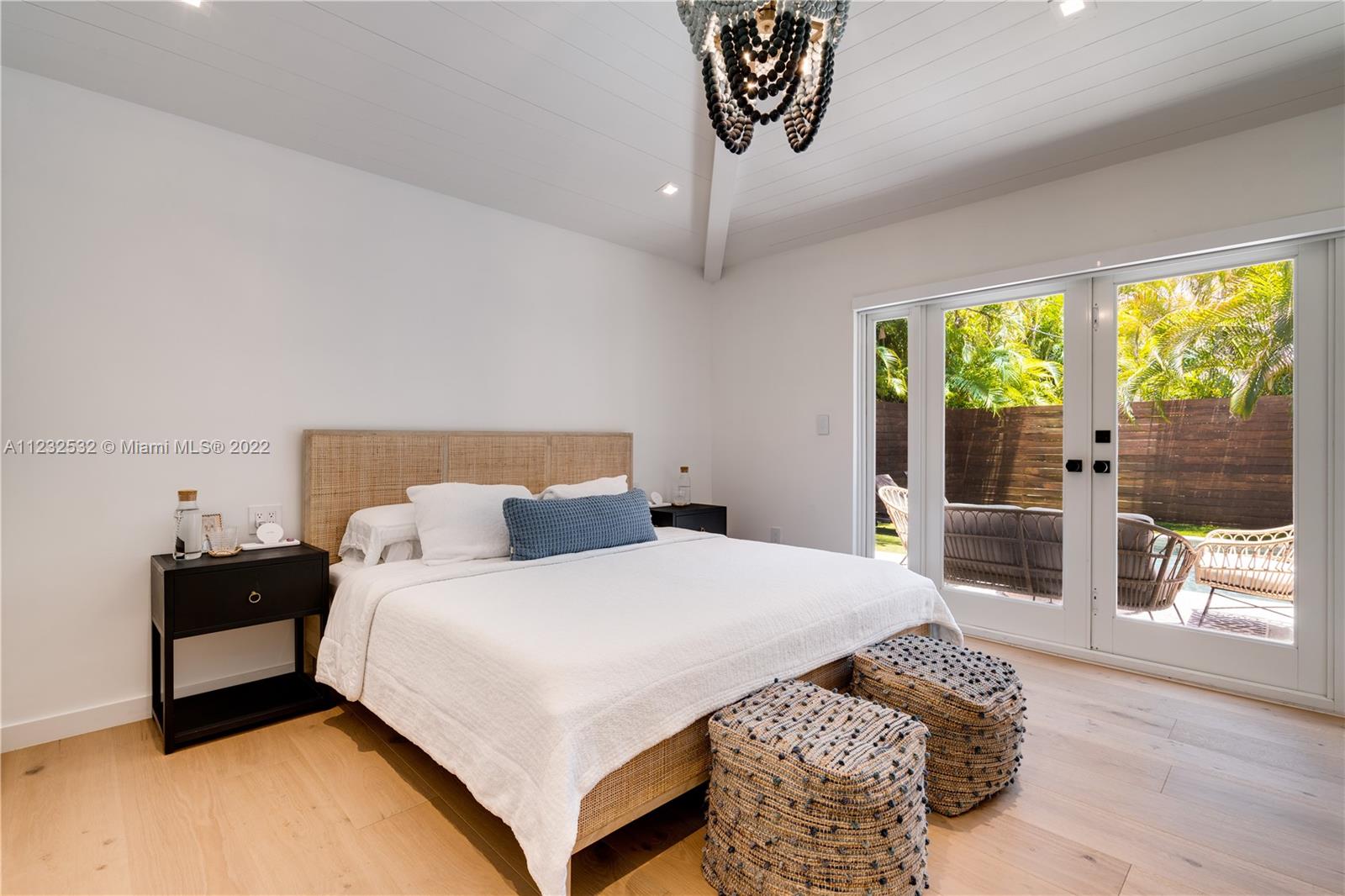 Hidden Treasure in Coral Gables! Completely renovated in 2021, this 3 bedroom, 2 bathroom home rests on quiet Michelangelo Street. Welcomed by lush landscaping, and brick driveway leading into 1-car garage. Spacious formal dining area, eat-in kitchen with custom quartzite countertops, and glass-enclosed wine bottle storage highlights the main living areas. Vaulted tongue and groove ceilings, hardwood flooring throughout the bedrooms, and sleek-modern designed master bath with dual sinks. Cumaru hardwood fence encompasses the backyard with outdoor shower, pool, polished concrete deck and artificial turf.