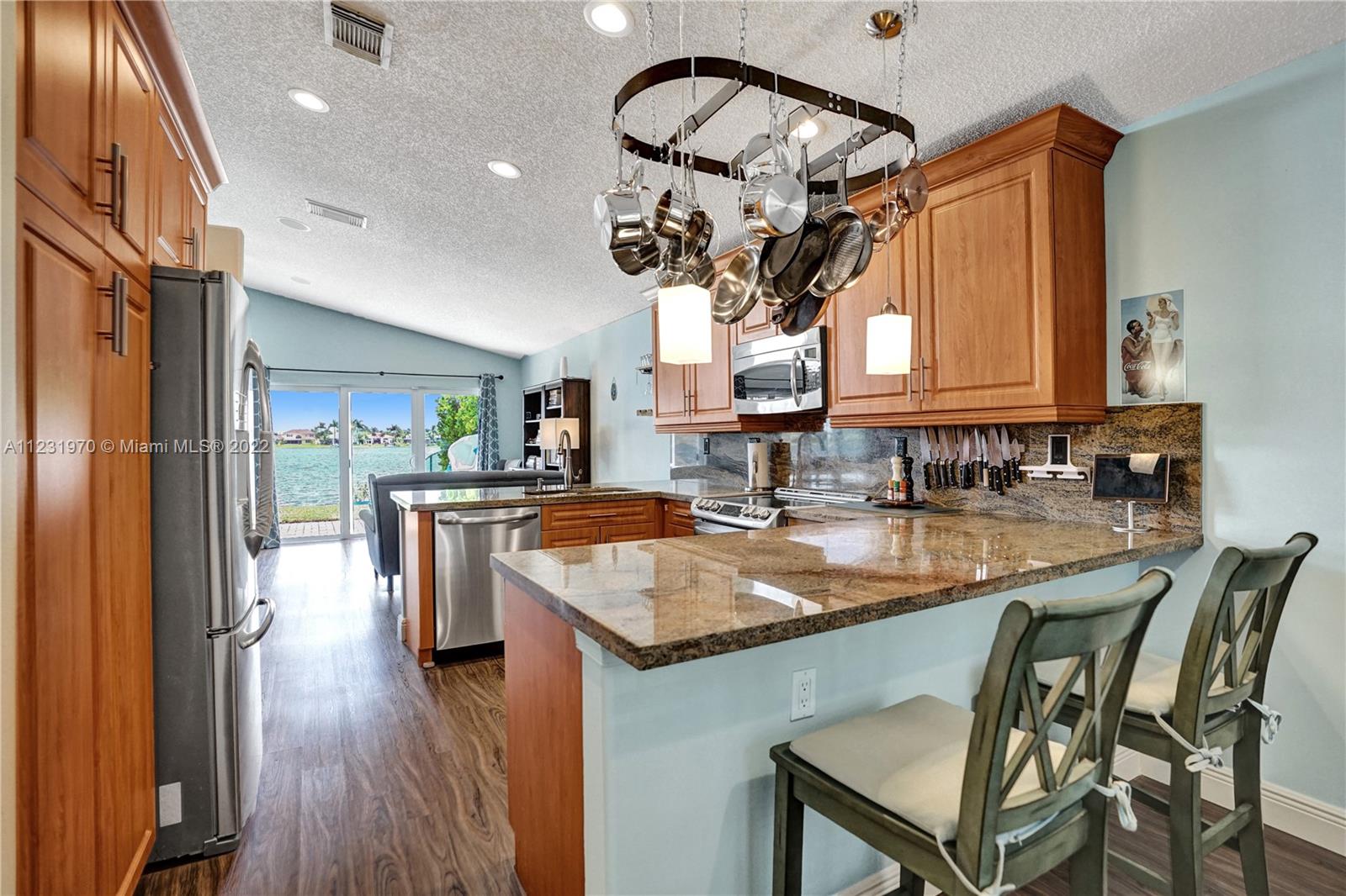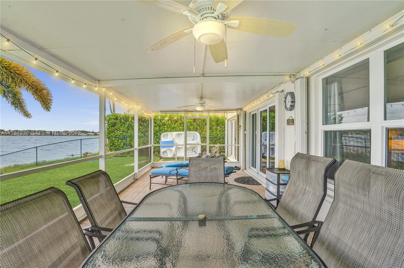 Enjoy outdoor living & beautiful water views - your own private oasis! This gorgeous 3 bed, 2 bath, 2 car garage gated community home showcases impressive wide water views from all main living areas! A double set of impact glass doors lead out to an extended screened patio perfect for BBQ & a paddleboat ready for a cruise around the lake! Inside enjoy an open concept layout w/laminate flooring throughout spacious living areas, surround sound speakers, tastefully remodeled baths, fresh paint inside & out and high vaulted ceilings for a light & bright feel! Kitchen features include stainless steel appliances, pendant lighting & induction range. Impact Windows & Doors for convenience. Great location in the sought after gated community of Keystone Lake! Cable & internet provided through HOA!