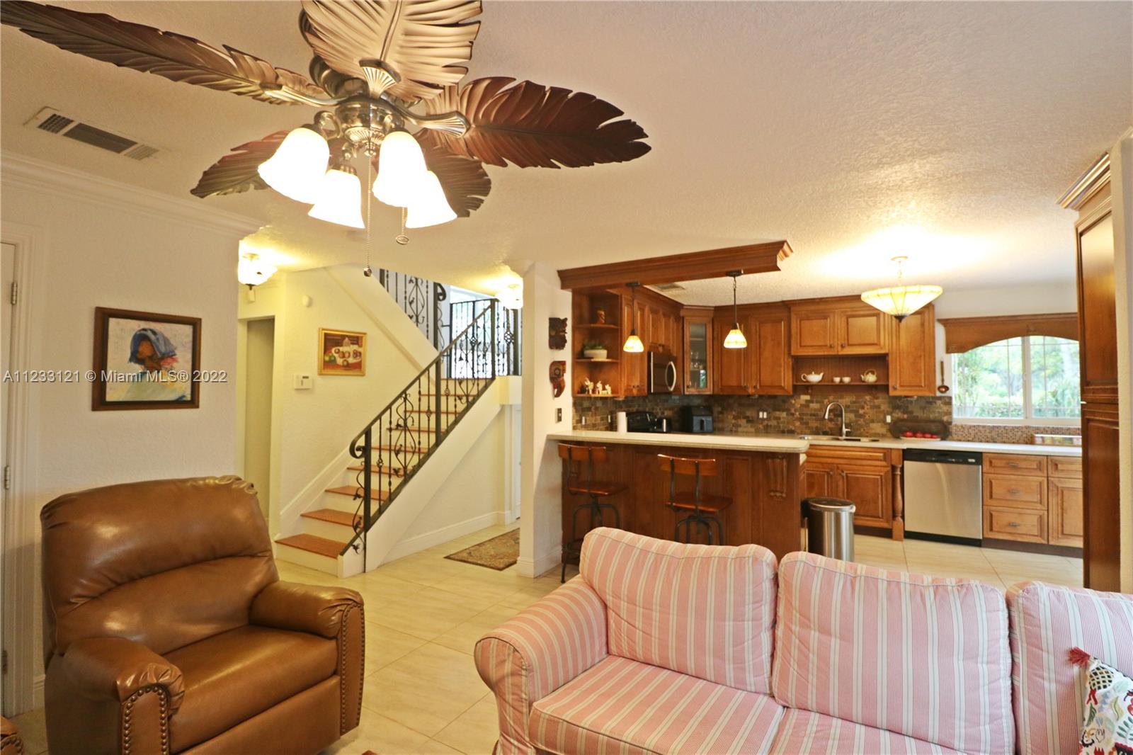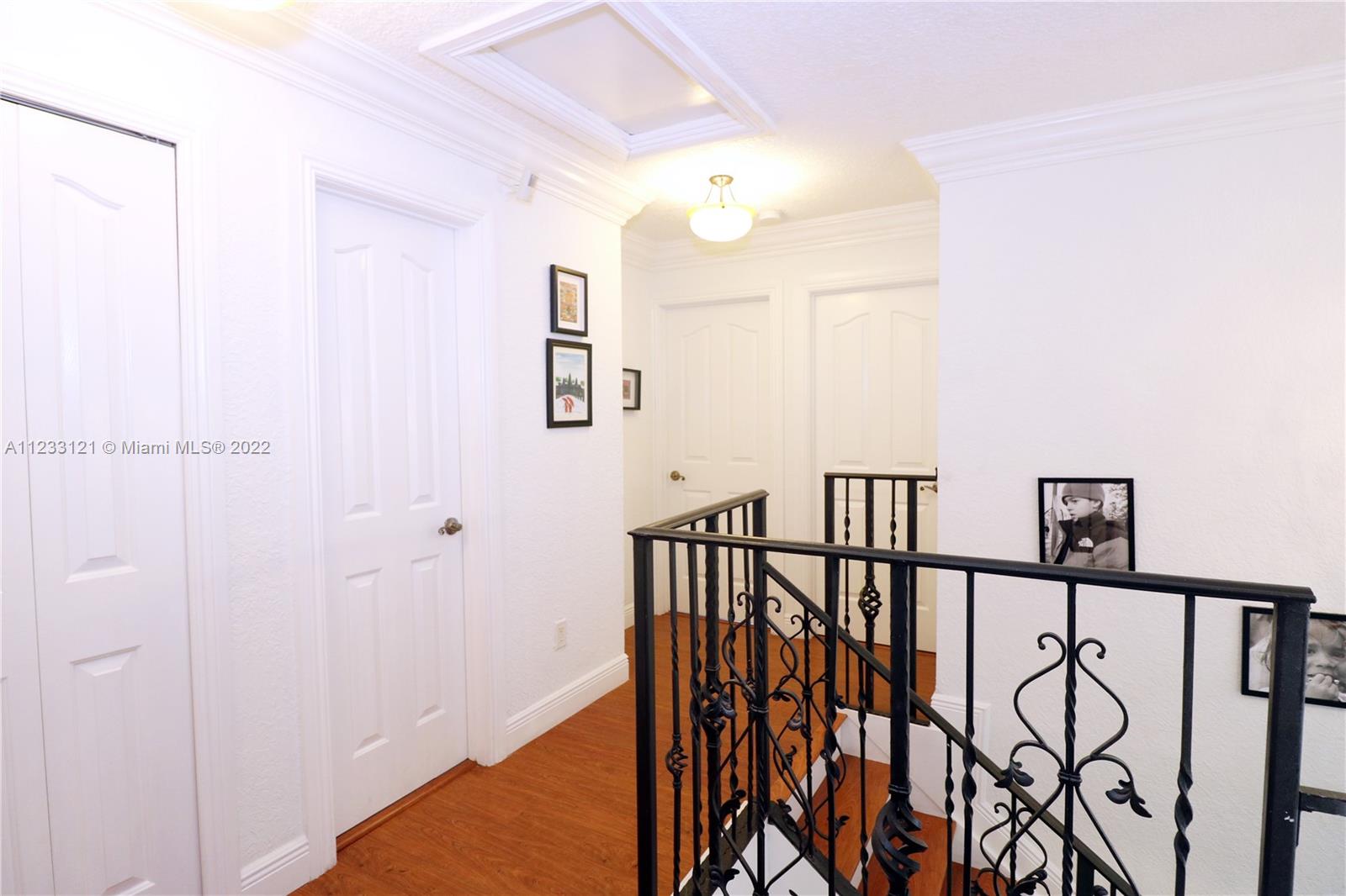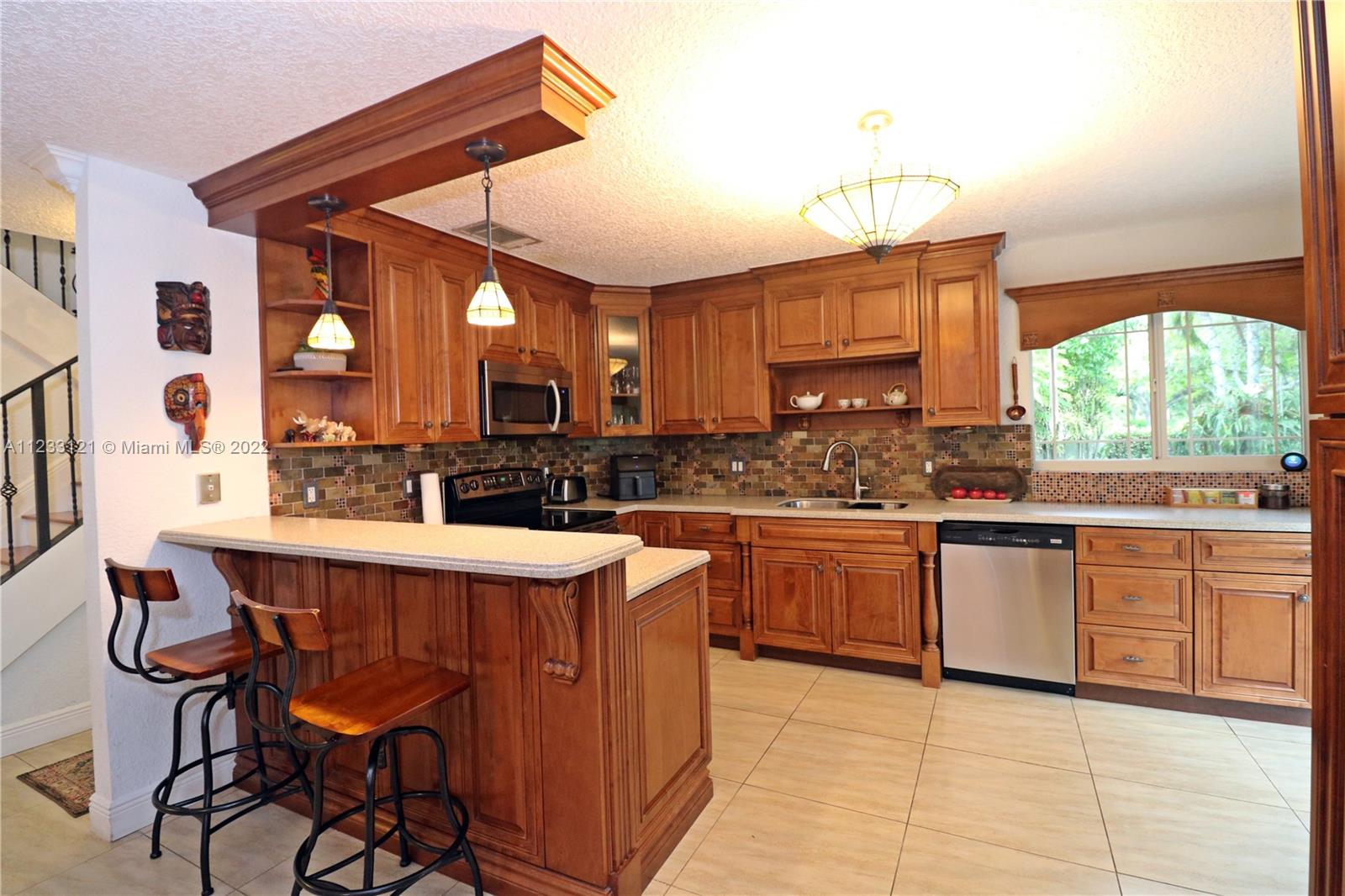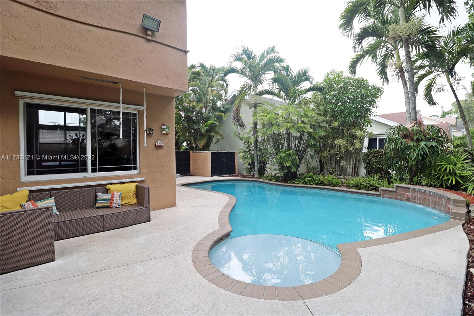 Beautiful two-story single-family home with free-form swimming pool, 4 bedrooms, 2.5 baths fenced patio with tropical landscape, in sought-after Chapel Trail community in west Pembroke Pines, close to schools. No back neighbors, Living room with vaulted ceiling, neutral color and plenty of natural light, upgraded bathrooms, upgraded kitchen with stainless steel appliances wood cabinets & Corian countertops. Tile flooring downstairs and wood upstairs. Garage partially converted into a storage area laundry room with washer/dryer connectors (washer and dryer not included) laundry tub and small office. All bedrooms upstairs. Accordion shutters upstairs and panels downstairs, crown molding, painted inside 2021, replaced roof 2006, air conditioning and pool pump 2019. Must see it to appreciate!