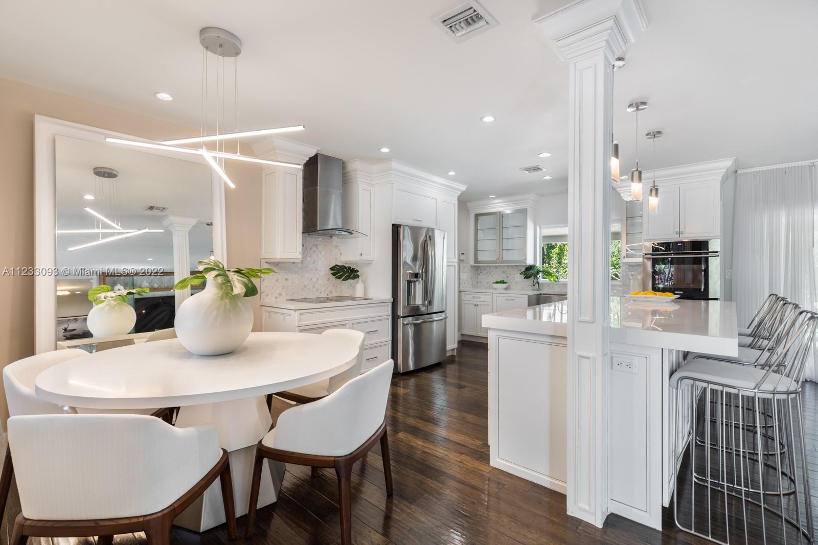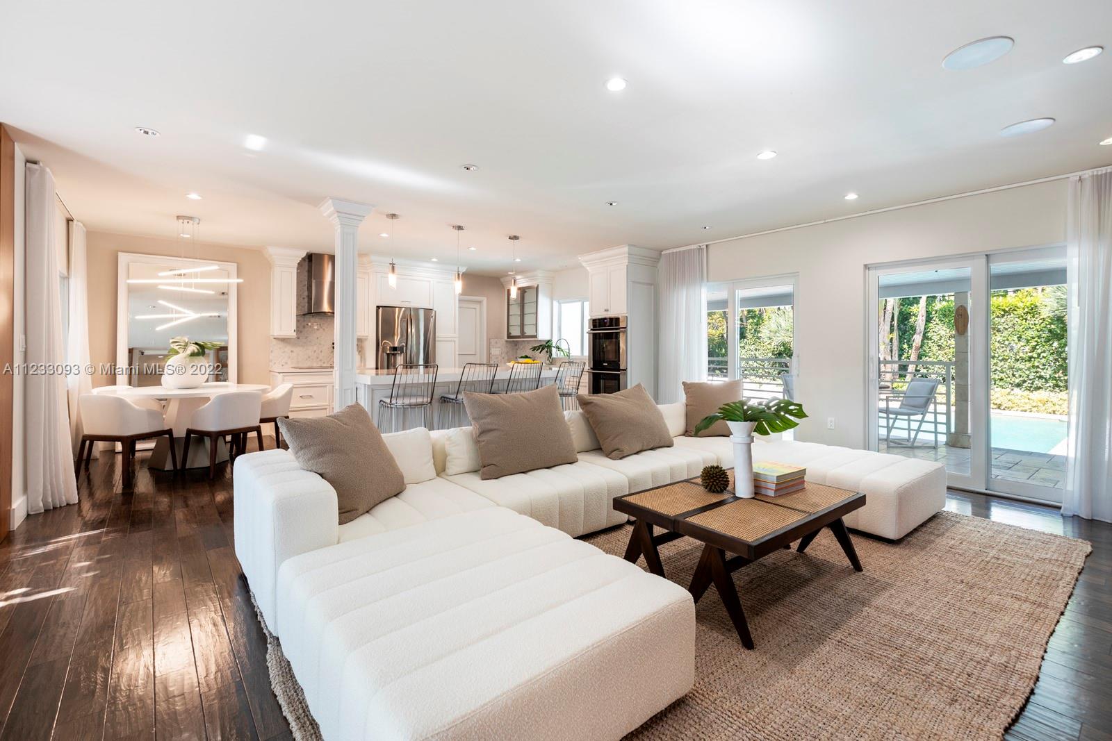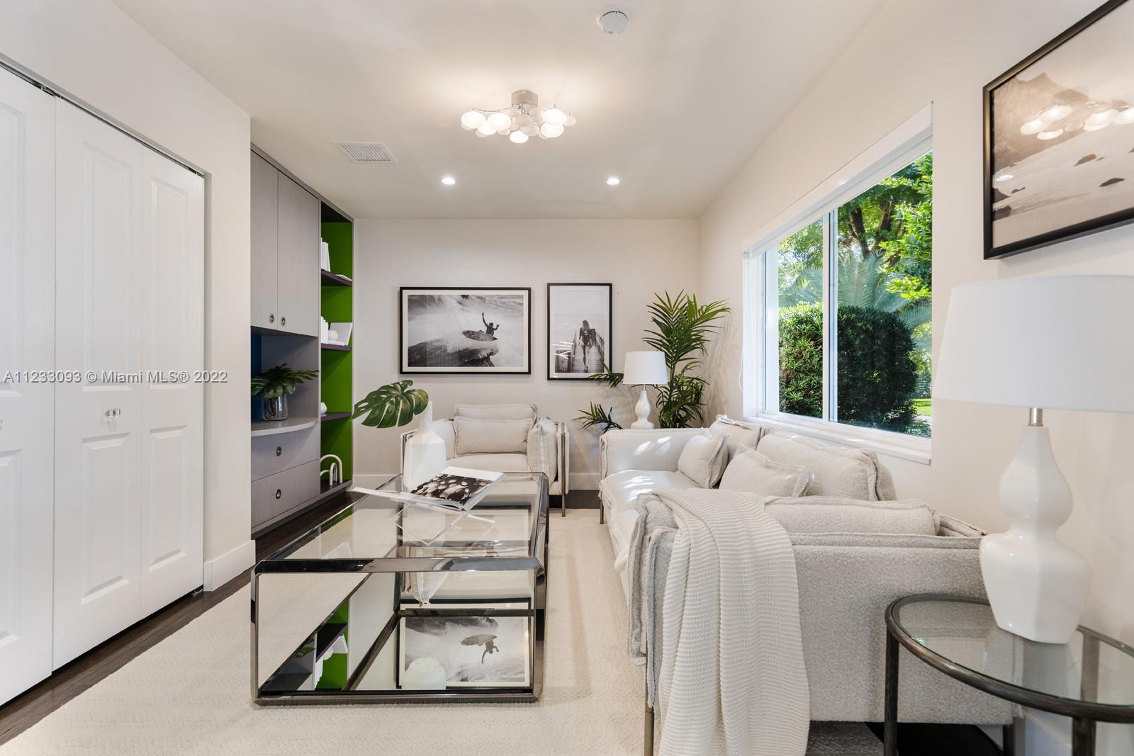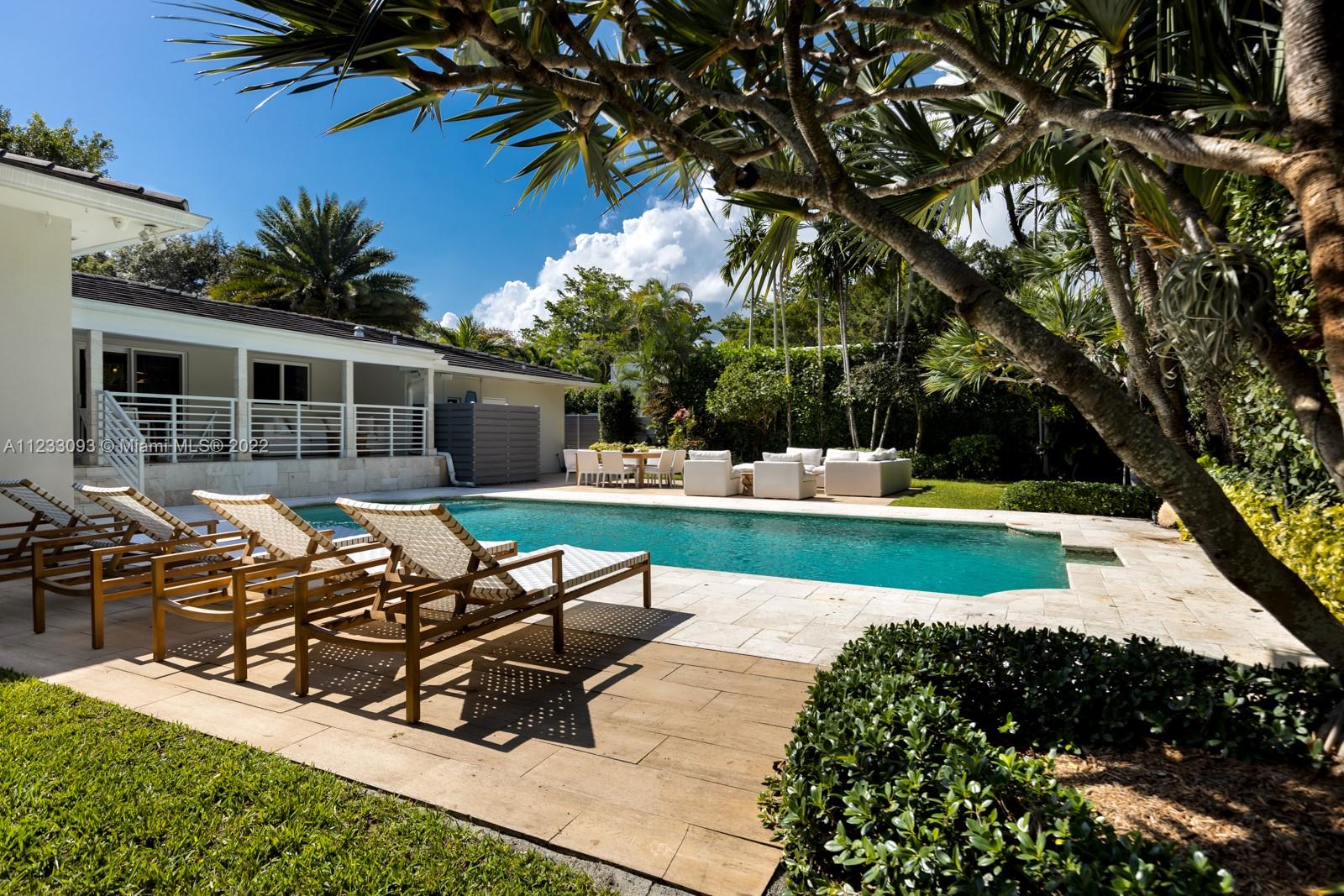 Fully renovated, lushly landscaped home in gated Morningside. 4BR/4BA on oversized 11,000 ft lot w/ pool, covered porch, & 2 car garage. Open kitchen w/ SS appliances, custom cabinets, double ovens, & oversized island. Primary suite includes office, walk in closet, & spa bath w/ freestanding tub, double vanity & makeup area. Updates include roof, impact glass, plumbing, electric, ac, all fixtures, built-ins & much more. Quick walk to Morningside Park, quick drive to Design Dist & Wynwood.