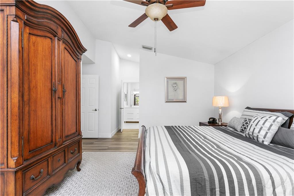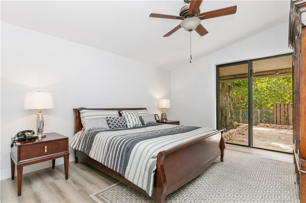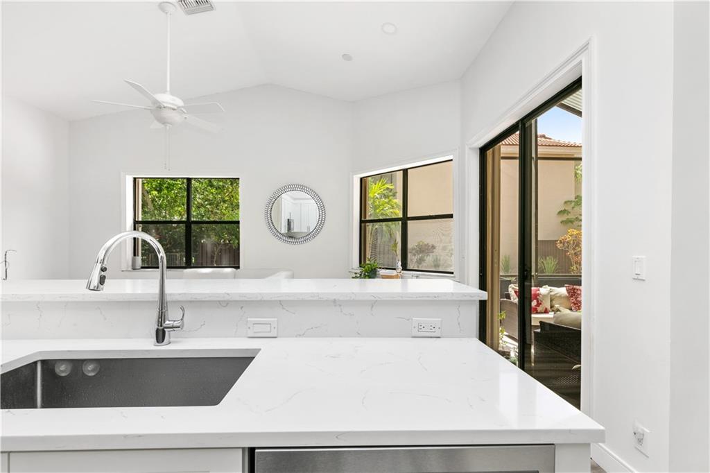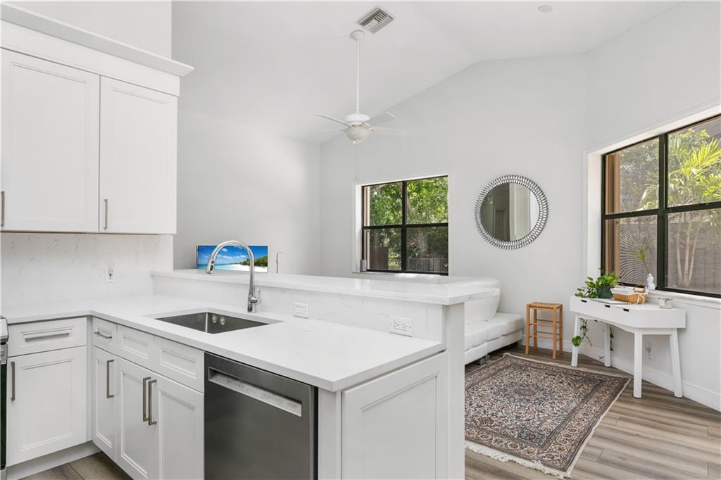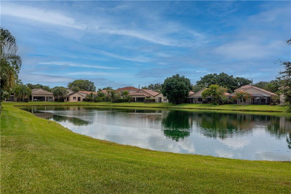 Highly desirable Fountain Springs newly updated 3/2 lakeview: luxury vinyl plank floors; new open concept kitchen w/white cabinets, SS appliances, quartz counters; new recessed lighting; Nest thermostat; Ring video doorbell; attic storage; vaulted ceilings; freshly painted inside and out; master bath includes white marble like tile, custom double sink vanity, shower w/frameless doors; separate bathtub; all closets have organizers; screened rear patio; fenced backyard with gate to the lake; partial lake view; resort style community pool, well maintained community.